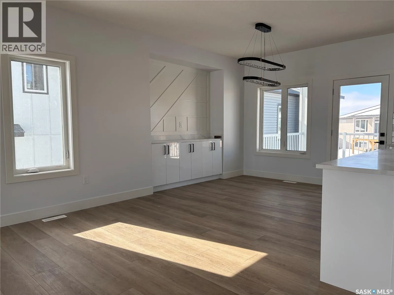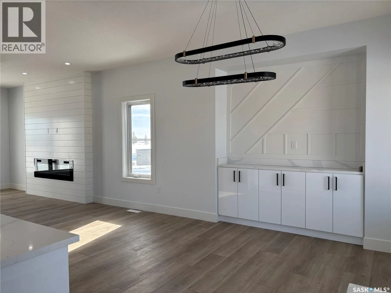 Modified bi-level home. Vinyl fence included! Great opportunity to live in the growing community of Warman close to the Legends Golf Course, Sports Centre, grocery stores and all other amenities. 1,735 sqft on 2 levels above grade. Spacious/open concept with extra high 9â ceilings up and 9' down giving it a light/bright/ modern feel. Main level is perfect for entertaining guests. Kitchen has pantry, tile backsplash, quartz countertops and ample cupboard storage. Massive primary bedroom on a separate level. You'll love the luxurious en-suite bathroom off the bedroom with double sink, soaker tub & beautiful custom tile shower. Lots of high-end finishings throughout with upgraded vinyl flooring, unique fixtures, and tile work. Other notable features include a gorgeous electric fireplace in the living room & a spacious deck (vinyl deck/ no stairs). Also has an insulated triple attached garage and a triple concrete driveway. Lovely street appeal. GST/PST included in the purchase price, rebate back to builder. Established local builder, Blanket New Home Warranty, call today! (id:27476)
