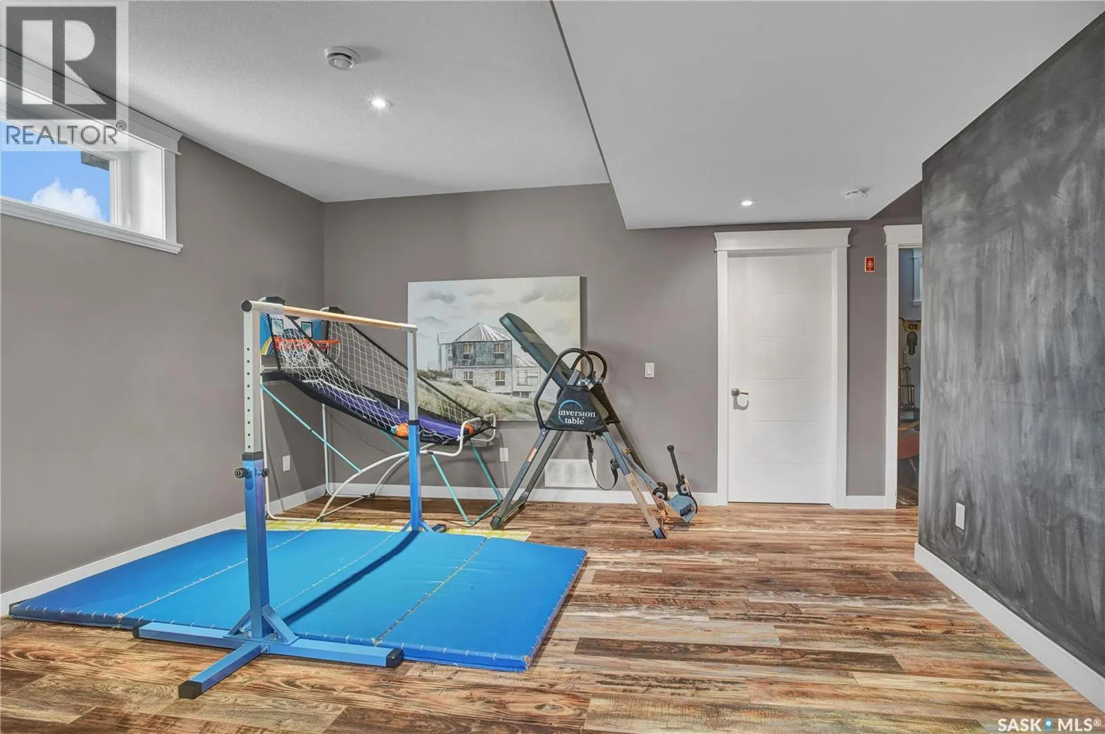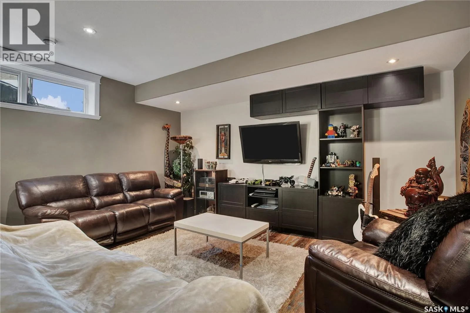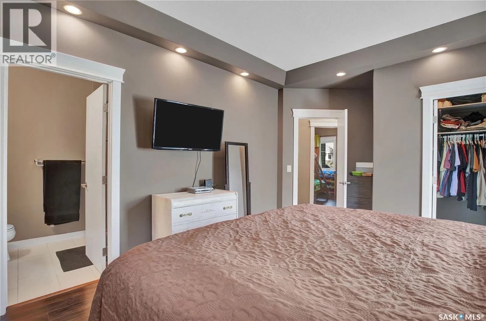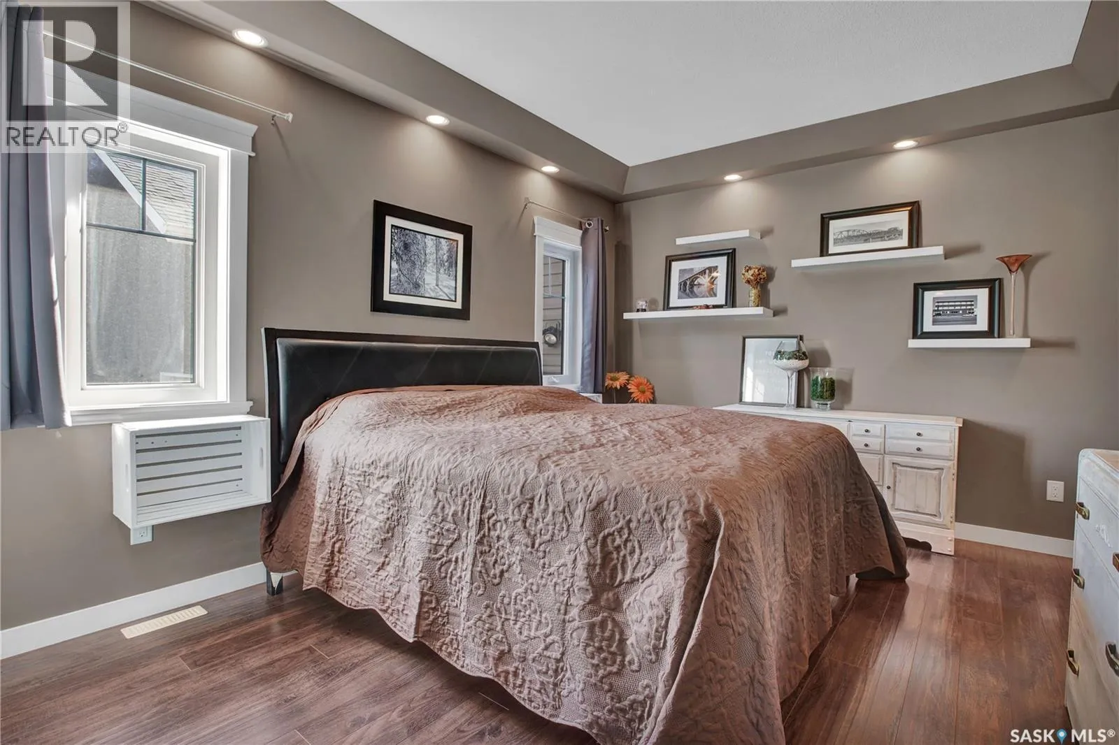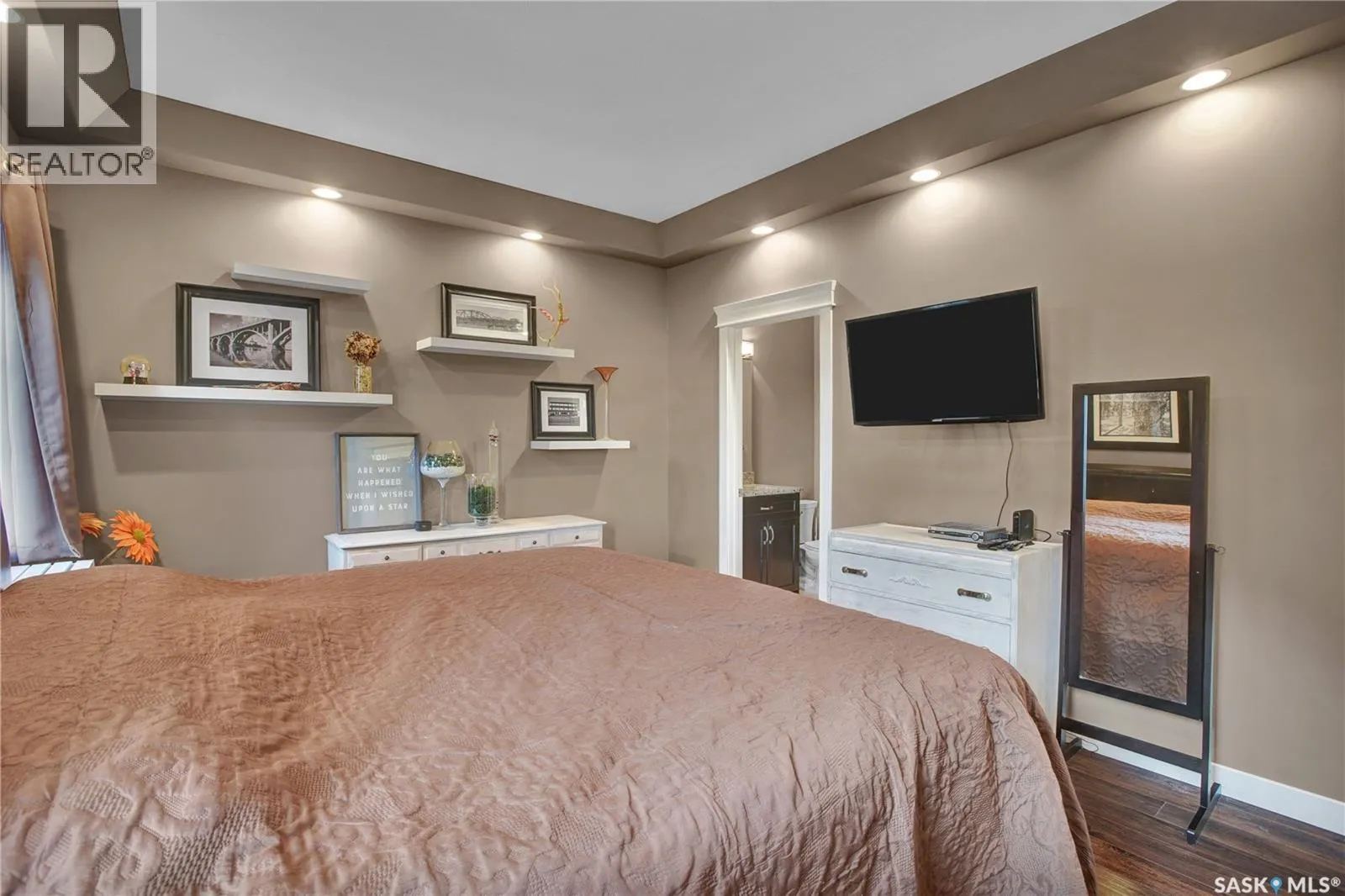 Welcome home to this immaculate 1,316 sq. ft. 4-bedroom, 3-bathroom bungalowâfully finished top to bottom and beautifully maintained throughout. The main floor offers a bright, open layout with a spacious living room featuring rich laminate floors and maple railings with metal spindles. The timeless two-tone kitchen includes granite countertops, tile backsplash, a large eat-up island, walk-in corner pantry, and under-cabinet lighting. The dining area easily accommodates large gatherings and includes a glass patio door to the back deck, plus transom windows that fill the space with natural light. Down the hall, the primary suite awaits with an upgraded drop-soffit ceiling, walk-in closet, and a 3-piece ensuite with custom tiled shower. Two additional bedrooms and a full 4-piece bathroom with tile floors and granite countertops complete the main level. The basement was designed for entertaining. A fantastic wet bar area features built-in cabinetry, bar fridge, and a raised seating peninsula. The massive family room is perfect for hosting game nights, movie nights, or setting up your home theater, and the adjoining games area offers plenty of room for a pool table or poker table. Youâll also find a large bedroom, another full 4-piece bathroom, and a spacious laundry/storage/utility roomâplus extra storage under the stairs. Outside, this property sits on a huge inside-corner, irregular lot with ample room for a trampoline, play structure, firepit, and more. Enjoy relaxing on the back deck with plenty of open views behind you looking out towards the golf course. Additional highlights include central A/C, HRV, an extra-wide concrete driveway, and an oversized 26âx26â attached garage that is fully insulated and drywalled. Upgraded bungalows like this are a rare find in Warmanâthis one shows 10/10 and is ready for its next owners. Contact your favourite Realtor today to book a private viewing! (id:27476)