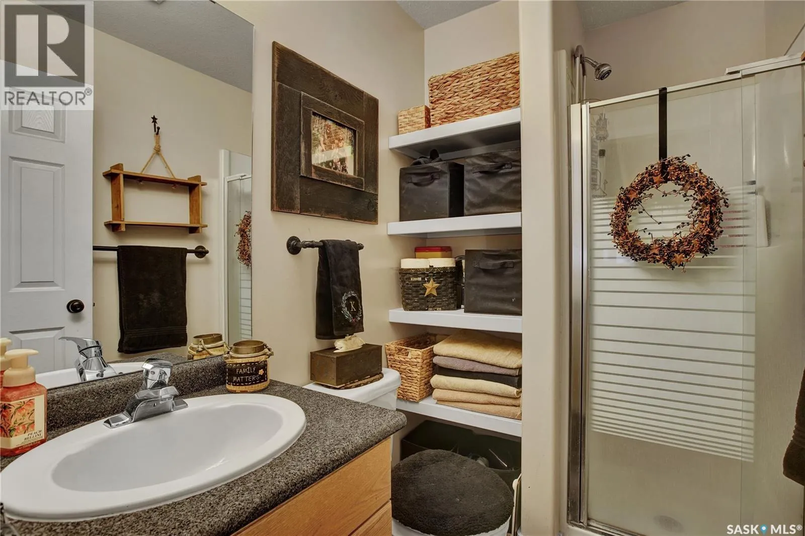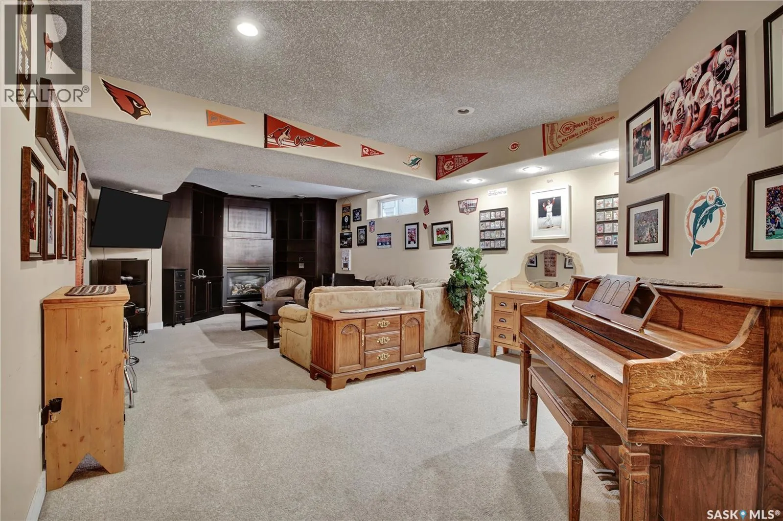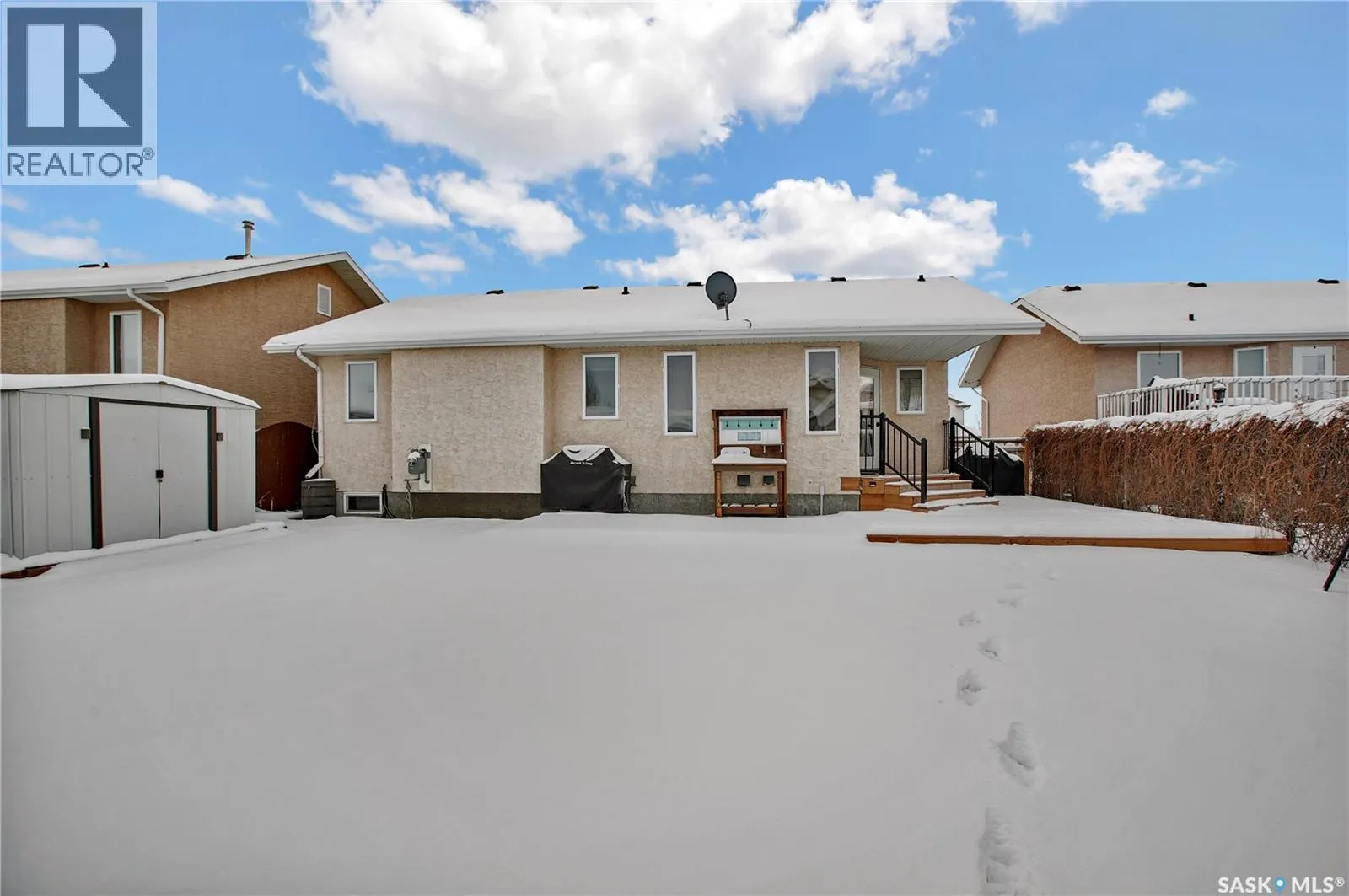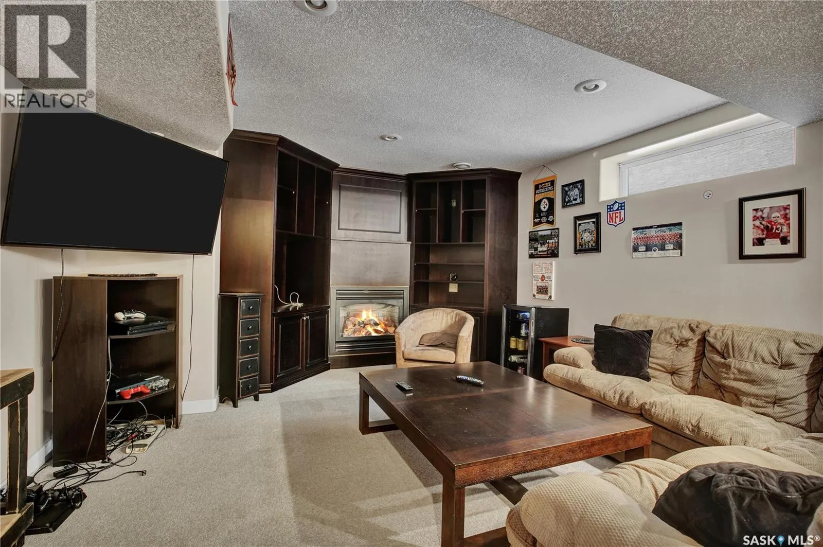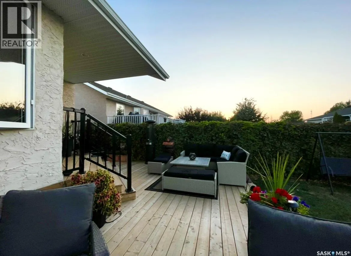 A wonderful blend of maturity, comfort, and modern updates are found in this beautifully maintained family bungalow, ideally situated in the middle of Warman. Nestled between the communityâs elementary and middle schools and just steps from the lakes and walking paths of Crystal Springs, this home offers exceptional convenience in a highly desired location. Inside, the south-facing living room is filled with natural light throughout the day, creating a warm and welcoming atmosphere. The kitchen and dining area overlook the expansive backyard, featuring abundant windows, alley access, and a brand-new deckâan ideal space for entertaining or relaxing outdoors. With three bedrooms and two bathrooms, the home has been thoughtfully updated throughout. The fully developed basement adds even more living space, highlighted by a stylish family room complete with custom cabinetry and a built-in natural gas fireplace. The basement can be completed with additional bedrooms and has rough-ins for a future bathroom. This is a home where pride of ownership is evident at every turn. Call your Realtor today to experience this beautiful property in person. (id:27476)