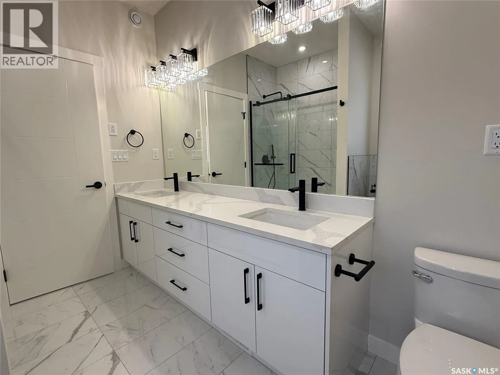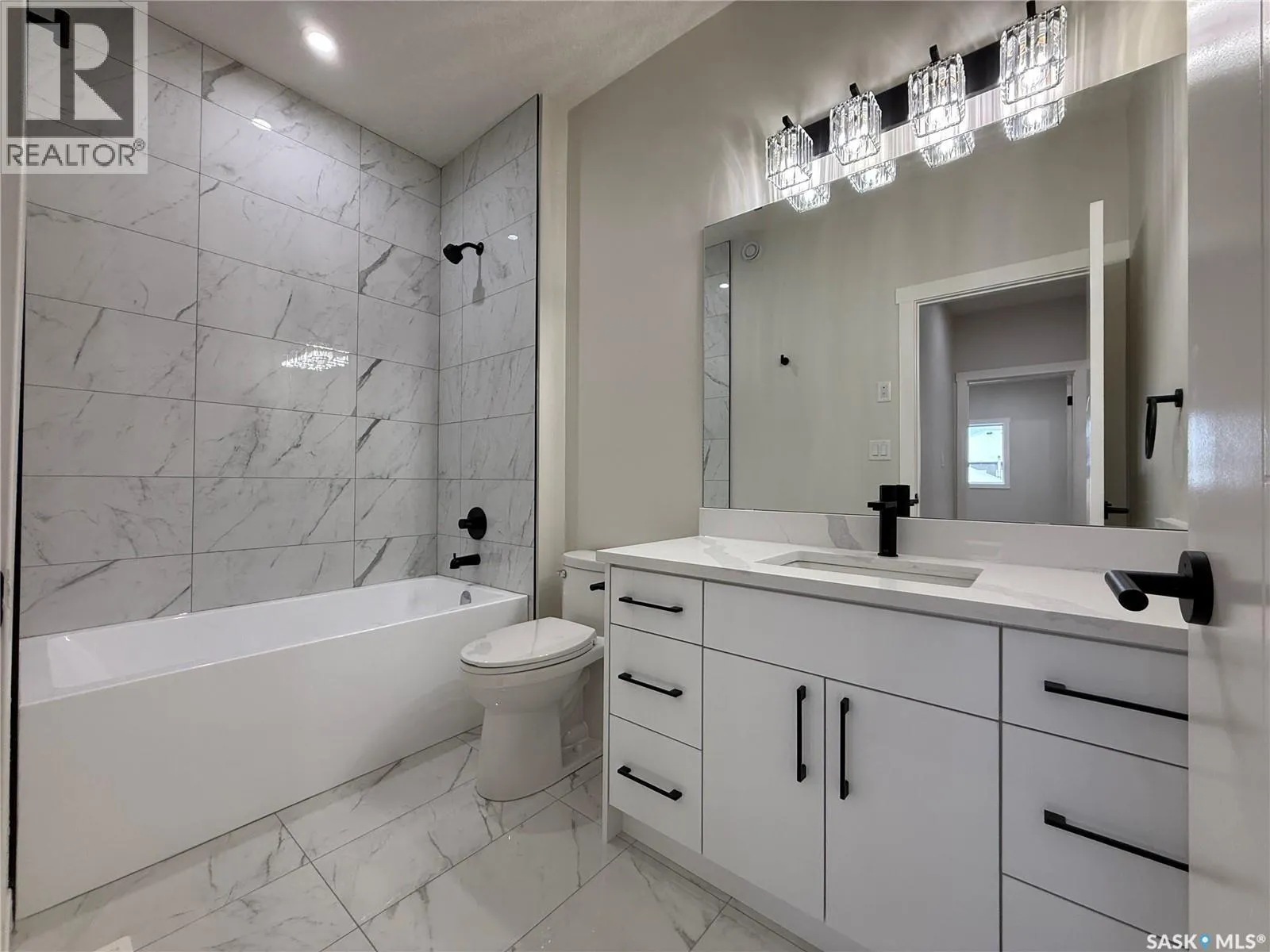Discover the perfect blend of space and style in this brand new 1,420 sq. ft. bi-level home built by Taj Homes. Designed with functionality and modern living in mind, this home offers generous room sizes, high-end finishes, and the rare opportunity to customize select colors and finishes to make it truly your own. Situated on a partially fenced lot with no rear neighbours, this home features a 25' x 26' attached, insulated two car garage, giving you plenty of parking and storage space. The location canât be beatâclose to shopping, grocery stores, schools, parks, and walking trails. Step inside to a bright and spacious open-concept main floor filled with natural light from large south-facing windows and an electric fireplace finished with shiplap. The expansive living room flows seamlessly into a chef-inspired kitchen showcasing quartz countertops, premium ceiling height cabinetry, a walk-in pantry, and a large islandâideal for both entertaining and daily family life. The main floor laundry room is a standout featureâthoughtfully designed with side-by-side appliances, countertop and upper cabinetry for maximum convenience and organization. Retreat to the primary suite, featuring a walk-in closet and a luxurious 5-piece ensuite complete with double sinks, a tiled shower, and a soaker tub. Two additional spacious bedrooms and a stylish 4-piece main bath complete the main floor. Some notable features include a on demand water heater, energy efficient furnace, All Weather Triple Pane windows, full set of stainless steel appliances, black trims and fixtures and Progressive New Home Warranty. Currently under construction, this home comes with a guaranteed possession date so you can plan your move with confidenceâno delays, no surprises. Come today and customize your new home by selecting from a range of color palettes and finishes to match your personal style. NOTE PICTURES ARE FROM PREVIOUS BUILD, FINAL COLOURS AND SPECS MAY VARY (id:27476)
