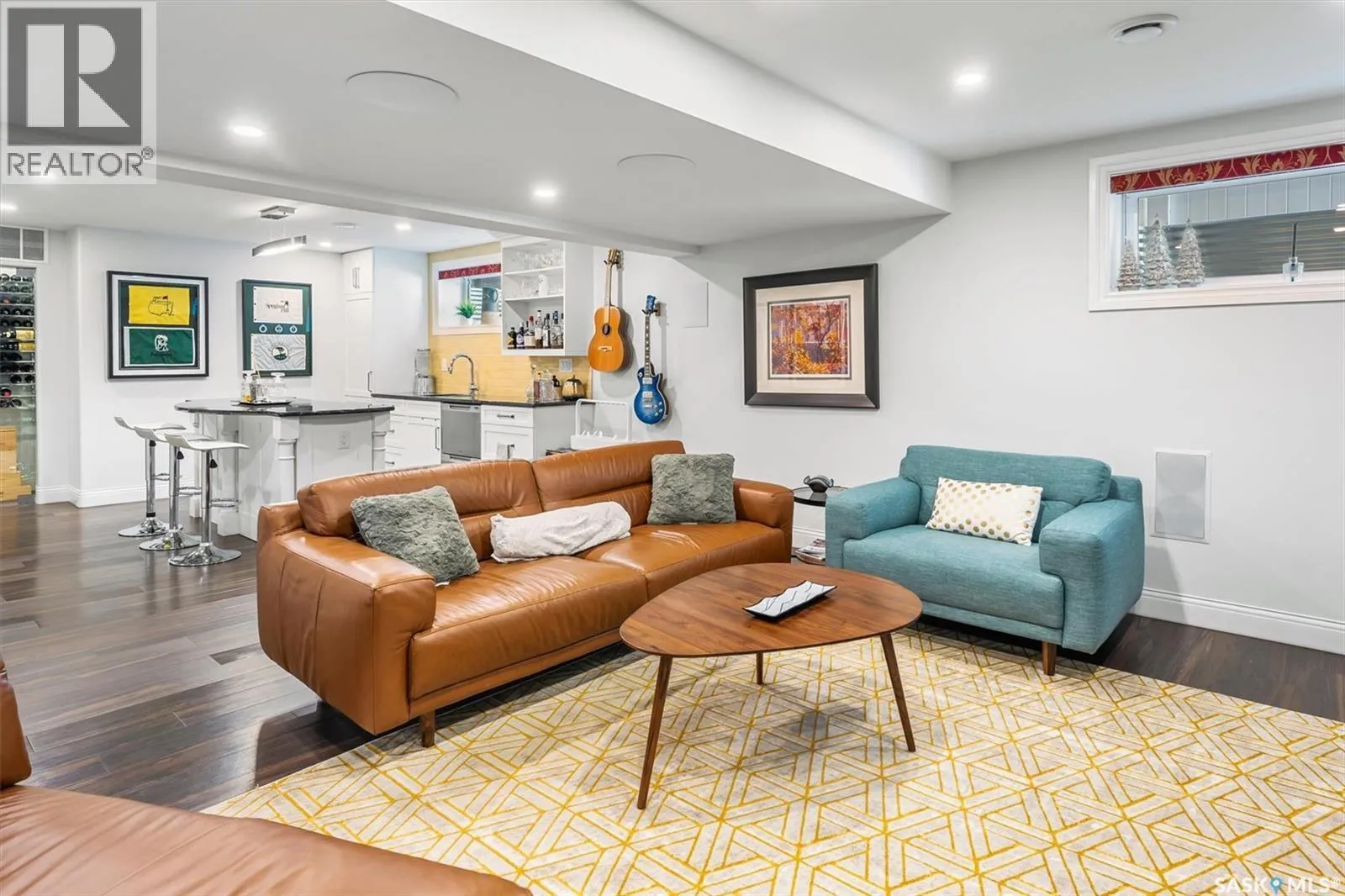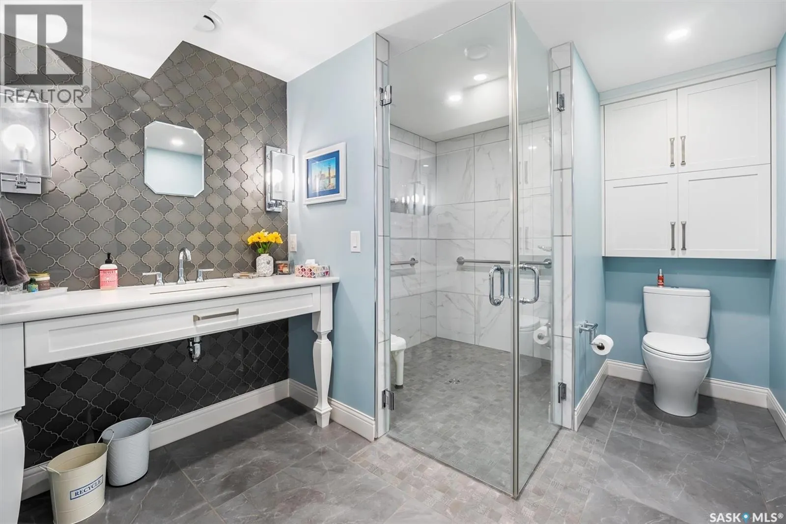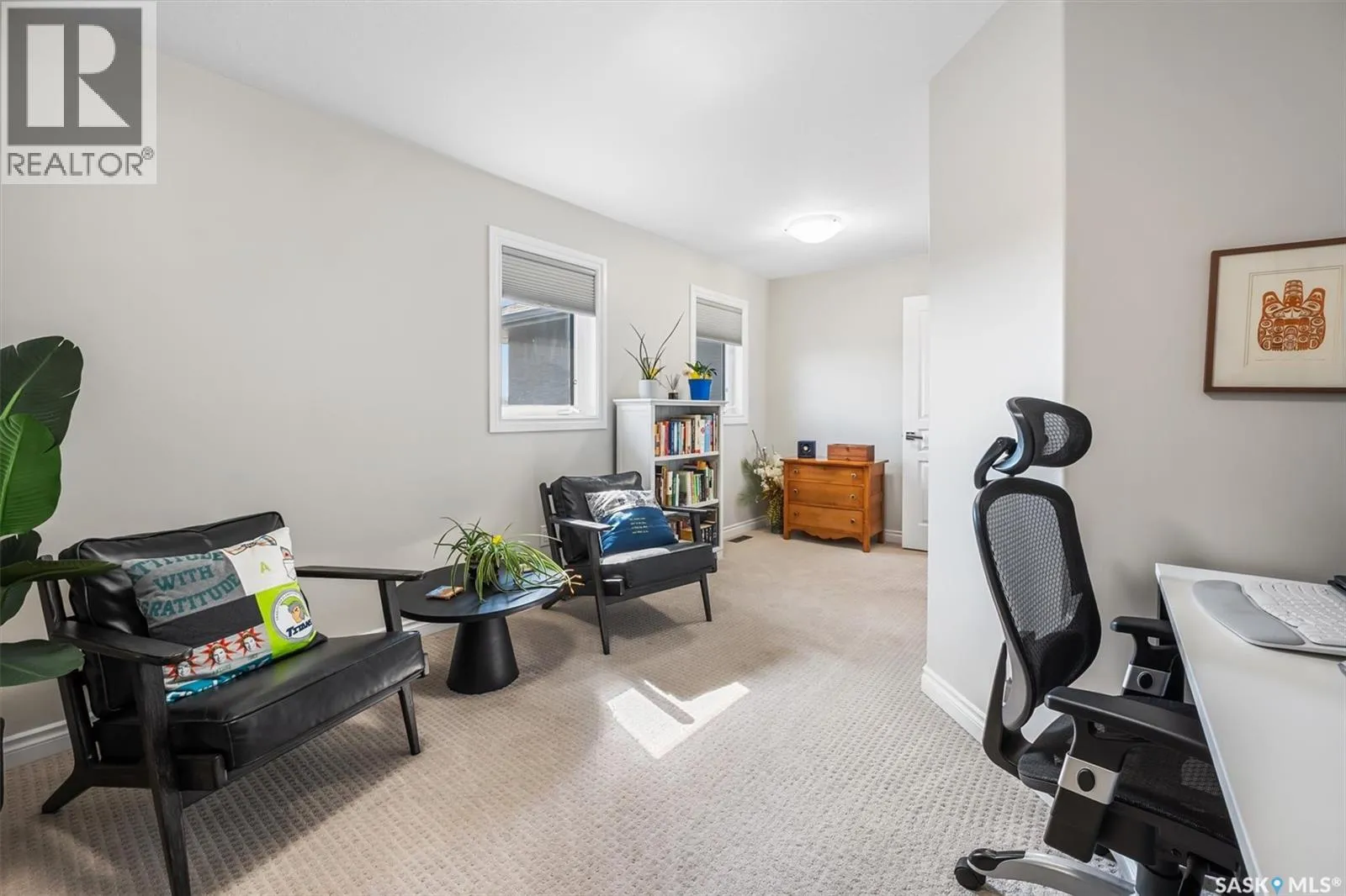 Immaculate custom-built home in Warman with Premium finishings designed with wheelchair accessibility in mind. Main Floor: Extra-wide galley kitchen with granite counters, high-end appliances (gas stove/hood fan, double-door fridge/freezer, built-in microwave, dishwasher). Main-floor primary bedroom with walk-in closet and direct access to 3-pc accessible bath. Wide hallways, lever handles, roll-under sinks. Personal 3-stop elevator with access to garage, main, and basement. Second Floor: Second primary bedroom plus bedroom/office. Shared 4-pc bath (reno 2022) with access from both rooms. Basement: Exceptional entertainment space featuring a large family/media room with fireplace, custom shelving, and 10-speaker Dolby Atmos system. High-end wet bar with granite island, dual-drawer dishwasher, drying-rack sink, custom cabinets, and glass wine cellar (300 bottles). Bedroom with built-in queen Murphy bed next to 3-pc bath. Laundry, storage, and utility rooms. Garage: Fully insulated and heated double garage with EV charger and full golf simulator (projector, retractable screen/enclosure). Elevator access. Yard: Low-maintenance landscaping with composite deck, 4-hole putting green, artificial chipping area, extensive patio with multiple seating/BBQ areas, vinyl fencing, large garden boxes with underground sprinklers, and four storage sheds. Accessibility Highlights: Two roll-in showers with grab bars and multi-head fixtures, full turning radius bathrooms, wide hallways/kitchen, extra-wide fence gates, moveable rubber ramp, main-floor bedroom sized for lift use. Updates: Hot water tank (2019), upstairs bath (2022). A must see for any family! (id:27476)