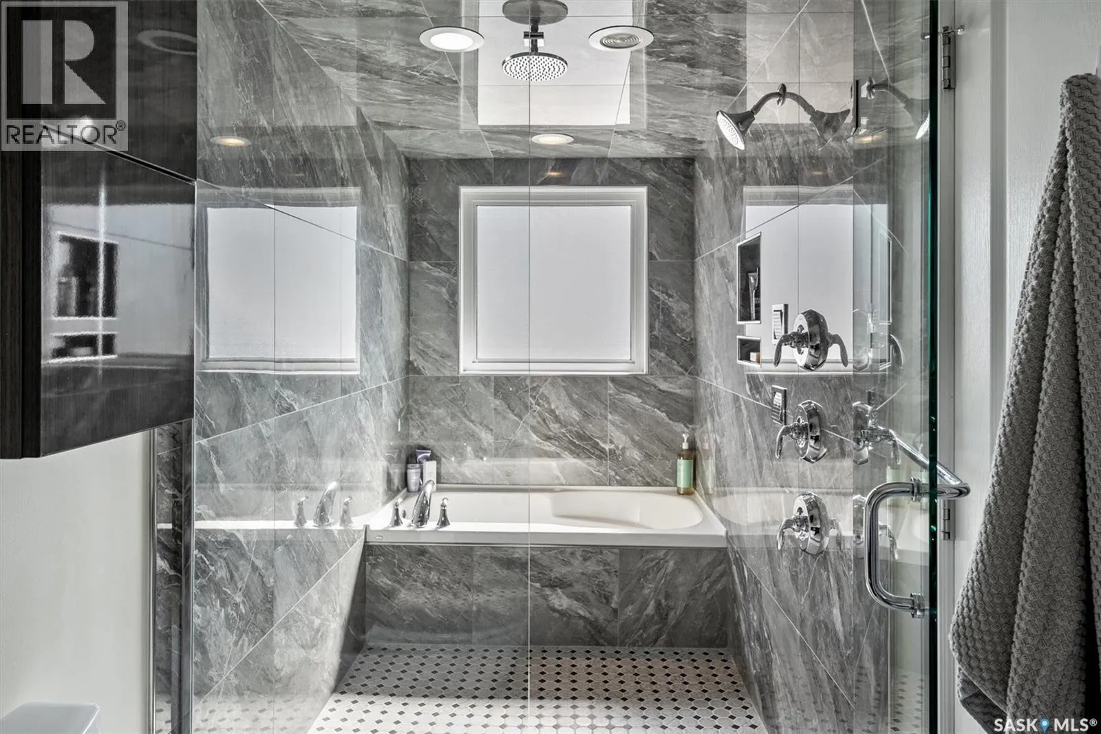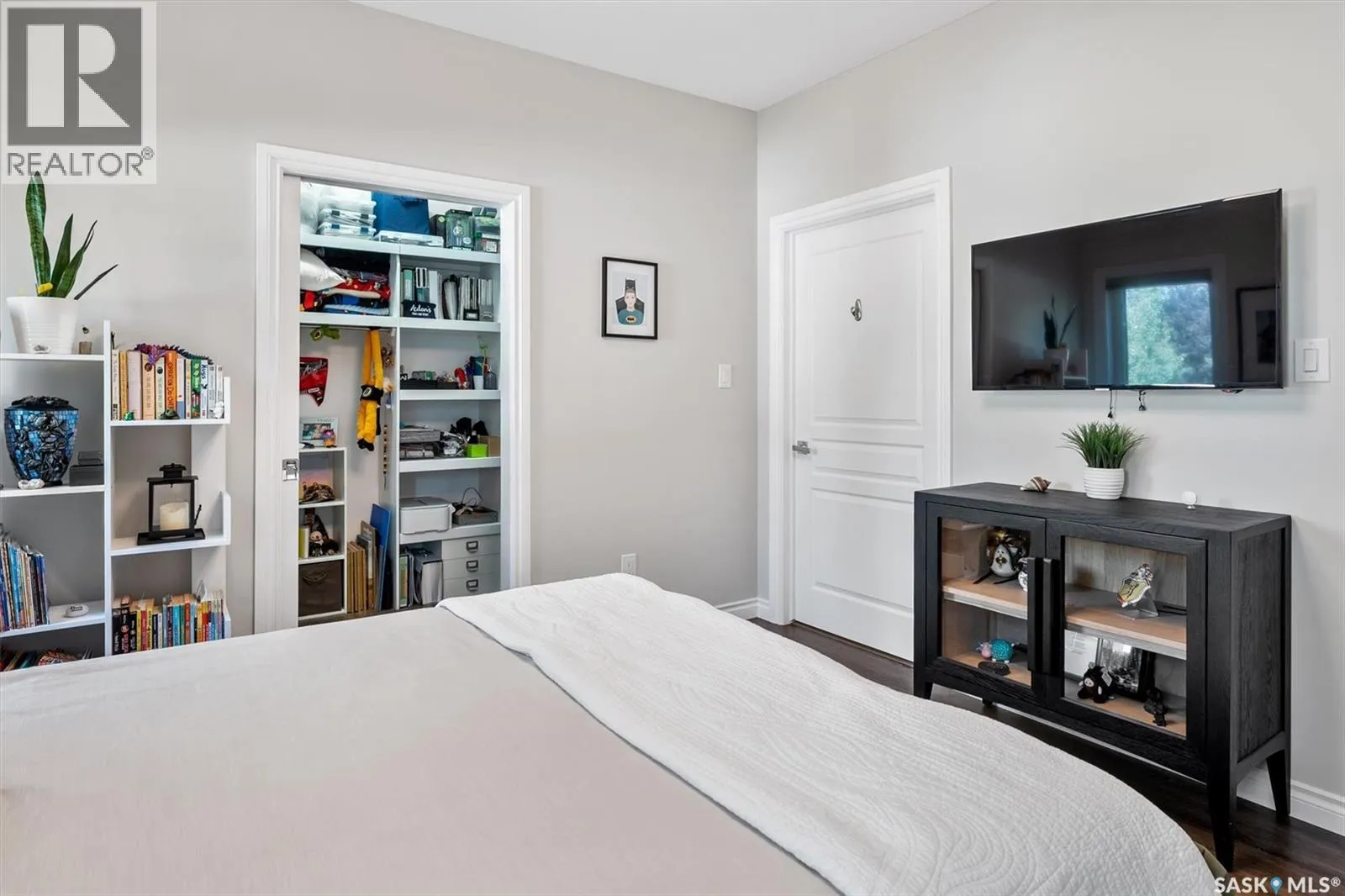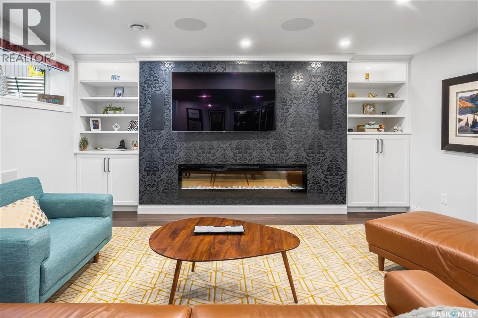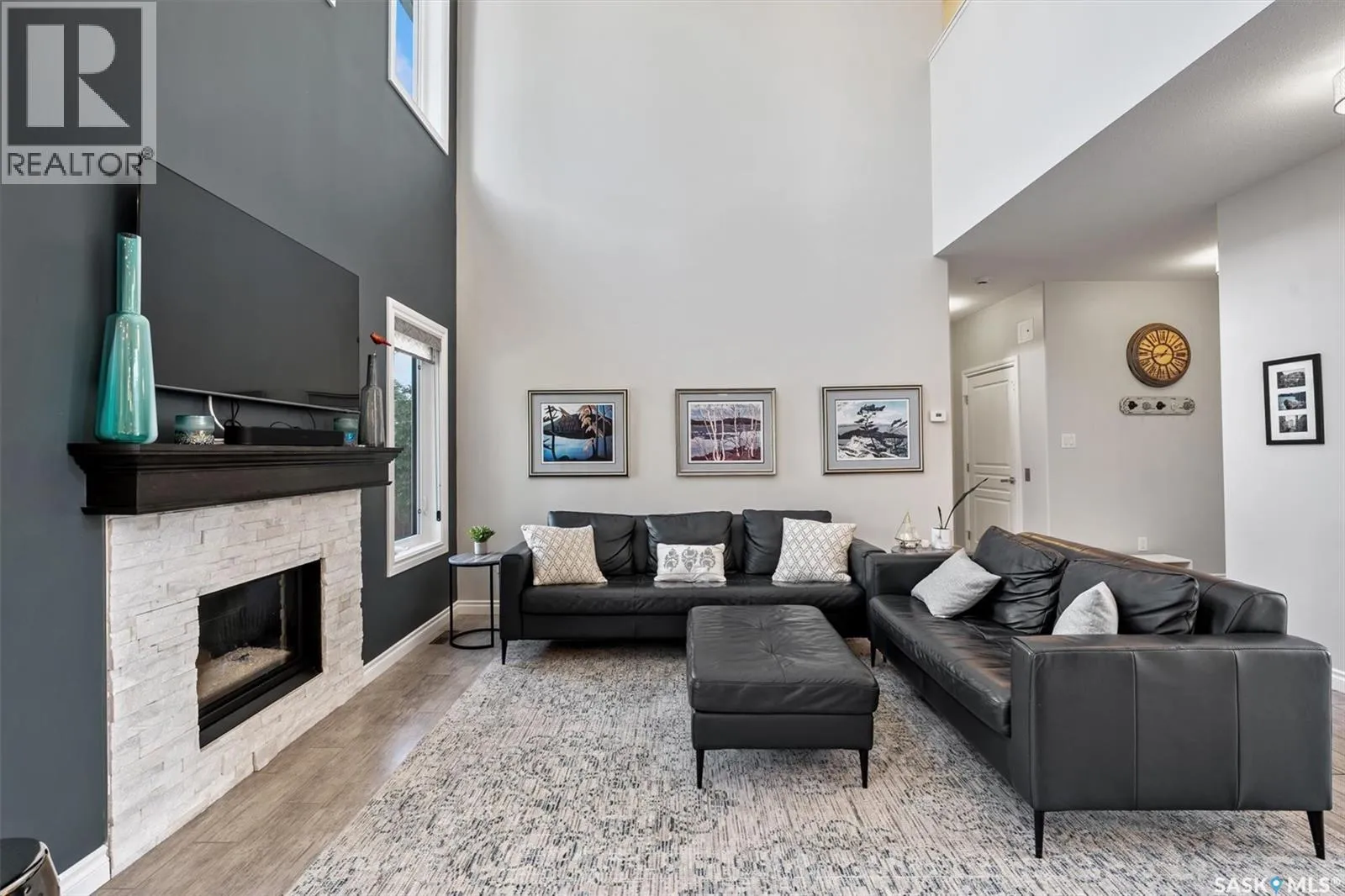 Immaculate custom-built home in Warman with Premium finishings designed with wheelchair accessibility in mind. Main Floor: Extra-wide galley kitchen with granite counters, high-end appliances (gas stove/hood fan, double-door fridge/freezer, built-in microwave, dishwasher). Main-floor primary bedroom with walk-in closet and direct access to 3-pc accessible bath. Wide hallways, lever handles, roll-under sinks. Personal 3-stop elevator with access to garage, main, and basement. Second Floor: Second primary bedroom plus bedroom/office. Shared 4-pc bath (reno 2022) with access from both rooms. Basement: Exceptional entertainment space featuring a large family/media room with fireplace, custom shelving, and 10-speaker Dolby Atmos system. High-end wet bar with granite island, dual-drawer dishwasher, drying-rack sink, custom cabinets, and glass wine cellar (300 bottles). Bedroom with built-in queen Murphy bed next to 3-pc bath. Laundry, storage, and utility rooms. Garage: Fully insulated and heated double garage with EV charger and full golf simulator (projector, retractable screen/enclosure). Elevator access. Yard: Low-maintenance landscaping with composite deck, 4-hole putting green, artificial chipping area, extensive patio with multiple seating/BBQ areas, vinyl fencing, large garden boxes with underground sprinklers, and four storage sheds. Accessibility Highlights: Two roll-in showers with grab bars and multi-head fixtures, full turning radius bathrooms, wide hallways/kitchen, extra-wide fence gates, moveable rubber ramp, main-floor bedroom sized for lift use. Updates: Hot water tank (2019), upstairs bath (2022). A must see for any family! (id:27476)