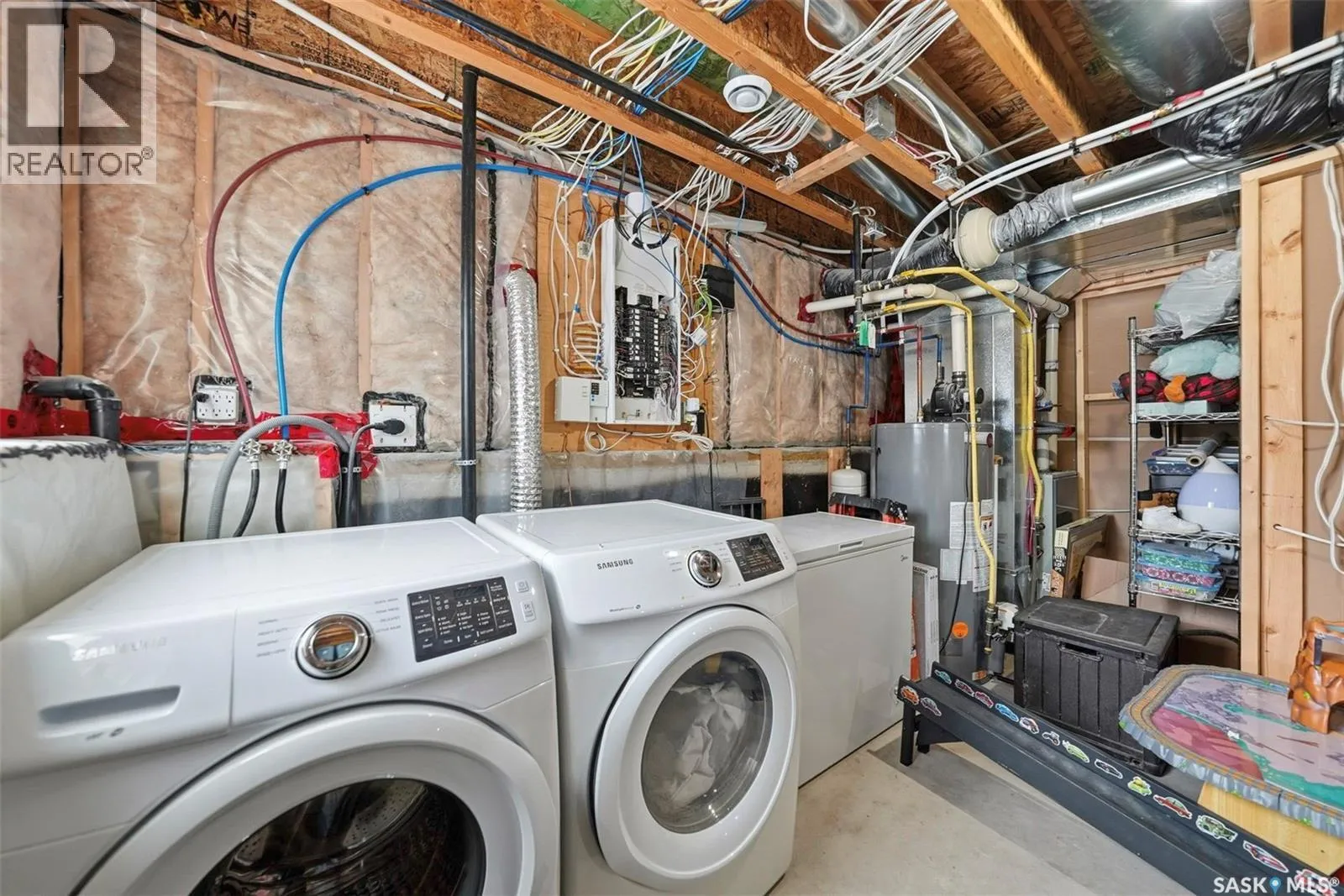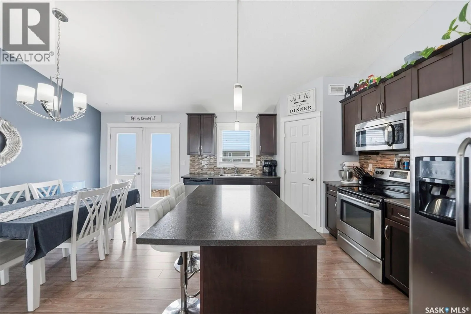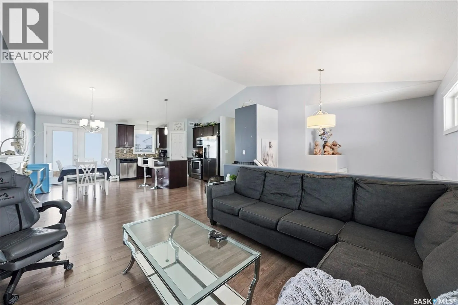 Here is a home situated in the Legends community of Warman, close to all amenities. This family bilevel has some unique curb appeal with a front covered porch/deck looking out West. Inside you are greeted with a good sized foyer that has direct entry to your double attached garage. On the main floor you will experience the open concept with vaulted ceiling allowing for maximum airflow and light. There is a large island, ideal for food prep and entertaining. All appliances come included. Down the hall you will find your 3 bedrooms and 2 baths. The primary bedroom boasts a walkin closet and its own ensuite bathroom. Downstairs you will find a tasteful and unique floorplan not often found that allows for a large family room/TV area and another area outfitted as a gym/exercise room or use as a games room too. There are 2 good sized bedrooms along with the laundry room. The basement is near full completion and just needs some finishing touches, see pictures. The furnace and water heater are high efficient and it also features central air conditioning. This home shows pride of ownership and must be seen to fully appreciate, contact a Realtor to schedule your private viewing. (id:27476)