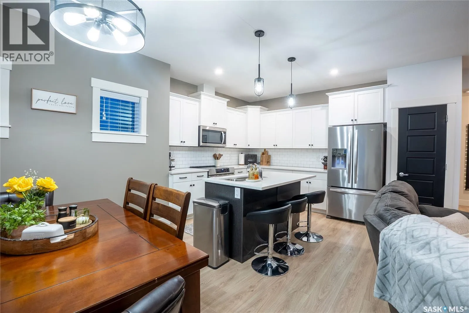Welcome to 96-900 St. Andrews Lane, a beautifully maintained family home ideally located close to schools, Legends Sports Centre, shopping, walking trails, and other everyday amenities. Built in 2021, this property shows like new and offers modern design with thoughtful upgrades throughout. The main floor features a bright, open-concept layout with 9â ceilings and an abundance of natural light. The stylish kitchen is sure to impress with soft-close cabinetry, quartz countertops, a tiled backsplash, pantry, and upgraded high-end stove and dishwasher (appliances included). The inviting living room is centered around a stunning gas fireplace and opens through patio doors to a covered deck overlooking the fully fenced, landscaped, east-facing backyard. Upstairs, youâll find a spacious bonus room and convenient laundry area. The impressive primary bedroom boasts vaulted ceilings, a walk-in closet, and a luxurious ensuite complete with tiled shower, soaker tub, and dual sinks. Just a few steps up are two additional bedrooms and a full 4-piece bathroom. The basement is open for future development and is roughed in for a bathroom and/or wet bar. Additional highlights include a double attached garage with interior drain, insulation, drywall, and an electric heater (included), a double concrete driveway, and a finished, low-maintenance yard. TVs and TV mounts are also included. Pride of ownership is evident throughoutâthis home shows exceptionally well. Contact today to arrange your private viewing. (id:27476)