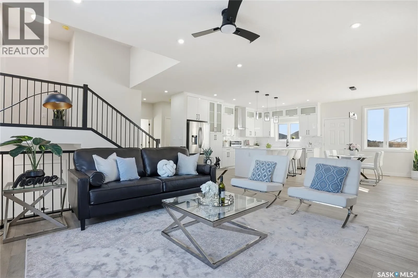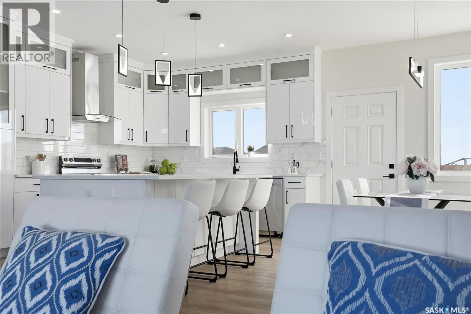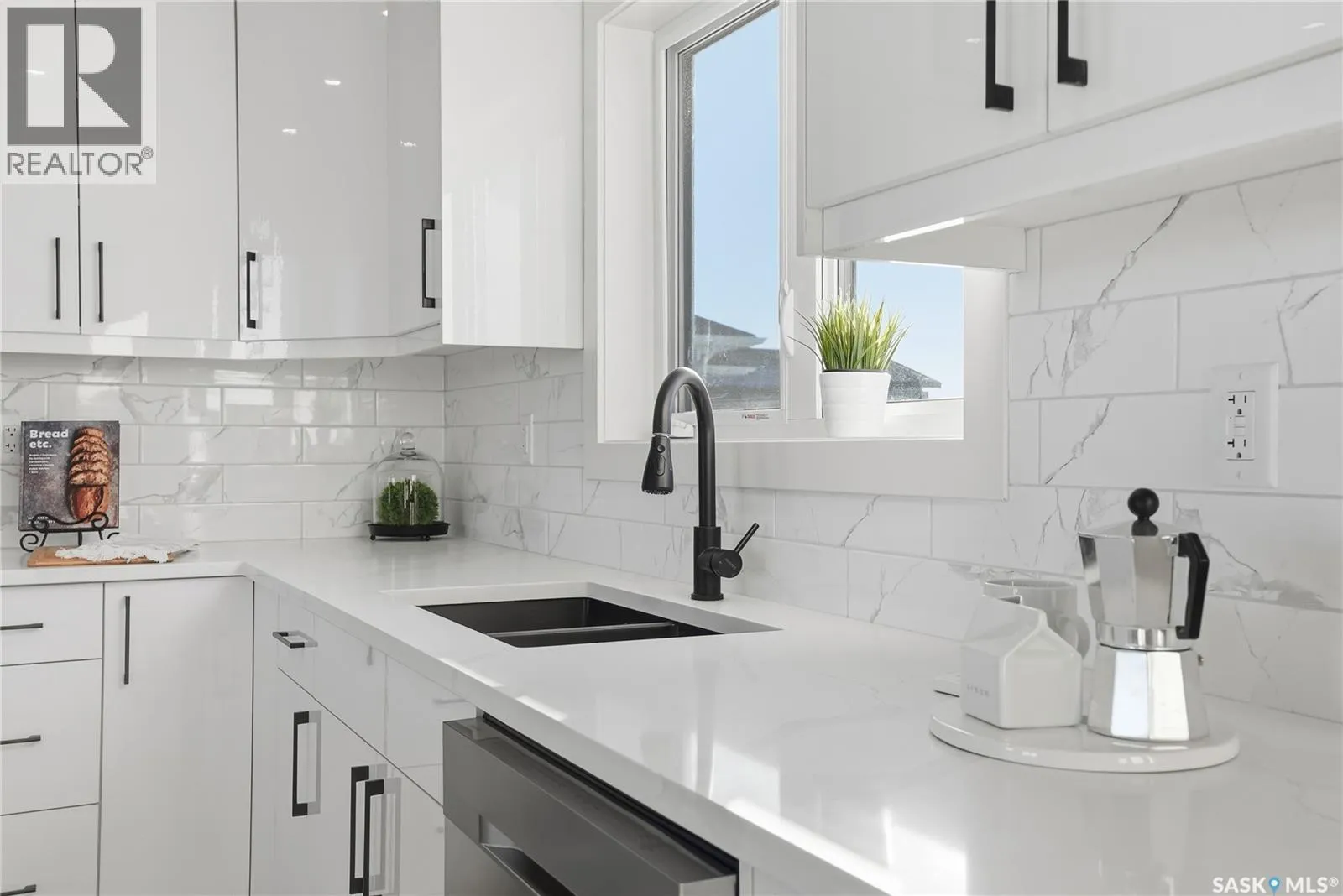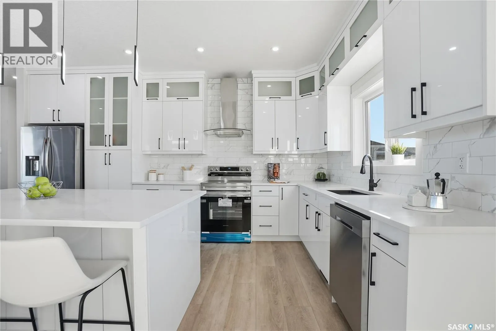 Welcome to this brand new 1,737 sq. ft. modified bi-level located at 722 Weir Crescent, perfectly positioned with views of The Legends Golf Course. This thoughtfully designed home offers 3 bedrooms and 2 bathrooms, along with a heated, insulated, and drywalled oversized triple attached garage and concrete triple driveway â ideal for additional parking, storage, or workspace. Upon entering, youâre welcomed by a tiled front entry complete with a convenient coat closet. Head upstairs to the main living area, finished in luxury vinyl plank flooring throughout. The spacious living room is highlighted by large east-facing windows that bring in an abundance of natural light, along with an electric fireplace featuring a shiplap surround. The kitchen is equipped with high-gloss cabinetry, quartz countertops, a hood fan, and stainless steel appliances, offering both modern design and functionality. Large quartz island with hidden storage and bar stool space. Two spacious bedrooms are located on the main floor, along with a 4-piece bathroom complete with a tiled tub/shower surround and Delta fixtures. Finishing the main floor is the convenient placed laundry room. The oversized primary bedroom offers a private retreat with large windows with views of the Legends golf course. Complete with a walk-in closet and a beautifully finished 5-piece tiled ensuite featuring a soaker tub, stand-up shower with sliding glass doors, and dual vanities. The basement is currently unfinished and open for future development, allowing for customization to suit your needs. The builder is available to complete basement development â contact for pricing and options. Exterior features include central air conditioning and a rear deck finished with aluminum railing (no steps) and Duradek, overlooking the large backyard with convenient back alley access. GST & PST included in the purchase price and backed by New Home Warranty. (id:27476)