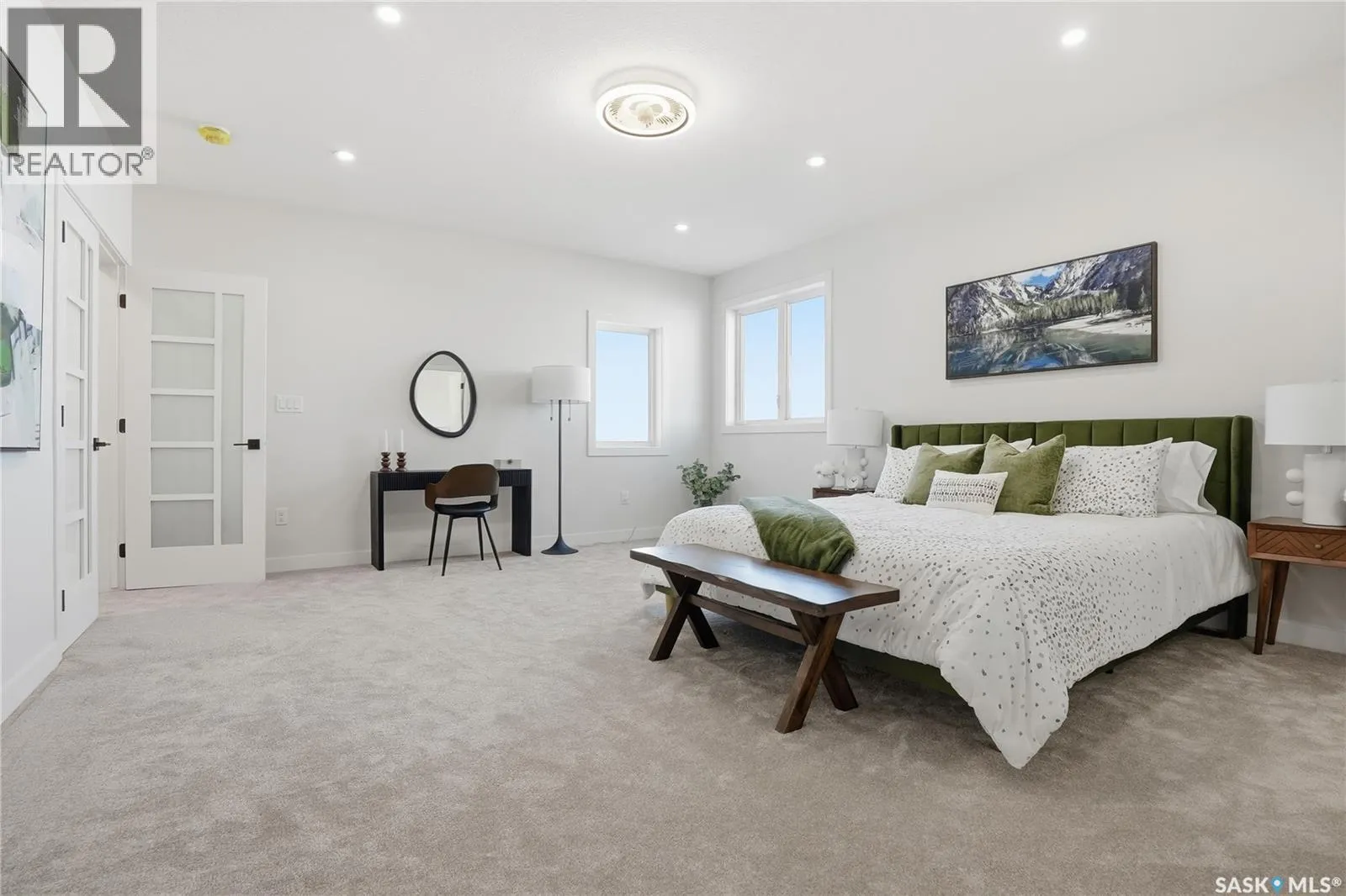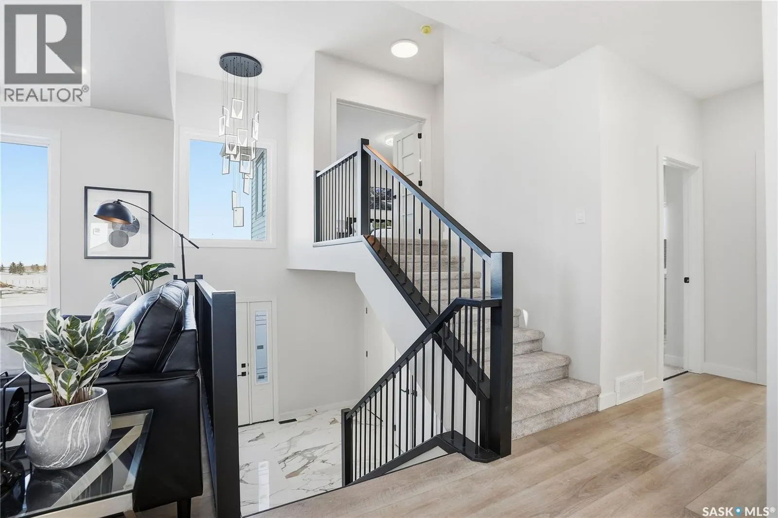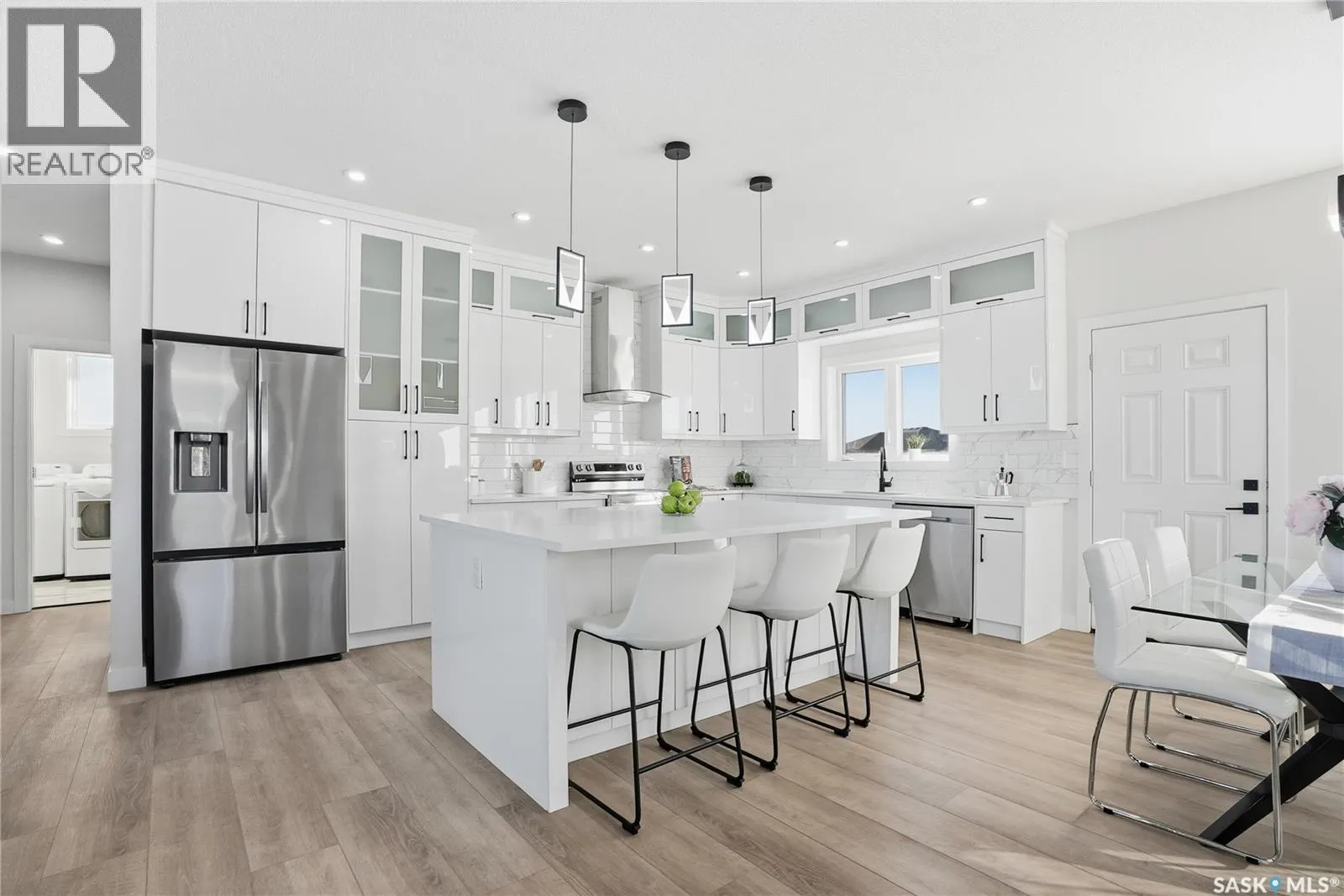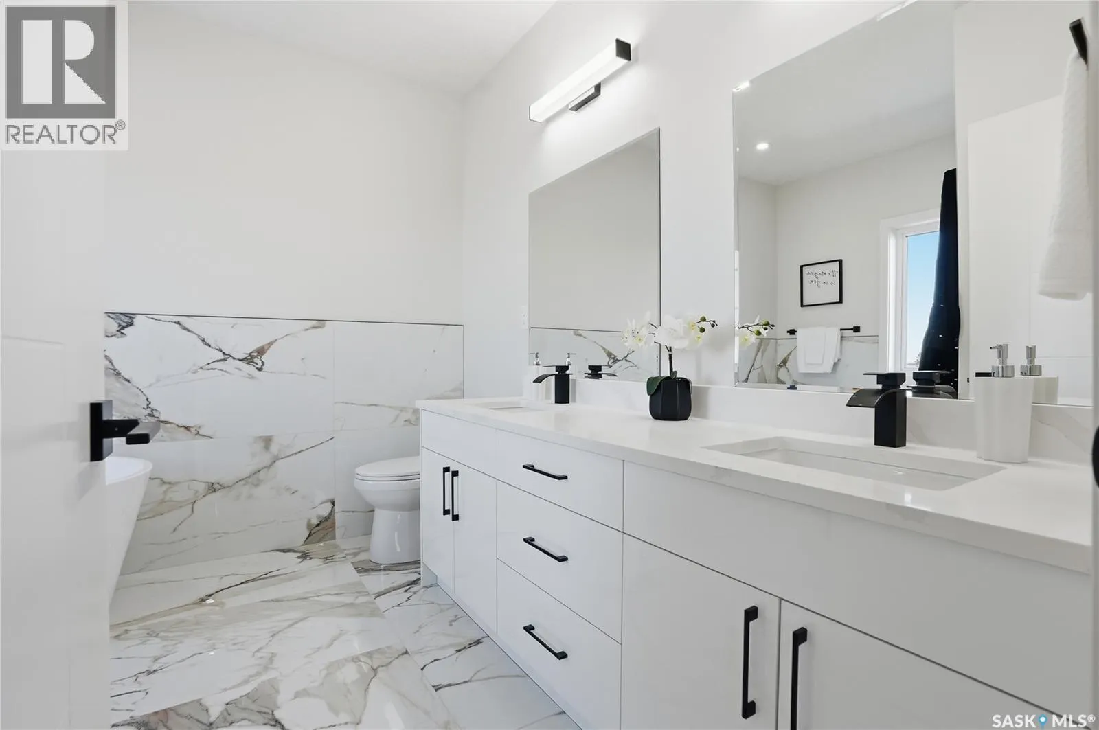 Welcome to this brand new 1,737 sq. ft. modified bi-level located at 722 Weir Crescent, perfectly positioned with views of The Legends Golf Course. This thoughtfully designed home offers 3 bedrooms and 2 bathrooms, along with a heated, insulated, and drywalled oversized triple attached garage and concrete triple driveway â ideal for additional parking, storage, or workspace. Upon entering, youâre welcomed by a tiled front entry complete with a convenient coat closet. Head upstairs to the main living area, finished in luxury vinyl plank flooring throughout. The spacious living room is highlighted by large east-facing windows that bring in an abundance of natural light, along with an electric fireplace featuring a shiplap surround. The kitchen is equipped with high-gloss cabinetry, quartz countertops, a hood fan, and stainless steel appliances, offering both modern design and functionality. Large quartz island with hidden storage and bar stool space. Two spacious bedrooms are located on the main floor, along with a 4-piece bathroom complete with a tiled tub/shower surround and Delta fixtures. Finishing the main floor is the convenient placed laundry room. The oversized primary bedroom offers a private retreat with large windows with views of the Legends golf course. Complete with a walk-in closet and a beautifully finished 5-piece tiled ensuite featuring a soaker tub, stand-up shower with sliding glass doors, and dual vanities. The basement is currently unfinished and open for future development, allowing for customization to suit your needs. The builder is available to complete basement development â contact for pricing and options. Exterior features include central air conditioning and a rear deck finished with aluminum railing (no steps) and Duradek, overlooking the large backyard with convenient back alley access. GST & PST included in the purchase price and backed by New Home Warranty. (id:27476)