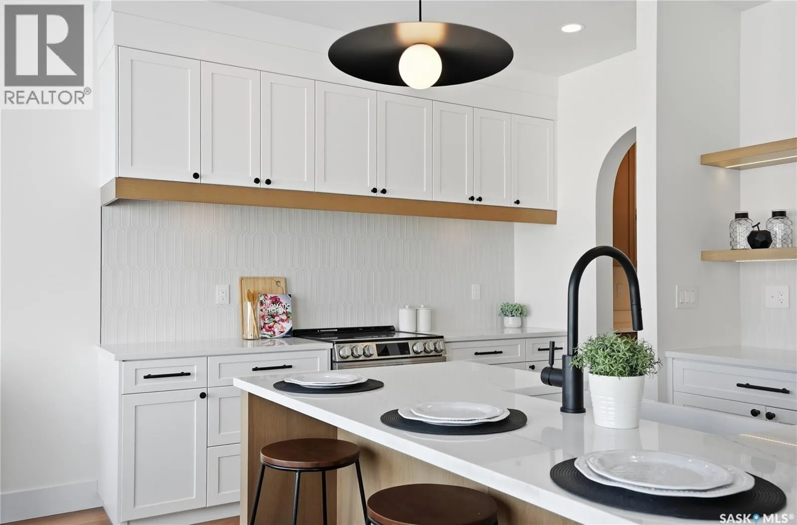 Welcome to 436 Augusta Blvd, Warman! This beautiful Country Modern Home is located right by a school and a large green space. walking into the home you have a large foyer. Right off the entrance is an office with large south facing windows that look out onto the pond. In the living room you have a beautiful fireplace with inset shelves on either side. The kitchen is a show stopper with a large island, large double door refrigerator, walk-in pantry and counter top lighting! the main floor also has a statement 2 pc bathroom and a mud/laundry room off of the garage entrance. Heading upstairs is the Primary bedroom with a double door entry, vaulted ceiling, abundance of natural light, large walk-in closet, and a beautiful 5-pc Ensuite! there are three more bedrooms upstairs with a jack and Jill 5-pc bathroom. The home has a double attached garage, front porch and a back deck. This home will offer you comfort and luxury! Contact your favourite realtor to view today! (id:27476)