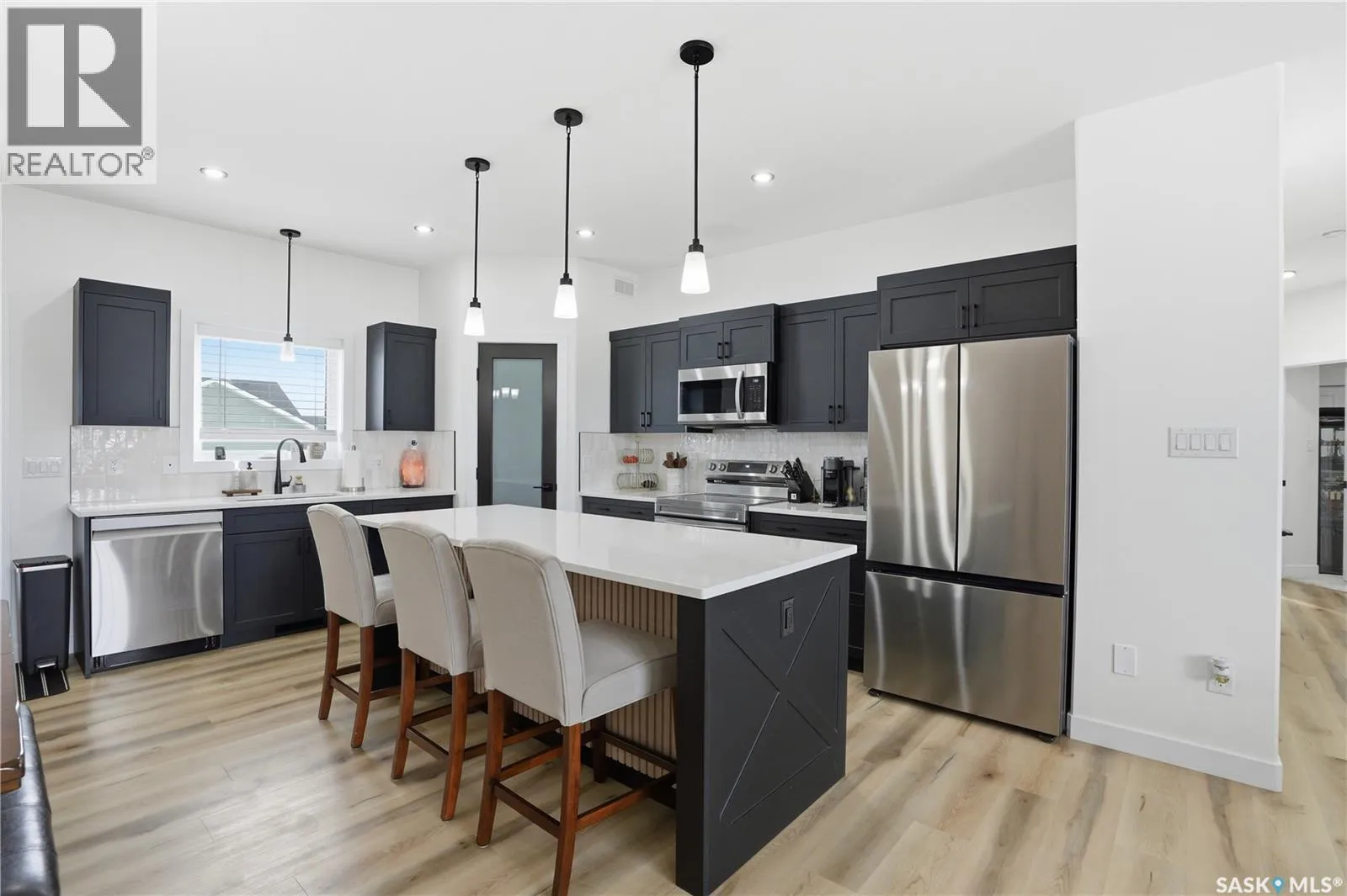 Welcome to this beautiful bi-level home located in Warman SK. With a well-designed layout and tasteful finishes, this house offers comfortable living spaces and a modern aesthetic. Spanning 1335 square feet, 9-foot ceilings both upstairs and downstairs, creates a sense of openness and spaciousness. With three bedrooms up and two downstairs, there is ample space for the whole family to enjoy. One of the standout features of this property is the three-car garage, providing plenty of room for parking and storage. The kitchen is a chef's dream, featuring a large island with an extended ledge and a walk-in pantry and all appliances. Quartz countertops throughout the house, complemented by undermount sinks and soft close cabinetry ensuring both functionality and adding a touch of luxury. The master bedroom includes an ensuite bathroom, complete with a tub and a tiled shower, offering a serene retreat. In the living room, dining room, kitchen, hallway, front entry, and bathrooms display beautiful vinyl plank flooring, combining style and practicality. Triple garage it full insulated, boarded and heated! Don't miss the opportunity to view this exceptional home. Call today to schedule a viewing and see the quality for yourself! (id:27476)