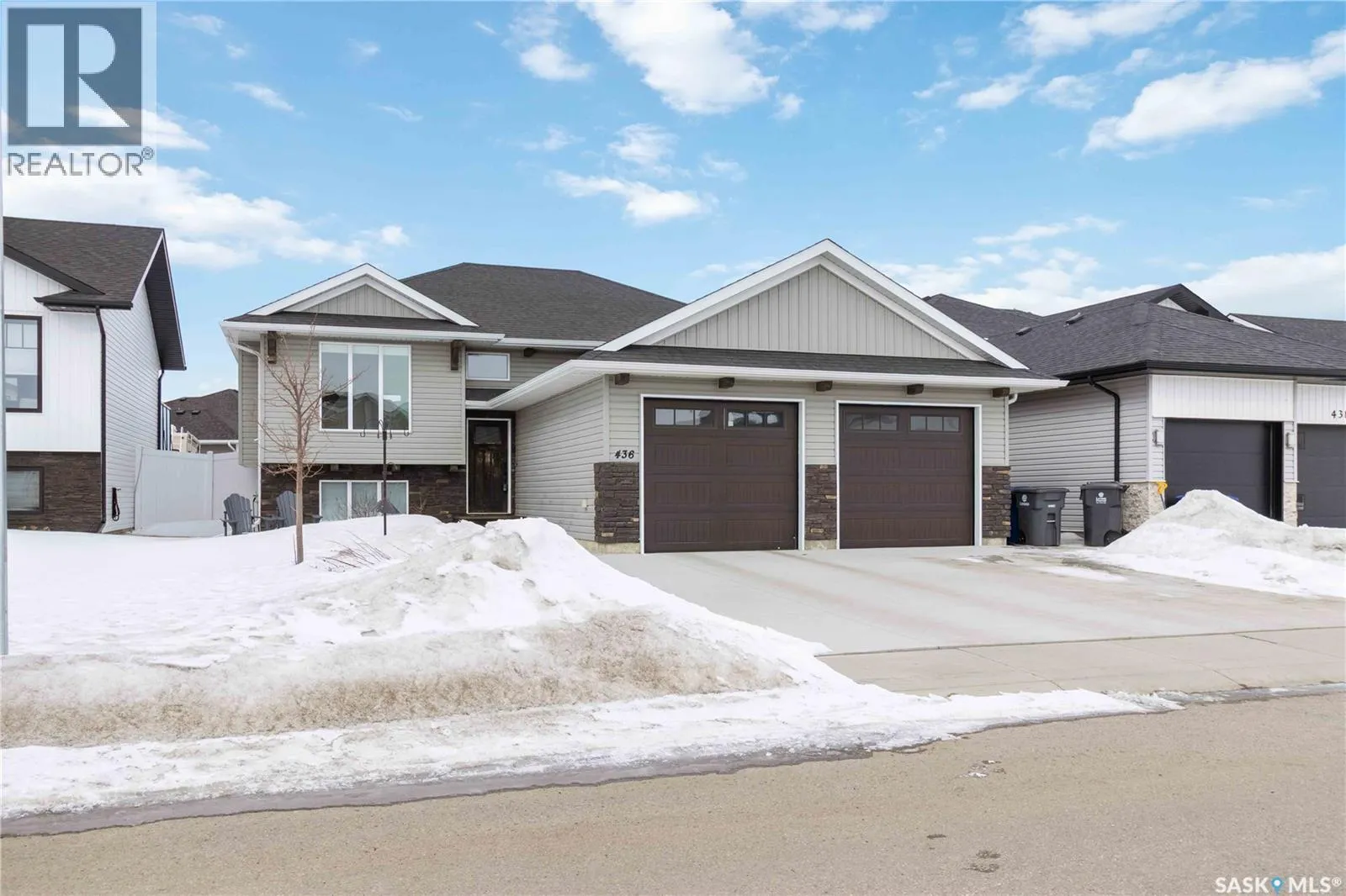 Welcome to 436 Palmer Crescent, a beautiful and well-maintained 1,321 sq. ft. bi-level home in Warmanâs golf course community surrounded by greenspaces and walking paths. This home features a tray ceiling with wood beams in the living room, high-quality laminate flooring on the main floor, and a bright kitchen with ample cabinetry, a large walk-in pantry, and space for a dining table with access to a private deck. The main floor offers three spacious bedrooms, with the primary showcasing a reclaimed brick feature wall and a 4-piece ensuite with heated floors. The recently finished basement by Warman Homes includes two more large bedrooms, a family room, a 3-piece bath, and laundry/storage. Outside, enjoy the private deck with planter nooks, a fully manicured lawn with trees, under-deck storage, and a maintenance-free vinyl fence with alley access for added privacy. The yard also boasts underground sprinklers and a fire pit area. Recent upgrades include new appliances (washer/dryer â25, dishwasher â26) and central air (â23). The 24x24 heated garage provides plenty of storage. A great location and a truly lovely home! (id:27476)
