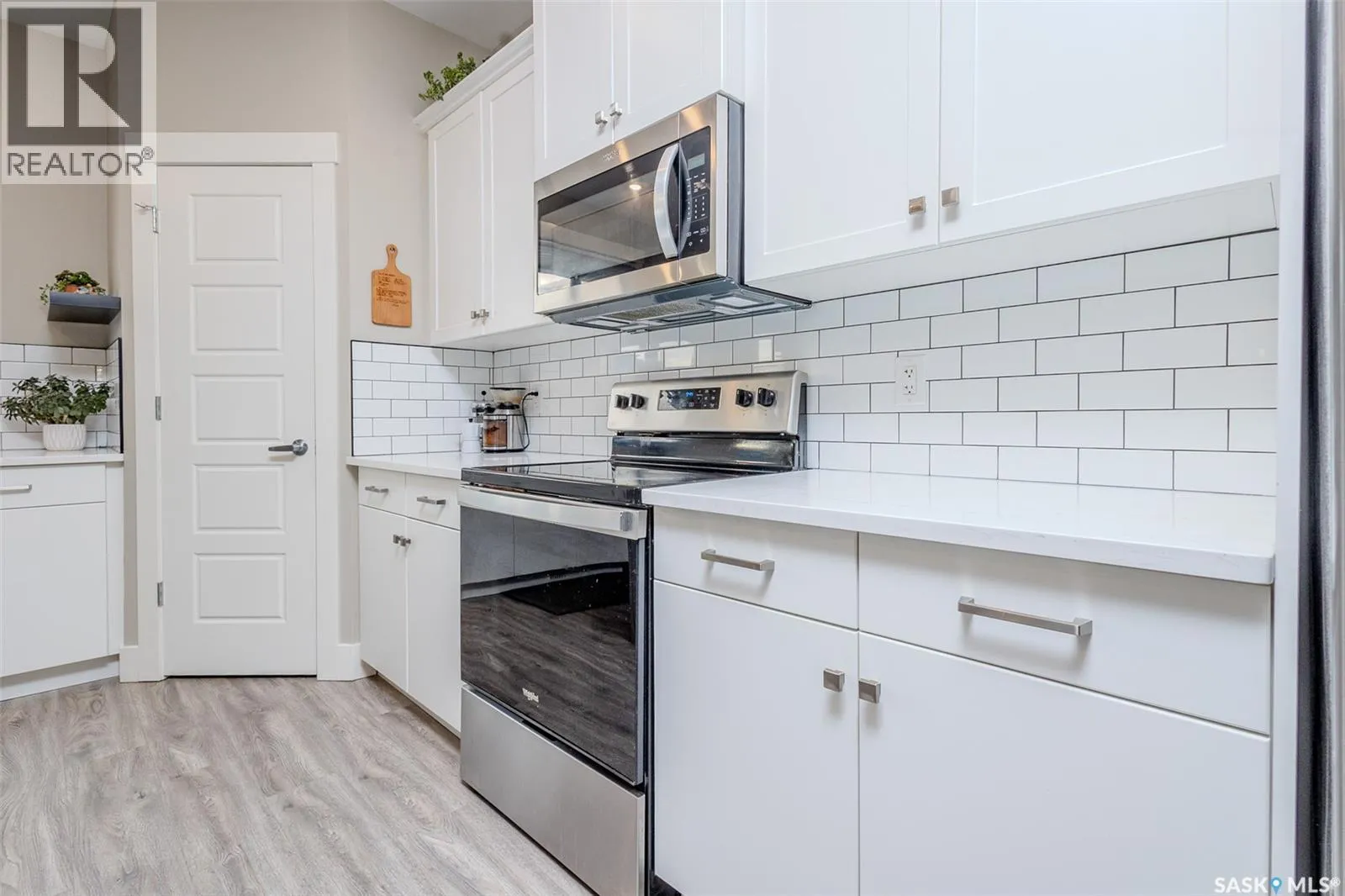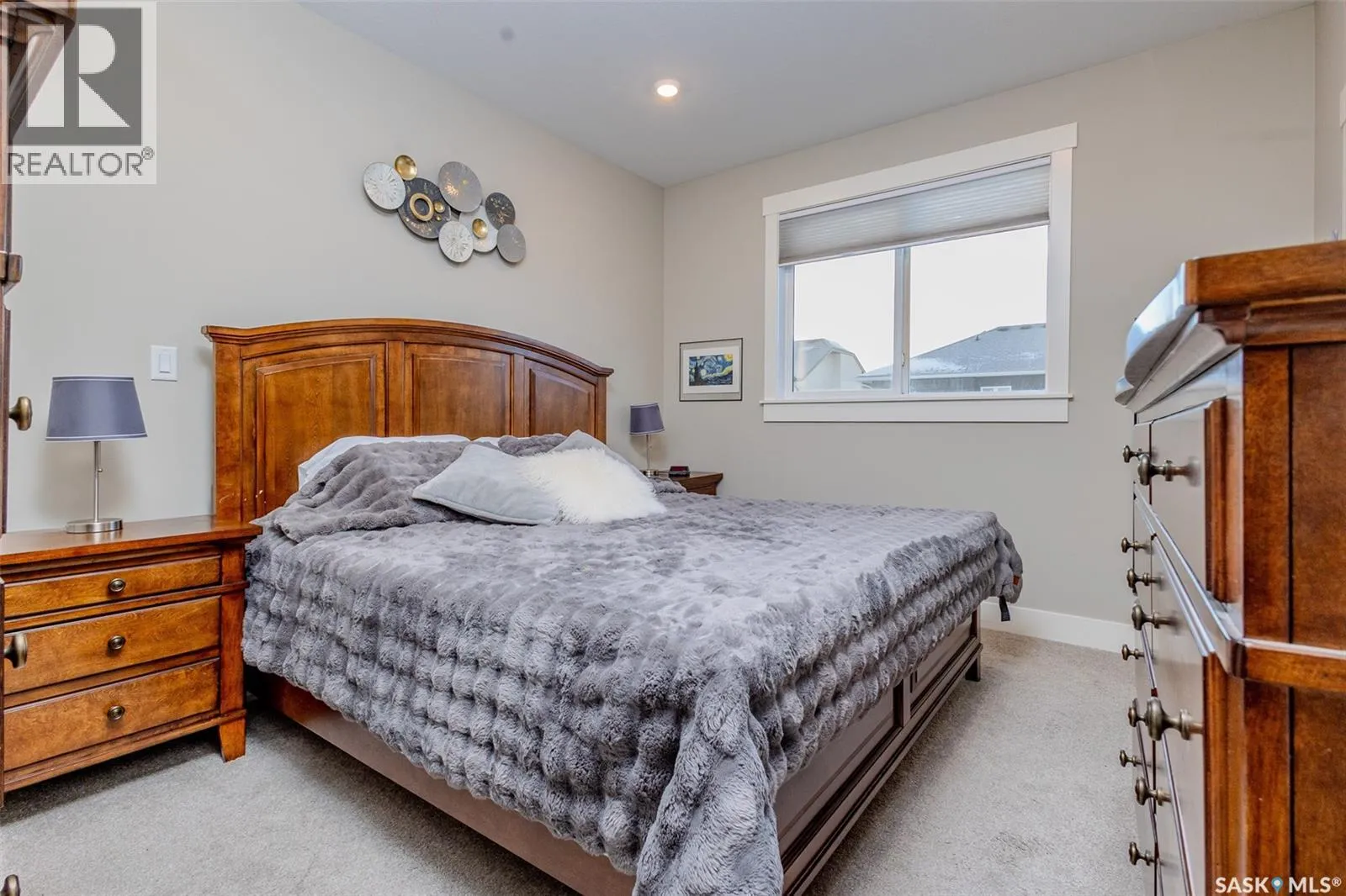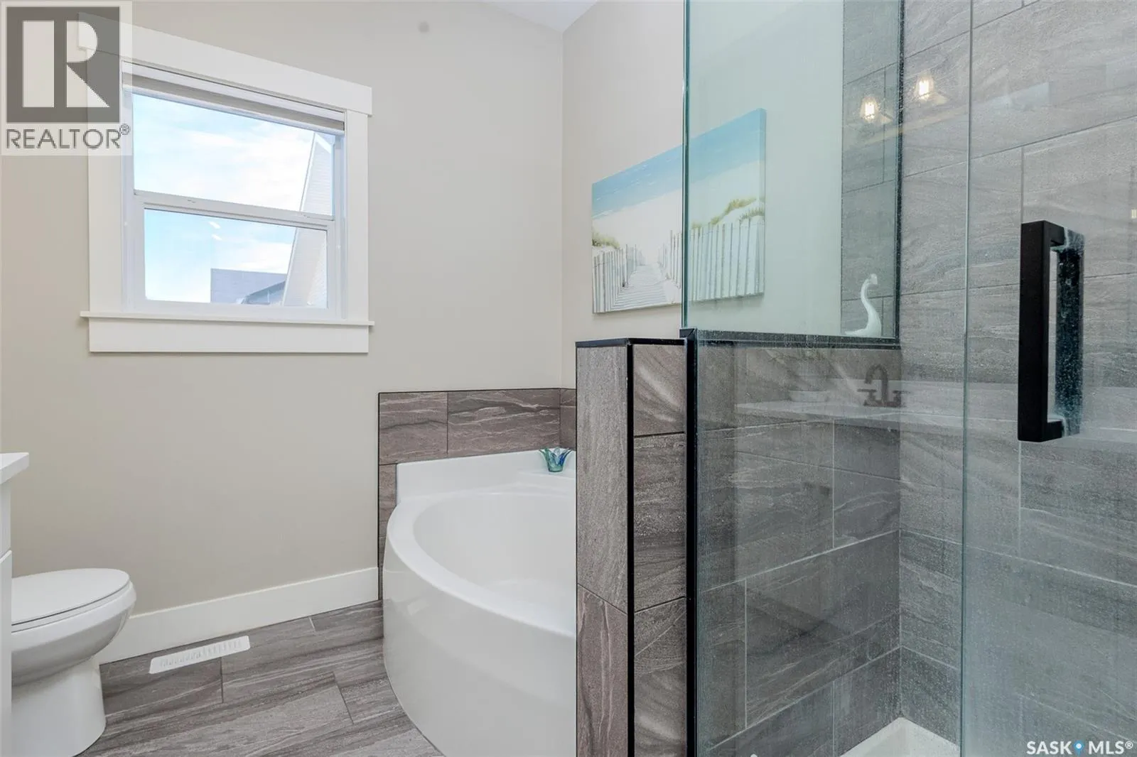 Welcome to this beautiful bievel in the growing city of Warman, offering great street appeal and a bright open layout with 9 foot ceilings and large windows that bring in plenty of natural light. Built just 5 years ago, this property already includes many of the extras that new builds often do not, including fencing, appliances, custom window coverings, and a fully finished south facing backyard so you can move in and enjoy right away. The kitchen is well laid out with quartz countertops, tiled backsplash, stainless steel appliances, built in dishwasher, microwave hood fan, double undermount sink, corner pantry, and a large eat up island over 8 feet in length, ideal for daily use and entertaining. The primary bedroom offers a comfortable retreat with a walk in closet and a spacious 5 piece ensuite featuring a soaker tub, separate tiled shower, dual sinks with quartz countertops, and ceramic tile flooring. The main floor also includes two additional bedrooms and a second full bathroom with quartz countertops and ample counter space, providing flexibility for family, guests, or a home office. The double attached garage features over 10 foot 6 inch ceilings, allowing for excellent storage options. The backyard is fully finished with vinyl fencing, deck, patio with covered gazebo, and perennial flower beds, creating a great space to relax or host. The basement is insulated and polyed with large windows and is ready for future development. With strong curb appeal, a functional layout, modern finishes, and a great location in Warman, this home presents a solid opportunity. Call your Realtor today to book your private showing! (id:27476)