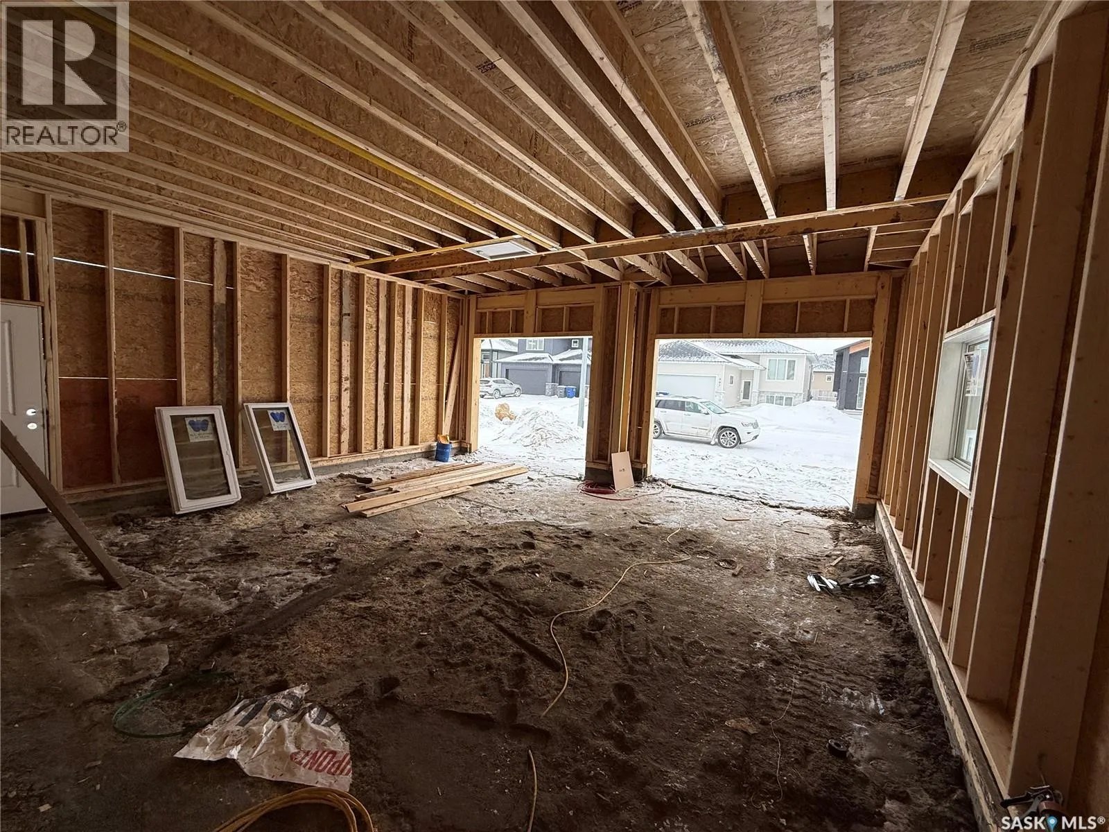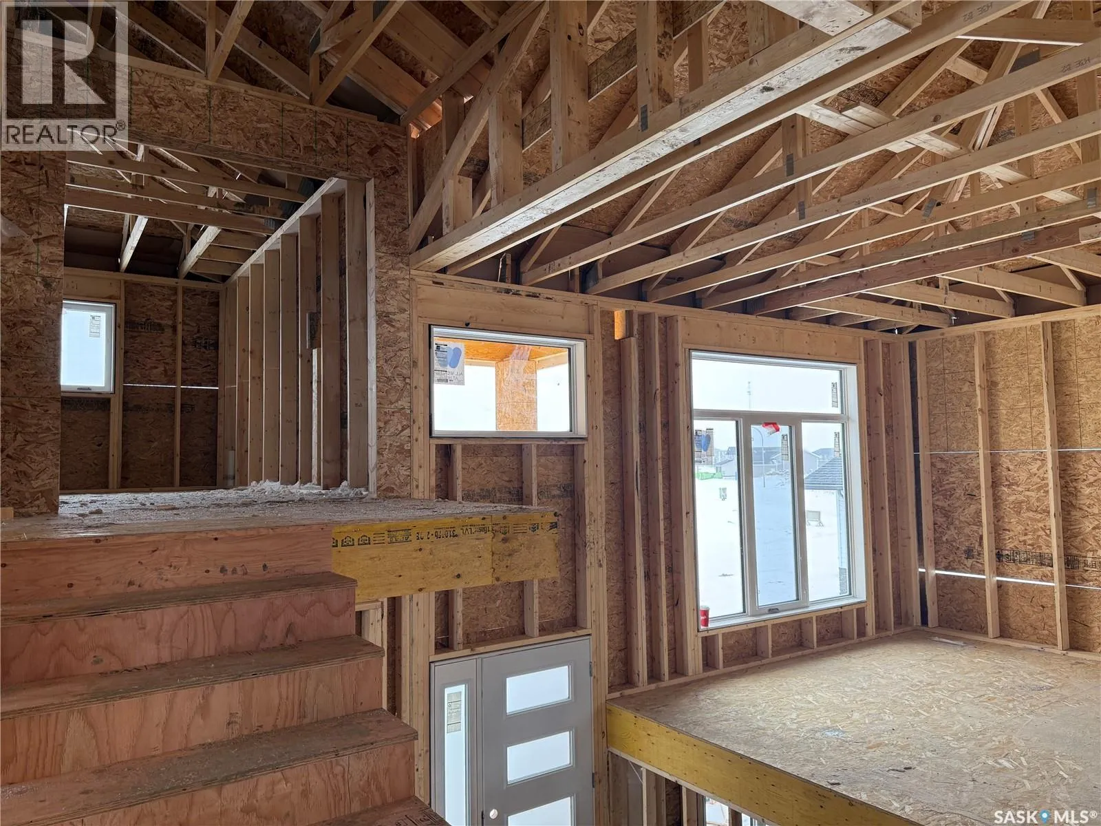 Just Framed. This brand new modified bi-level by Taj Homes is going to be a stunner. Ideally located in The Legends Neighbourhood of Warman, this location has it all - close to parks, amenities and quick access to saskatoon. The list of upgrades is long and include a spacious insulated double garage, oversized triple pane ALL WEATHER windows, Taiga Curate LVP throughout the home and $1500 lighting credit so you can design your new home. Quartz countertops, Tall 10ft ceilings throughout the main floor with 9ft basement, ceiling height cabinetry, and a double car concrete driveway are just some of the notable items. The main floor features 2 bedrooms, a full 4 piece bathroom, a dedicated bright laundry room and an open concept kitchen/dining/living space with numerous large windows. Upstairs you'll be greeted by large double doors as you enter the primary bedroom complete with a walk-in closet, spacious 5 pc ensuite bathroom and with that south facing sunlight. You'll continue to be impressed by the large, bright basement family room which is open to development (contact for basement pricing). Some notable features include a on demand water heater, energy efficient furnace, All Weather Triple Pane windows, full set of stainless steel appliances, black trims and fixtures and Progressive New Home Warranty. Currently under construction, this home comes with a guaranteed possession date so you can plan your move with confidenceâno delays, no surprises. Possible May-June possession. Come today and customize your new home by selecting from a range of color palettes and finishes to match your personal style. NOTE FRONT ELEVATION PICTURE IS AI GENERATED, FINAL COLOUR MAY VARY. (id:27476)
