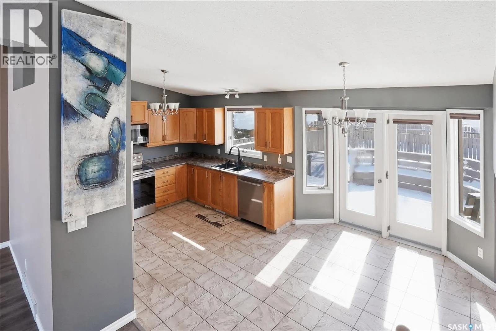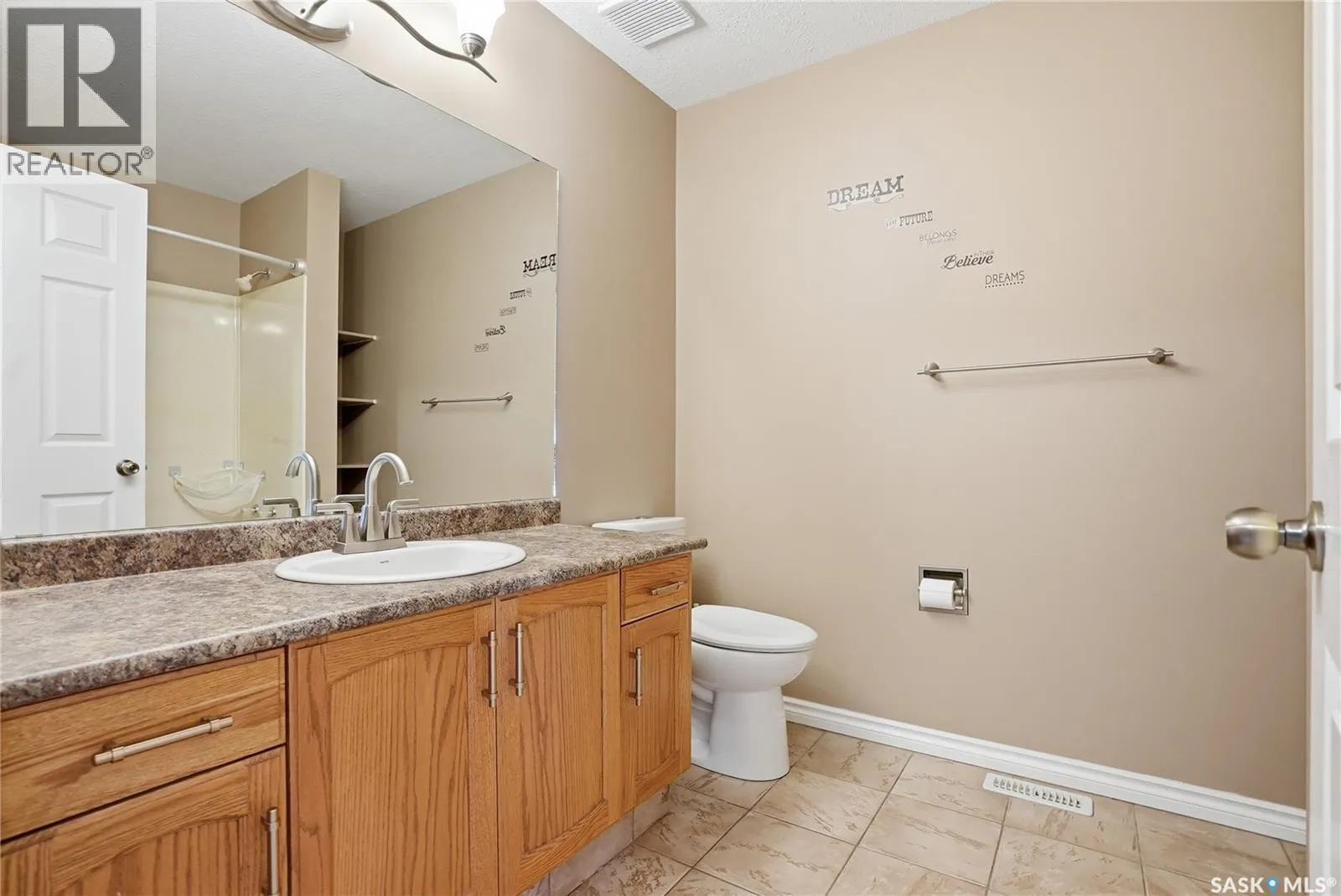 Great family home in the heart of Warman, just steps to schools and parks, this 4 level split offers a classic layout with plenty of room for entertaining and family life. The main floor features a spacious living room overlooking the front yard, well-equipped kitchen with stainless appliances and dining space. Upstairs are 2 good sized bedrooms including the primary bedroom with a 3pc ensuite. Off the kitchen you'll find the family room with a cozy gas fireplace, as well as the 3rd bedroom and convenient 3pc bath. The basement provides even more living space with a rec room, perfect for a kids play area or work out room, as well as laundry and storage. The front attached garage and double driveway provide plenty of parking, while the sunny south-facing backyard will give you lots of room to BBQ, garden or play. Enjoy everything this home offers in the fast-growing city of Warman! (id:27476)