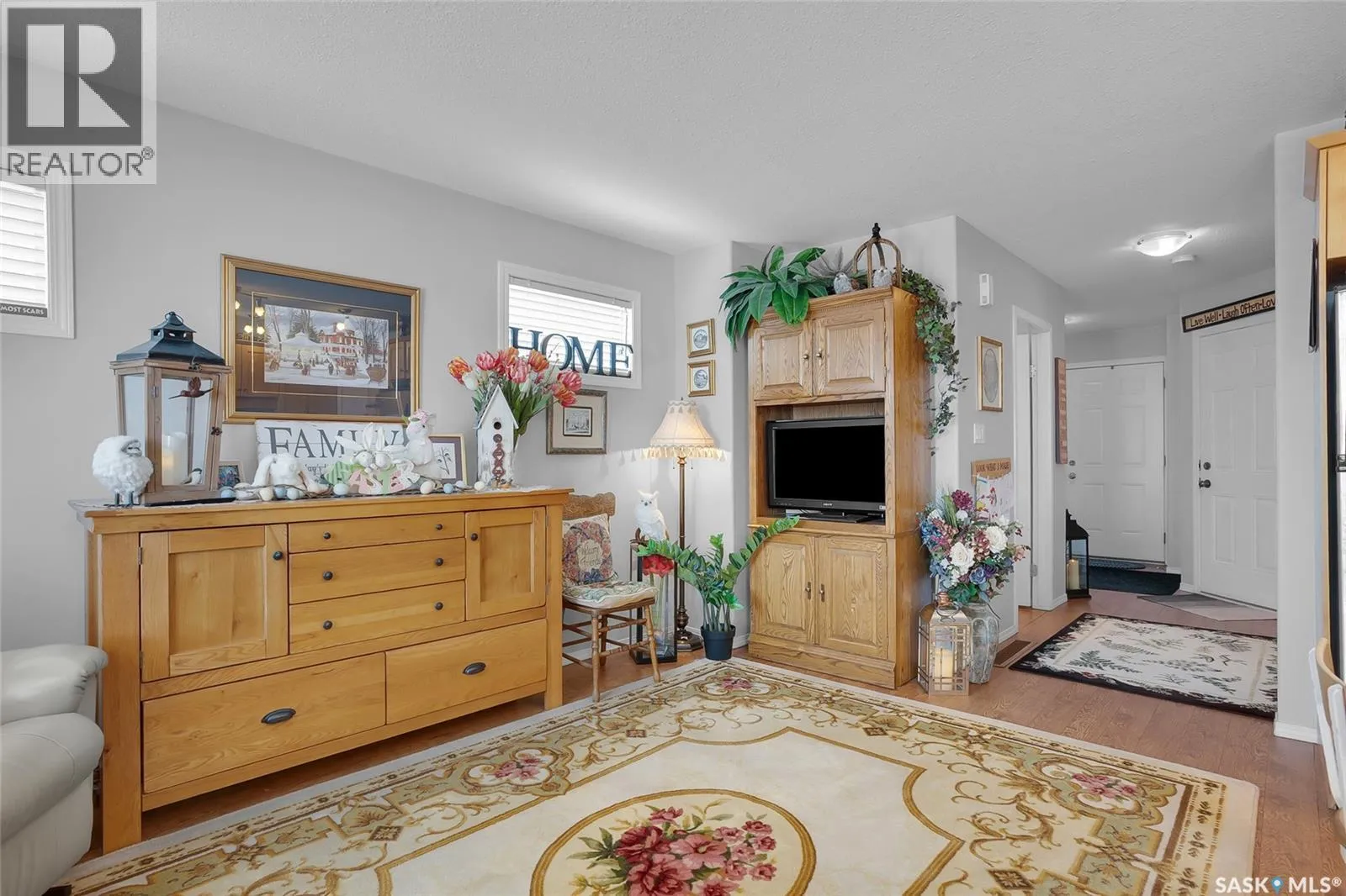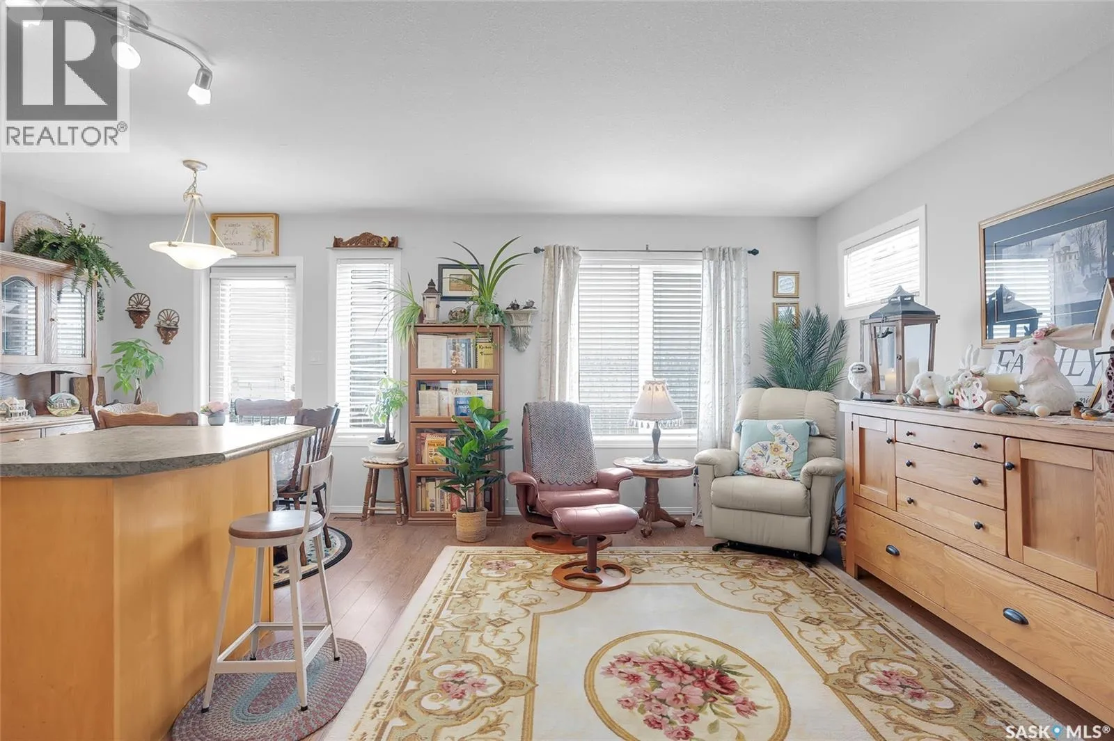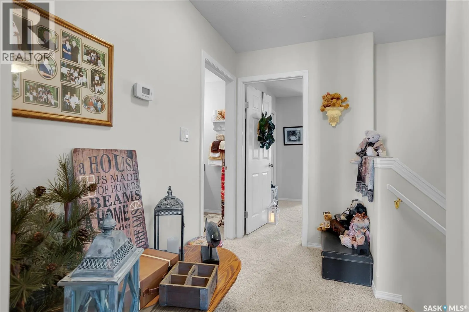 This charming 1,284 sq ft two storey home is the one youâve been waiting for. Perfectly nestled on the sunny south end of Warman with quick access to all the amenities your busy family needs, this home truly shows like a 10. The south facing exposure means natural light pours in all day long. The open main floor is warm and inviting, featuring a maple kitchen with island, laminate flooring, and a generous dining and living area made for family memories. Upstairs, three spacious bedrooms await, including a smart Jack and Jill bathroom connecting seamlessly to the primary suite. Functional and perfectly laid out for a busy household! The fully developed basement delivers even more living space with a large family room, 4-piece bath, and laundry. Outside, the fully fenced private yard is ready for pets, kids, and lazy summer evenings. The insulated single attached garage with direct entry makes those cold Saskatchewan mornings so much easier, and youâll love having your own dedicated parking in front plus extra visitor parking steps to the west of the home. Pets allowed with approval. Self managed and well run complex. This home is well cared for inside and out and is truly move in ready. (id:27476)