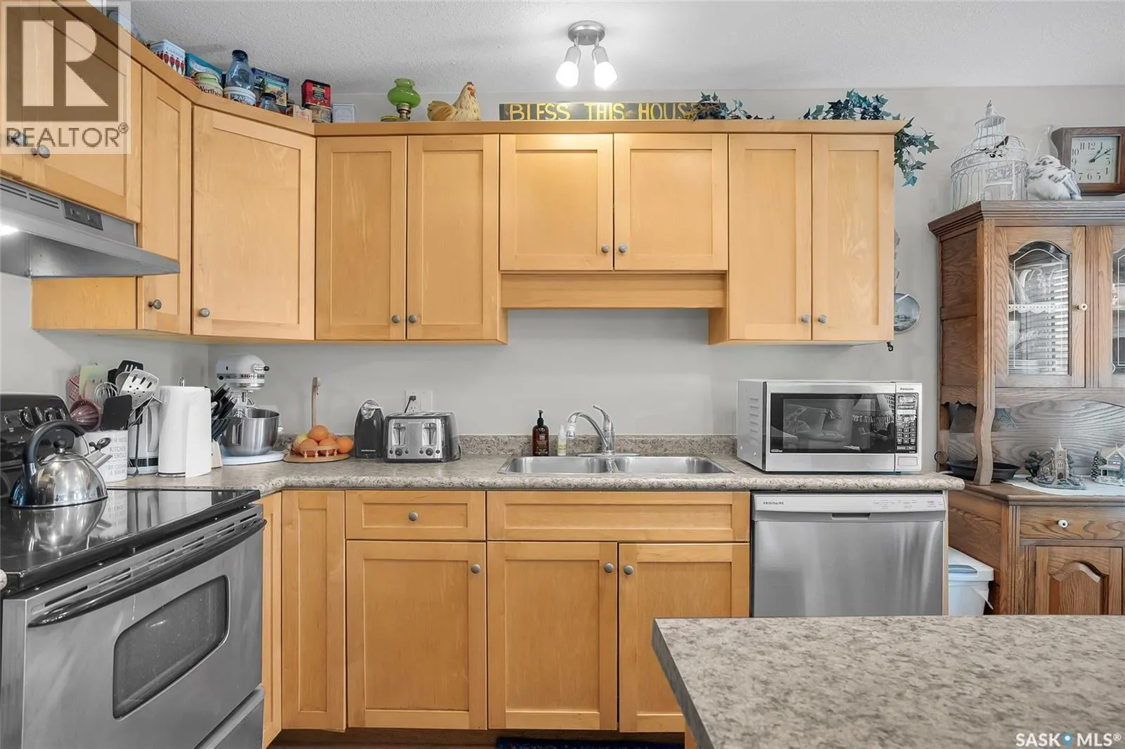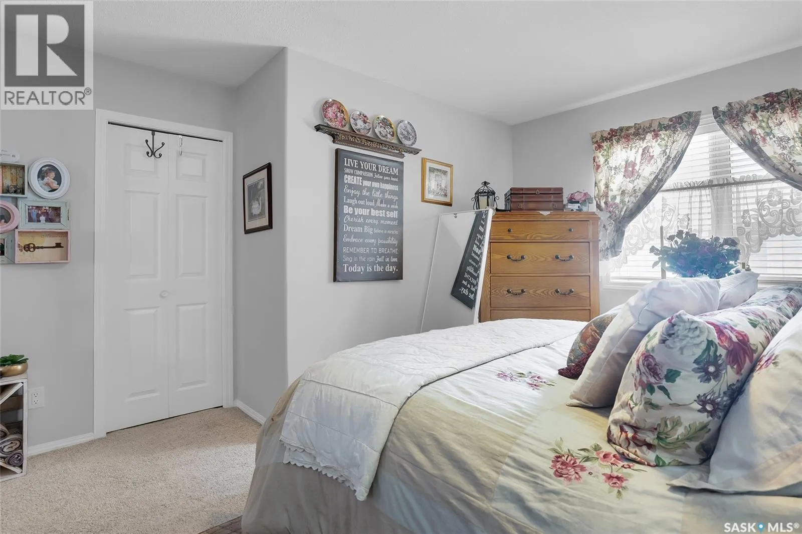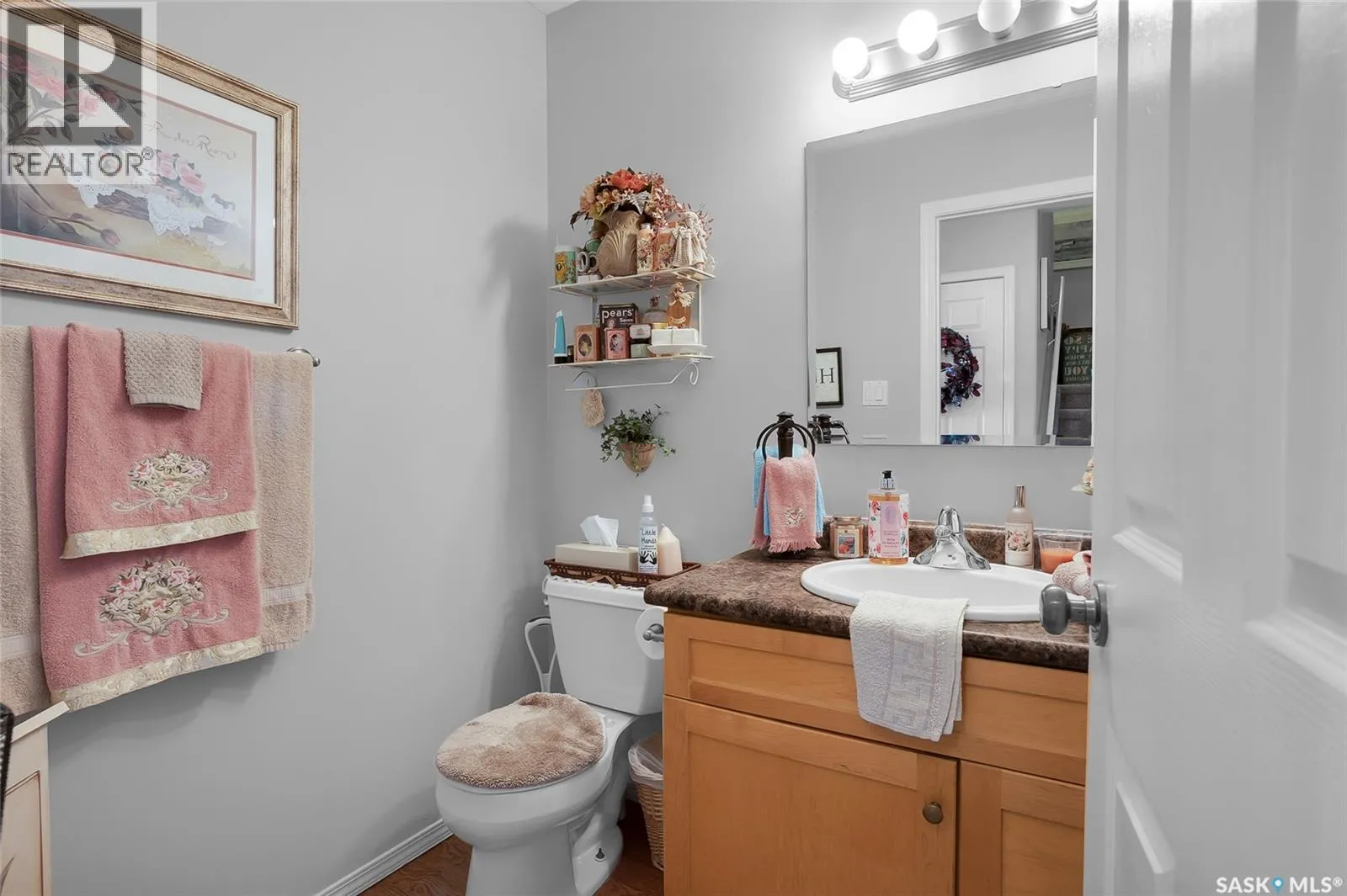 This charming 1,284 sq ft two storey home is the one youâve been waiting for. Perfectly nestled on the sunny south end of Warman with quick access to all the amenities your busy family needs, this home truly shows like a 10. The south facing exposure means natural light pours in all day long. The open main floor is warm and inviting, featuring a maple kitchen with island, laminate flooring, and a generous dining and living area made for family memories. Upstairs, three spacious bedrooms await, including a smart Jack and Jill bathroom connecting seamlessly to the primary suite. Functional and perfectly laid out for a busy household! The fully developed basement delivers even more living space with a large family room, 4-piece bath, and laundry. Outside, the fully fenced private yard is ready for pets, kids, and lazy summer evenings. The insulated single attached garage with direct entry makes those cold Saskatchewan mornings so much easier, and youâll love having your own dedicated parking in front plus extra visitor parking steps to the west of the home. Pets allowed with approval. Self managed and well run complex. This home is well cared for inside and out and is truly move in ready. (id:27476)