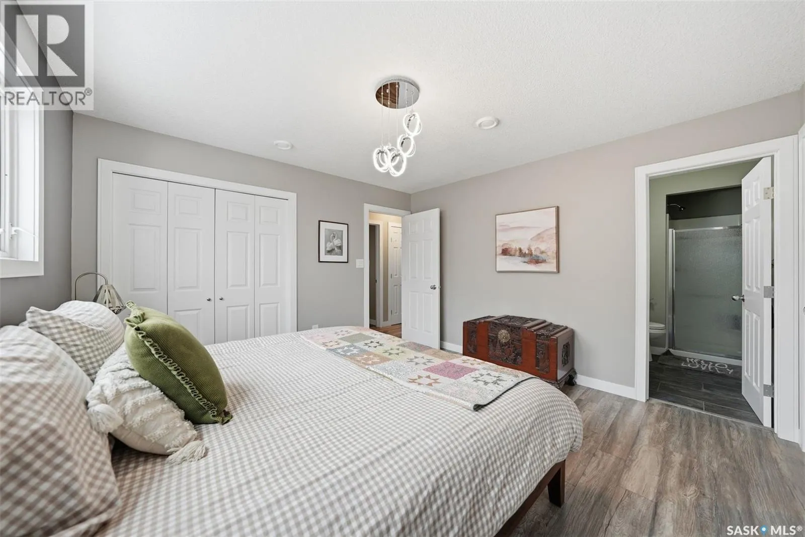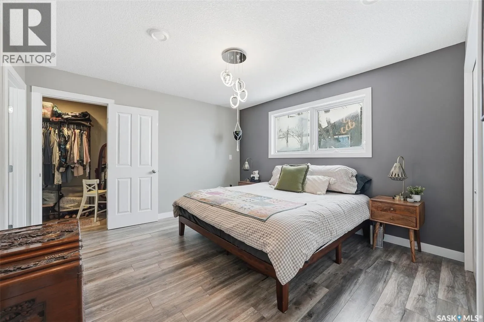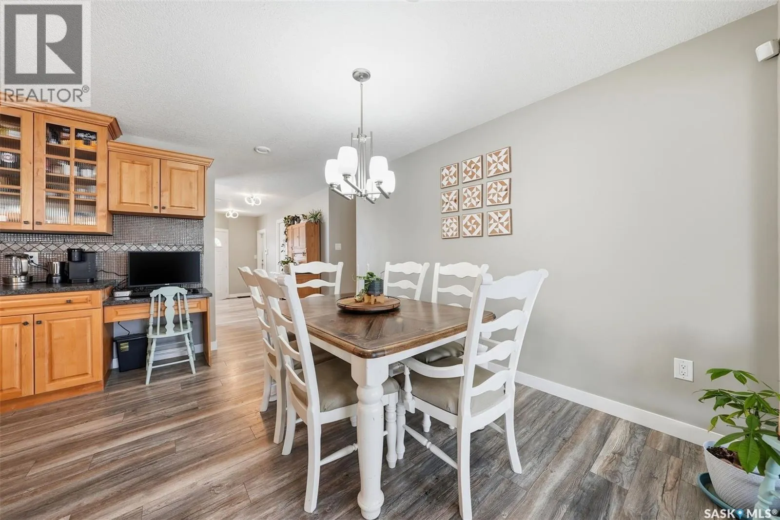 This sprawling bungalow ideally located in the busy town of Watrous has tons of updates! As you step in the front door, you'll notice the huge living room to the right, or the dining area with garden doors to the covered deck straight ahead. Huge north facing living room window offers tons of natural light with street view. Dining area flows into the kitchen, overlooking the back yard. Custom maple cabinetry offers tons of work space and storage, ideal for everyday family meals or entertaining. Down the hall you'll find the updated main bathroom with tile floor, the primary suite with 3 pc bath, walk in closet and bonus closet, and 2 more bedrooms. Vinyl plank flooring throughout the main floor along with updated doors, trims, and lighting make this a clean, bright space. Completing the main floor is the laundry/mud room. Basement is completely finished with family room area, games area, wet bar, hot tub (not in use), 3 pc bath, another bedroom and utility/storage. Front entry also accesses the full double garage with storage area and in floor heat. The covered/screened deck overlooks the fenced back yard, and is perfect for outdoor enjoyment - rain or shine! Mature yard has a firepit, garden area, fruit trees and a shed. Pathway access to 12th Ave (and sportsgrounds/swimming pool beyond) is adjacent to the house.Watrous is just a few minutes from the resort villag eof Manitou Beach, 1 hour to Saskatoon, and under 2 hours to Regina. It is also within 30 minutes of 3 potash mines, and 45 min to BHP Jansen. This town has full services, including a schools, rec facilities, health care, shopping, churches, restaurants/bars, and more. Call today to book your private viewing! (id:27476)