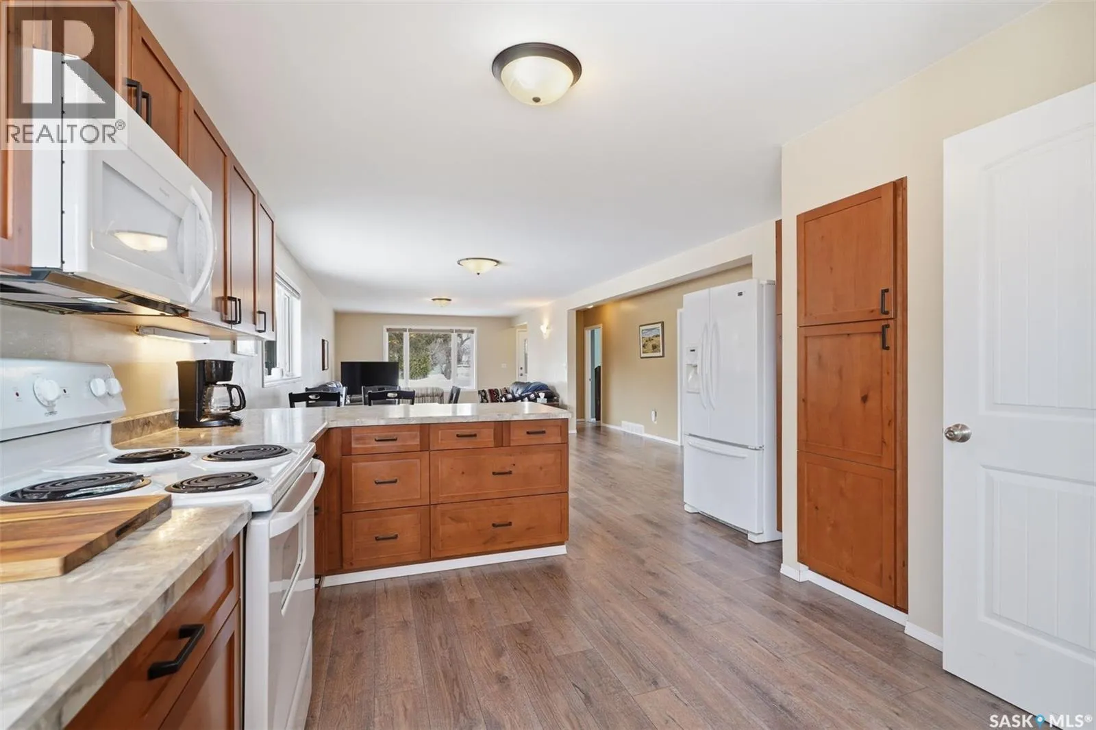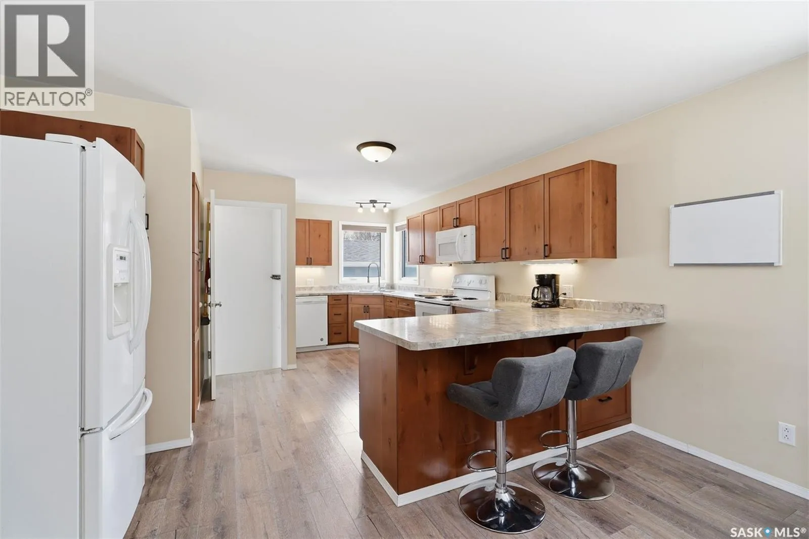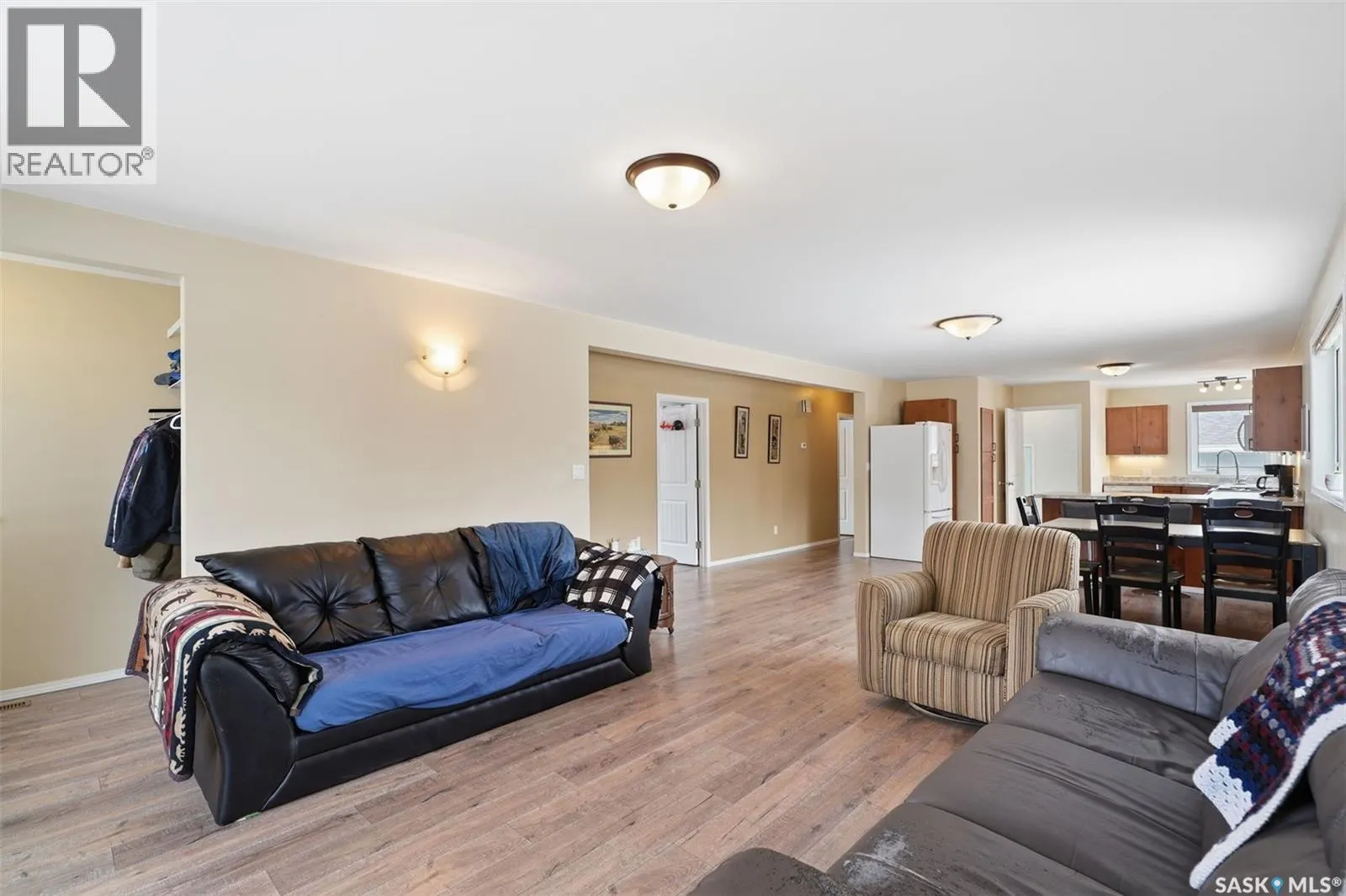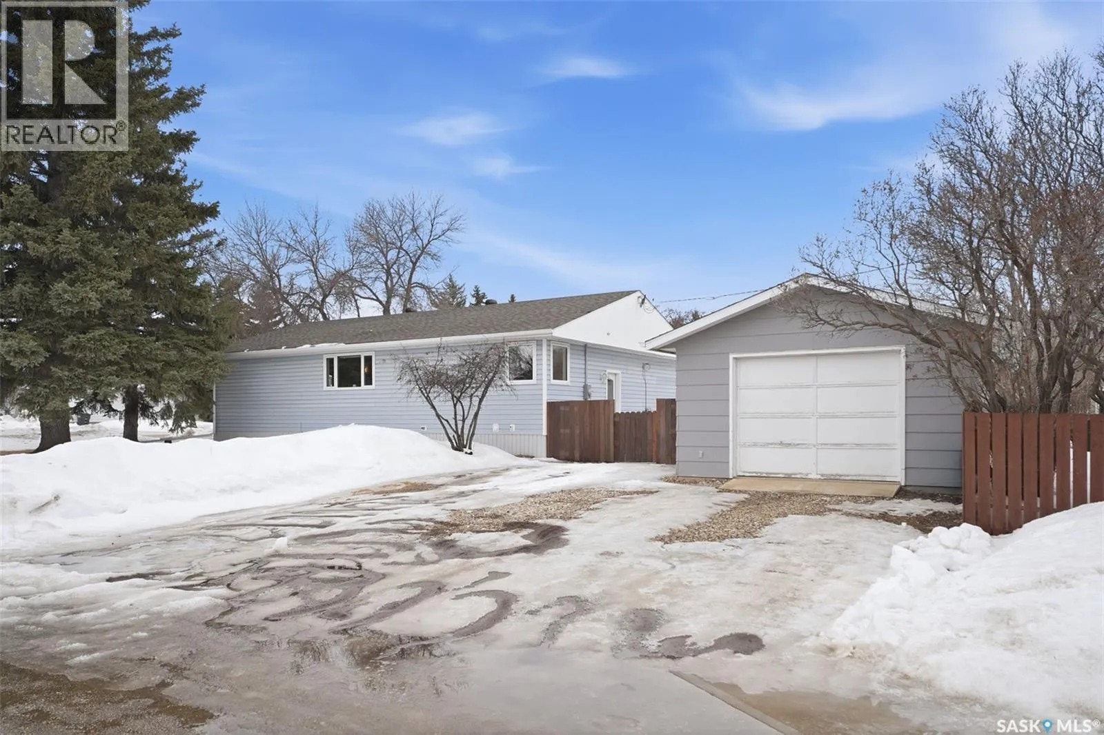 Check out this roomy bungalow in the busy town of Watrous! Continuously updated, this home is move in ready. As you step in the front door, you'll notice the huge open living room/dining room/kitchen. The updated flooring is vinyl plank, kitchen has tons of cupboards providing great workspace and lots of storage whether you're whipping up family meals or tasty snacks for entertaining. 2 good sized bedrooms with a 2 pc ensuite off the primary and a full main bath with floor heat complete the main floor. Downstairs you'll find a fully finished basement with an enormous family room, 3 (!) more bedrooms, a full bath with tub and shower, laundry room, and utility room. HE furnace, central air, abd a new water heater in 2025 provide comfort year round. Step outside to the fully fenced yard to enjoy the hot tub. A 16 x 26 detached garage is insulated and heated with a portable heater. Watrous is cenrally located in the province, and is just minutes from the resort village of Manitou Beach. 3 potash mines are within 30 minutes, BHP Jansen is 45 min away. Town has elementary and high schools, hospital/long term care center, rec facilites, retail and more. Call today for your private viewing! (id:27476)