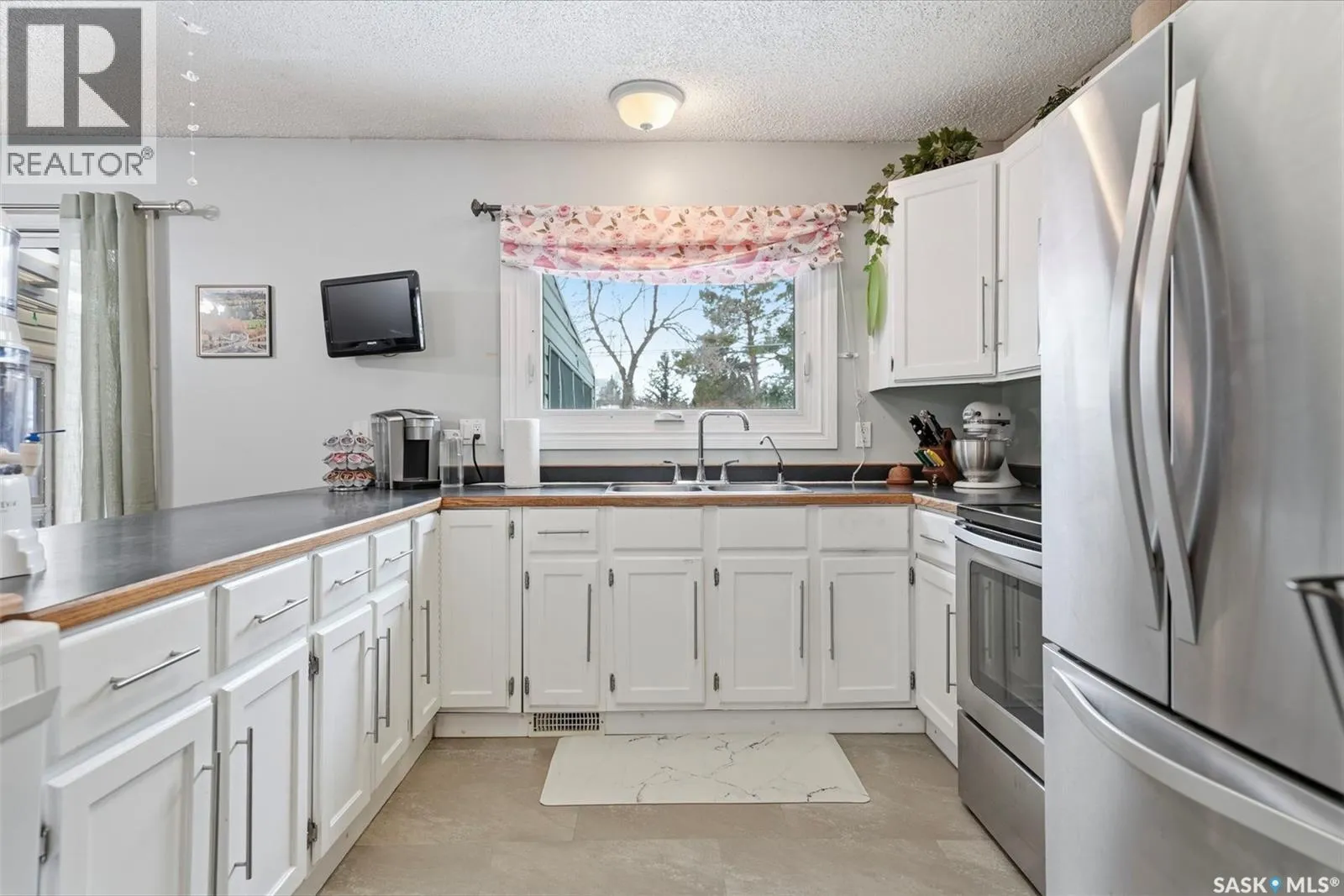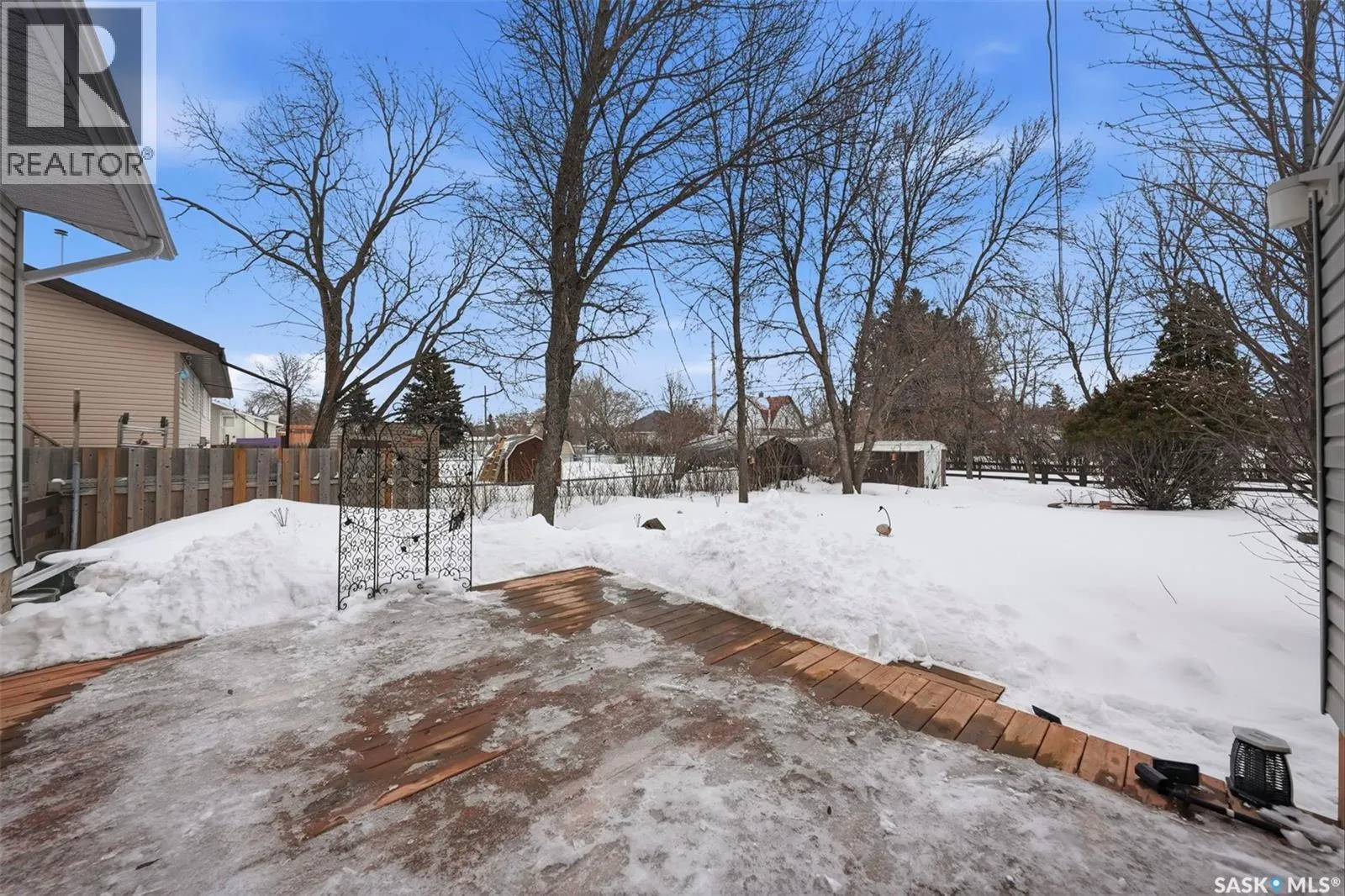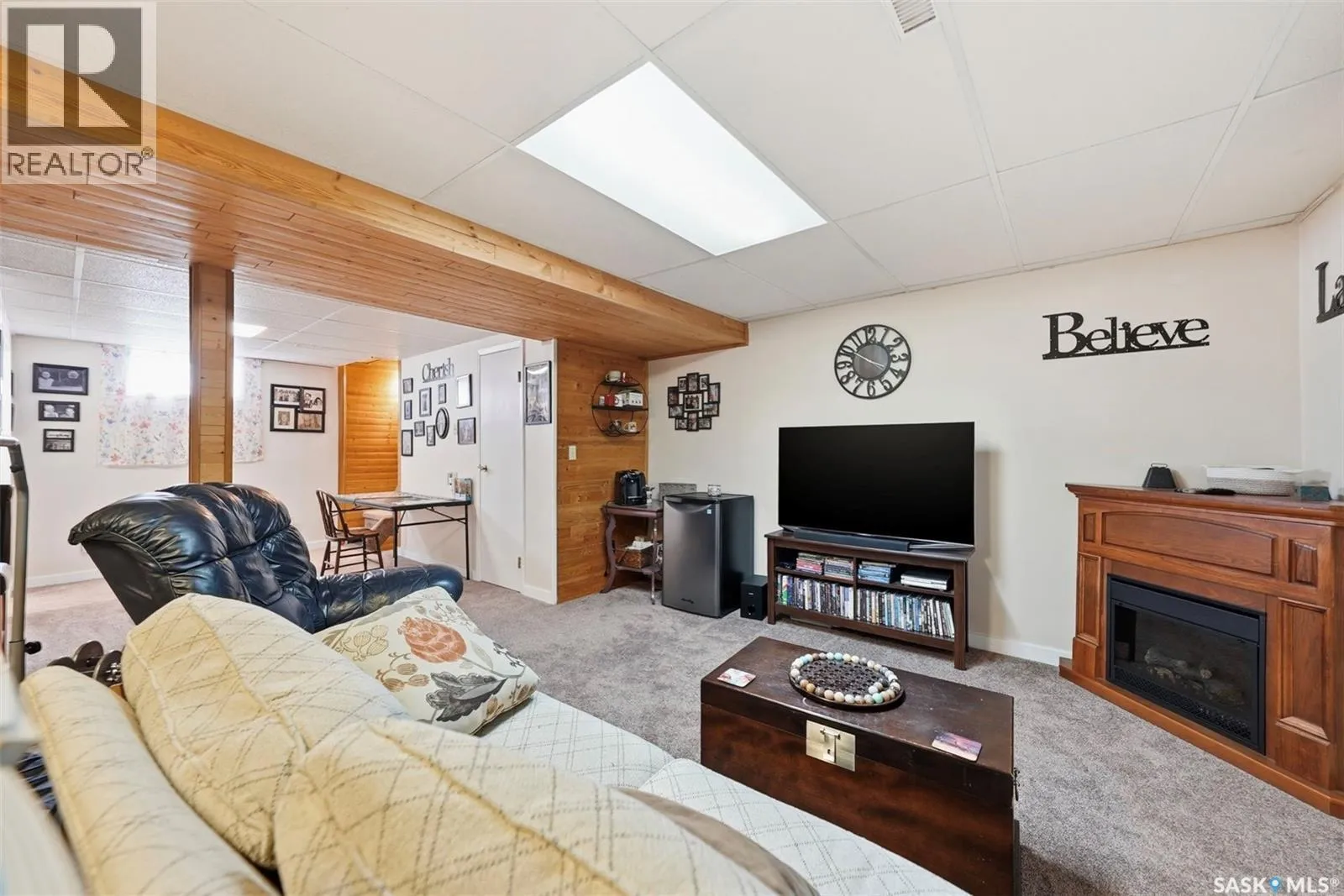 Pride of ownership! This 1232 sq ft bungalow sits on a 75 x140 ft corner lot in the busy town of Watrous, just 5 minutes from the Resort Village of Manitou Beach and within 30 minutes of 3 potash mines. Main floor is bright and open. Kitchen/dining area has tons of workspace and updated stainless appliances. Huge living room with bay window allows tons of natural light. 3 bedrooms with a 4 piece main bath and a 2pc bath off the primary bedroom. Off the dining room, enjoy a 12'-0" by 14'-0" screened sunroom over looking the well maintained yard and garden, which accesses the newer deck, perfect for the bbq. The basement boasts a family room, 4th bedroom with access to 3 pc bath with updated shower, a den, utility/storage room and a laundry room. The over sized single attached garage provides mud room access to the home. Fenced yard has mature landscaping, with RV/extra parking at the alley. There's plenty of room for another garage or workshop. Updates in the home include upstairs windows (2008), HE furnace (2008), water heater (2017), vinyl siding (2012), Air Conditioner (2025),brand new shingles July 2023. Watrous has all services and is just over 1 hr from Saskatoon. Call your REALTOR® to view this immaculate home today! (id:27476)