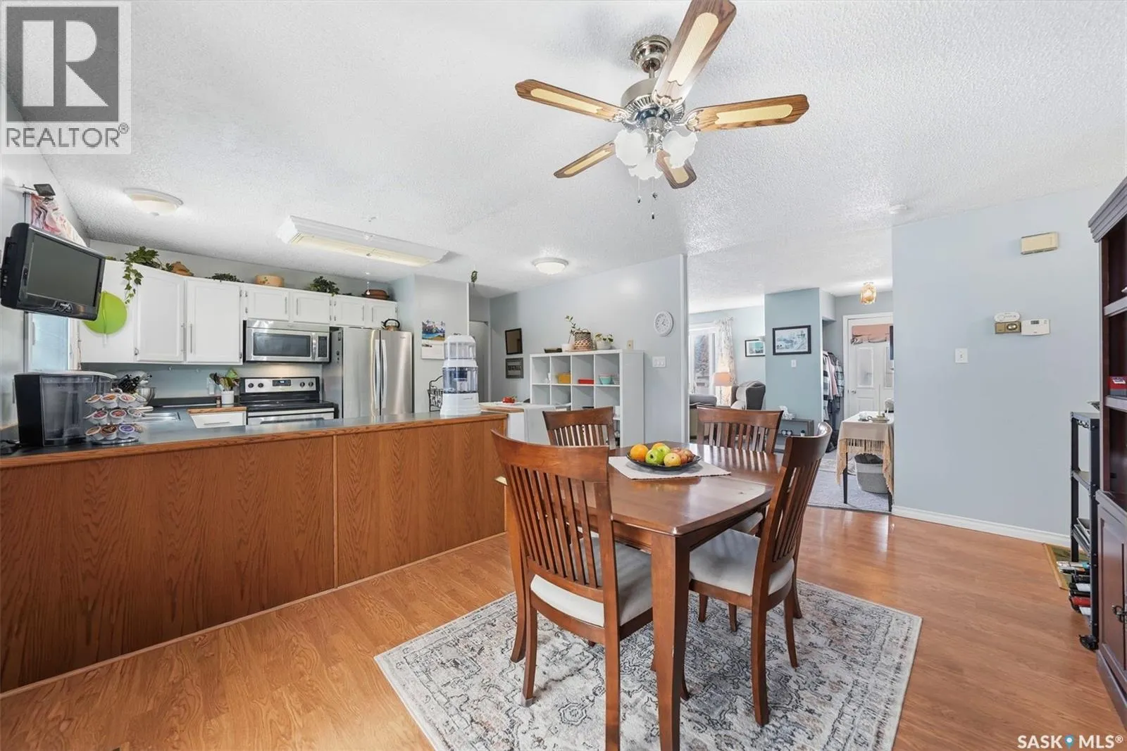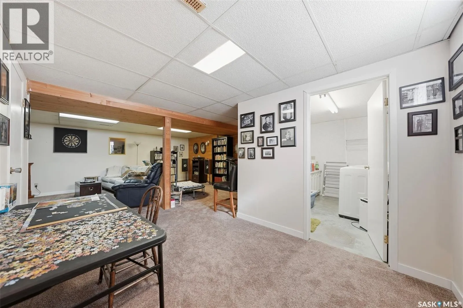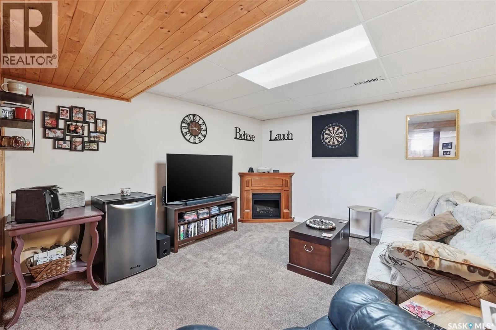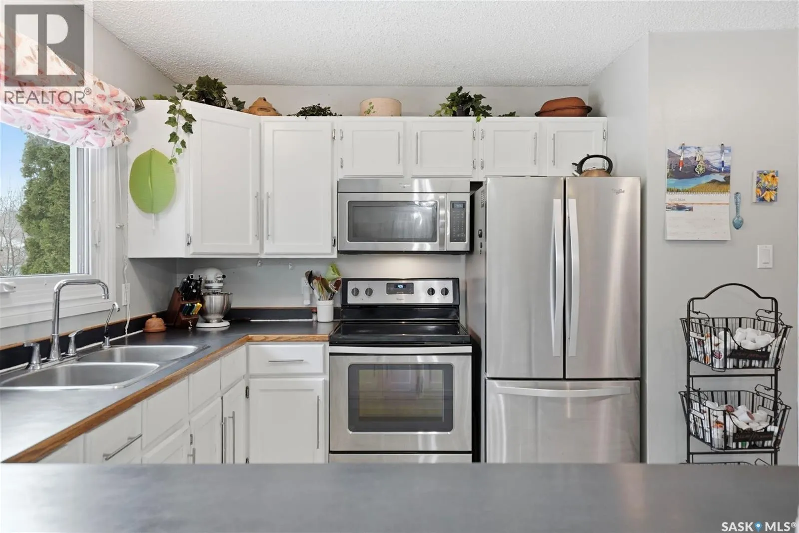 Pride of ownership! This 1232 sq ft bungalow sits on a 75 x140 ft corner lot in the busy town of Watrous, just 5 minutes from the Resort Village of Manitou Beach and within 30 minutes of 3 potash mines. Main floor is bright and open. Kitchen/dining area has tons of workspace and updated stainless appliances. Huge living room with bay window allows tons of natural light. 3 bedrooms with a 4 piece main bath and a 2pc bath off the primary bedroom. Off the dining room, enjoy a 12'-0" by 14'-0" screened sunroom over looking the well maintained yard and garden, which accesses the newer deck, perfect for the bbq. The basement boasts a family room, 4th bedroom with access to 3 pc bath with updated shower, a den, utility/storage room and a laundry room. The over sized single attached garage provides mud room access to the home. Fenced yard has mature landscaping, with RV/extra parking at the alley. There's plenty of room for another garage or workshop. Updates in the home include upstairs windows (2008), HE furnace (2008), water heater (2017), vinyl siding (2012), Air Conditioner (2025),brand new shingles July 2023. Watrous has all services and is just over 1 hr from Saskatoon. Call your REALTOR® to view this immaculate home today! (id:27476)