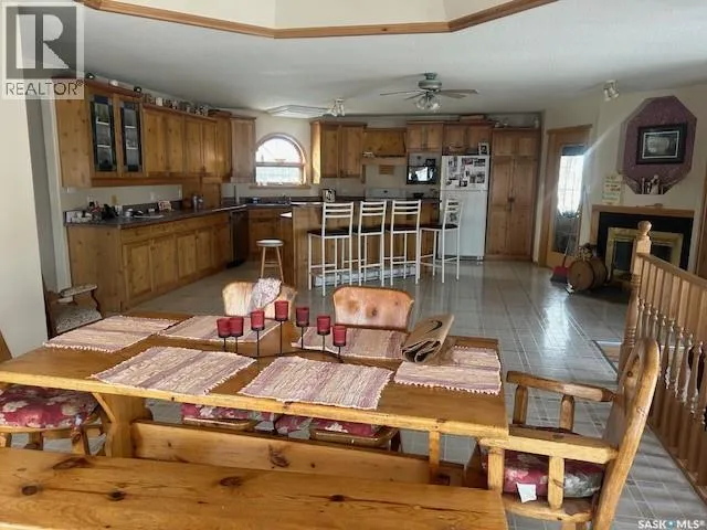 This very appealing rural home offers 1,800 sq. ft. of living space in a raised bungalow design, featuring a beautiful addition with an open kitchen and dining room highlighted by a cozy wood-burning fireplace. The main floor includes three bedrooms, a four-piece bathroom, and a convenient two-piece bathroom combined with a laundry area. The bright living room features garden doors leading to a brand-new 25â x 13â deck â perfect for outdoor enjoyment and entertaining. The partial basement provides a large family room with a wood stove, a fourth bedroom, and a three-piece bathroom. Additional spaces include a dedicated wood storage room with access through a basement window, a furnace room with propane furnace, a utility room with pump and water tank, and an extra storage room, offering excellent functionality and storage throughout the home.The sewer system and shingles were both updated in 2022 adding peace of mind for future owners. This listing also includes two quarters of very good farmland, currently being fenced and used as grassland, with soil quality suitable for grain production as well. The well-developed yard features a calving barn, an over-coverall shed, a 24â x 48â open pole cattle shelter, and a small shop â making this property well suited for a mixed farming operation, grain production, and livestock, while also offering the comfort of country living. (id:27476)
