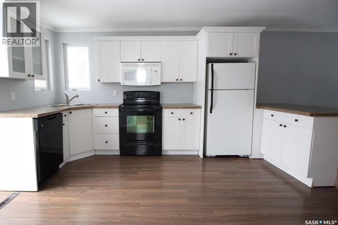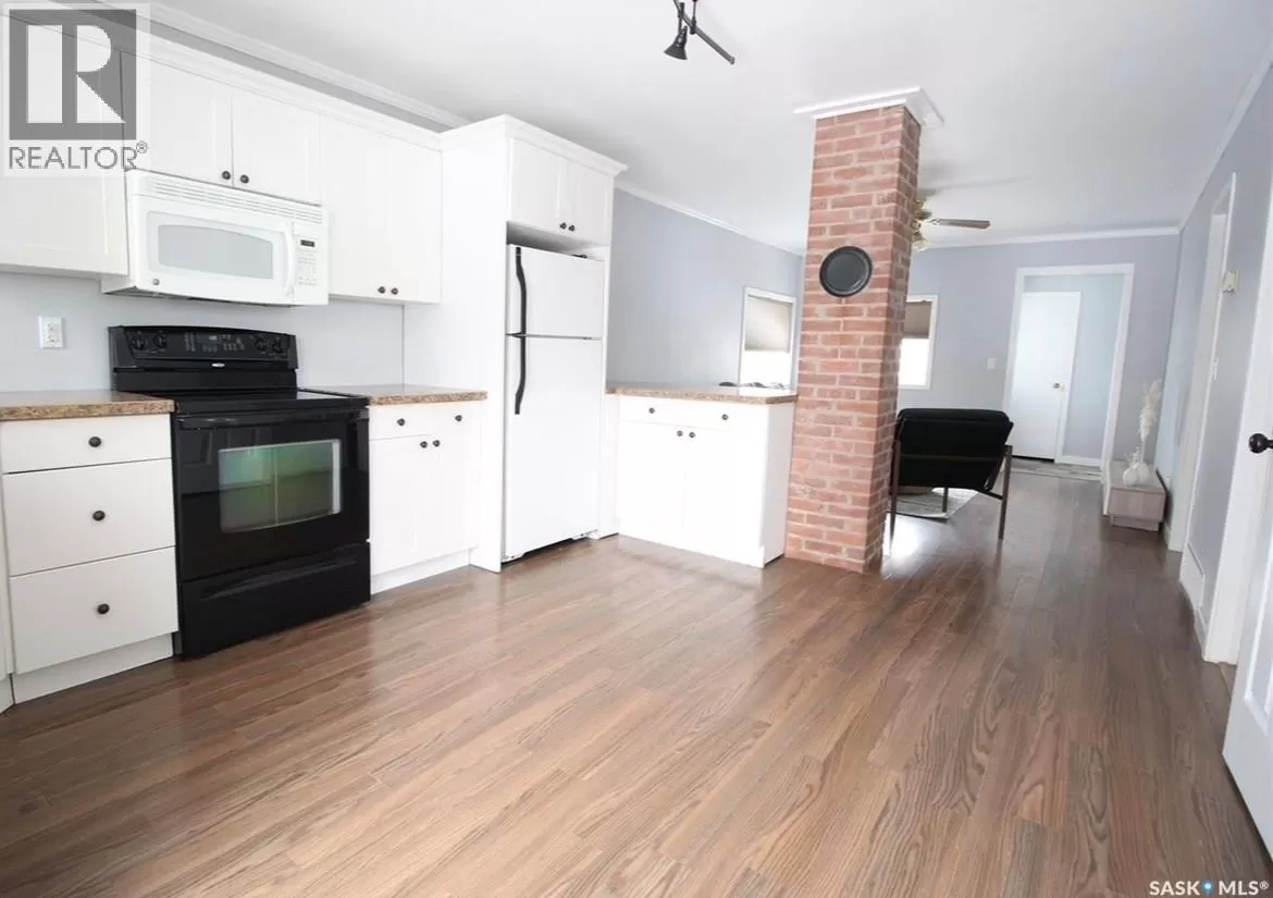 This beautifully updated bungalow offers modern comfort, a functional layout, and a fantastic location directly across from the school. Itâs the perfect blend of convenience and privacy, surrounded by mature trees and a spacious yard. The main level features a bright, spacious living room and an updated kitchen with crisp white cabinetry, a convenient eat-up island, and direct access to the oversized back deckâideal for entertaining or relaxing. You'll also find two generous bedrooms, a cozy den with a large picture window, and a beautifully tiled 4-piece bathroom. Downstairs includes a laundry room, a storage room, and a utility areaâoffering plenty of practical space. A new furnace was installed in 2023, adding to your peace of mind. Outside, the 50' x 200' yard is sure to impress. It offers incredible space for outdoor living, mature trees for natural privacy, and a large shed for extra storage. Affordable, move-in ready, and full of charmâdonât miss your opportunity to own this wonderful home. Call today to book your showing! (id:27476)
