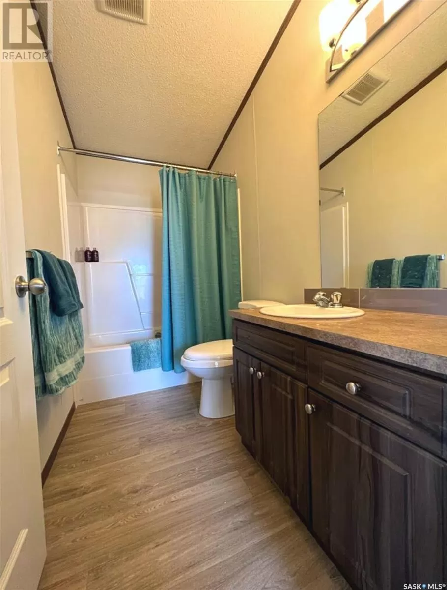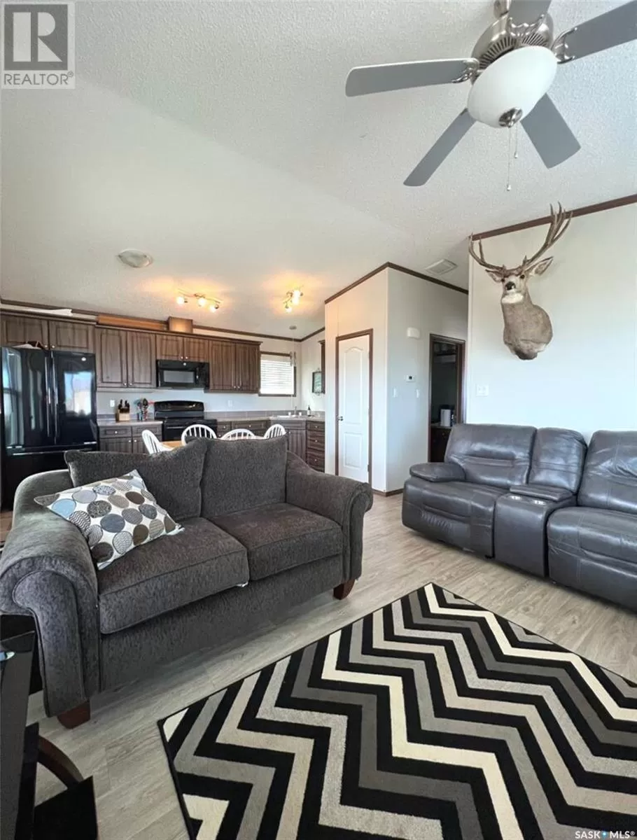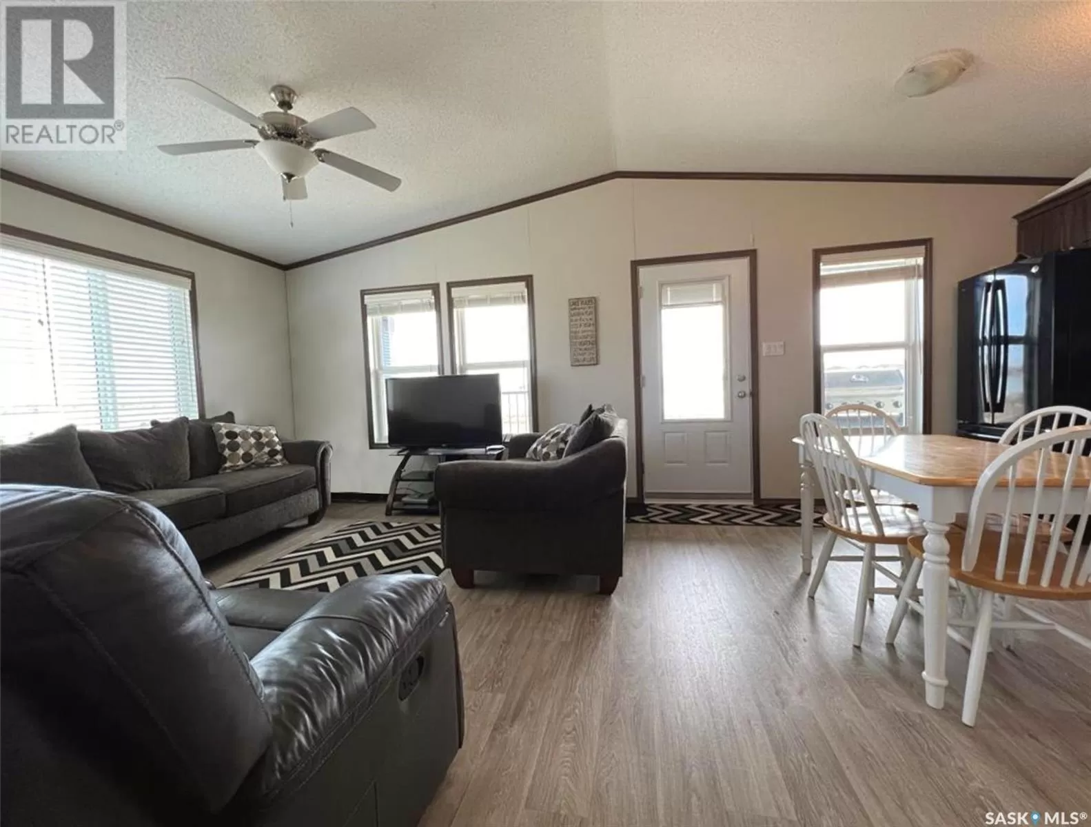 Located on a deeded, waterfront lot neighboring Ferguson Bay, this attractive 4-season 2016 modular home comes fully-furnished & includes a 110ft of dock as well as a large platform deck & stairs that lead down to the water area. The house is secured on screw piles, features 30-year Weatherwood arch shingles, premium vinyl siding, new skirting & dirt work around it, metal soffit & fascia, 100 amp power, a septic tank, & a 40 gallon electric hot water heater. Assorted young trees have been started on the property, & included is a garden shed & a 0-turn lawn mower tractor. The interior is a pleasant & friendly open concept living/dining/kitchen with beautiful natural lighting. The eat-in kitchen features PVC walnut cabinets with soft-close doors & drawers, under cabinet lighting, black appliances with a self-cleaning top-range oven, & a good-size pantry. From this area of the house you will appreciate the open view to the water below, & stepping out the front door the deck & BBQ area feels like an extension of the house, providing terrific entertaining options. Towards the back of the house you will find the 2 comfortable bedrooms with a closet as well as the 4-piece bath. The back entry comes in from the driveway & this area hosts the stacked laundry as well as space for storage & outerwear/lifejackets, etc to be neatly stored, while utilities such as the furnace & propane tank are located back here as well. The home features central air for optimal comfort in the summer months.The property also offers excess space for further development of a garage or boathouse if desired. Duncairn Dam offers excellent fishing, water sports, as well as the true southwest Saskatchewan combination of both open views and privacy for relaxed hiking and quiet days. Located only 40 minutes from Swift Current, here you get to enjoy the feeling of being tucked away on a little corner of heaven but also not far from all amenities. Call for more info or to book your own personal showing! (id:27476)