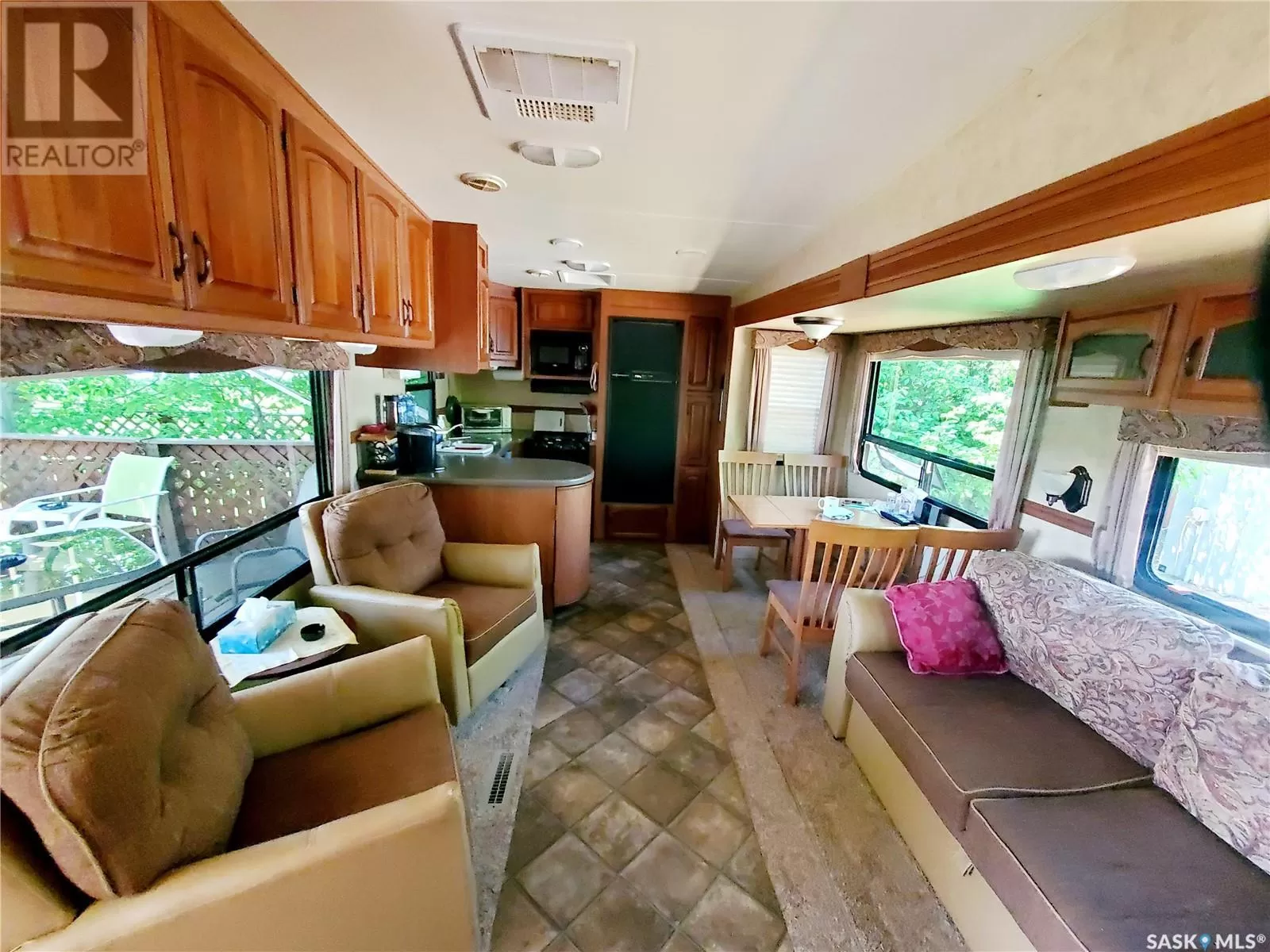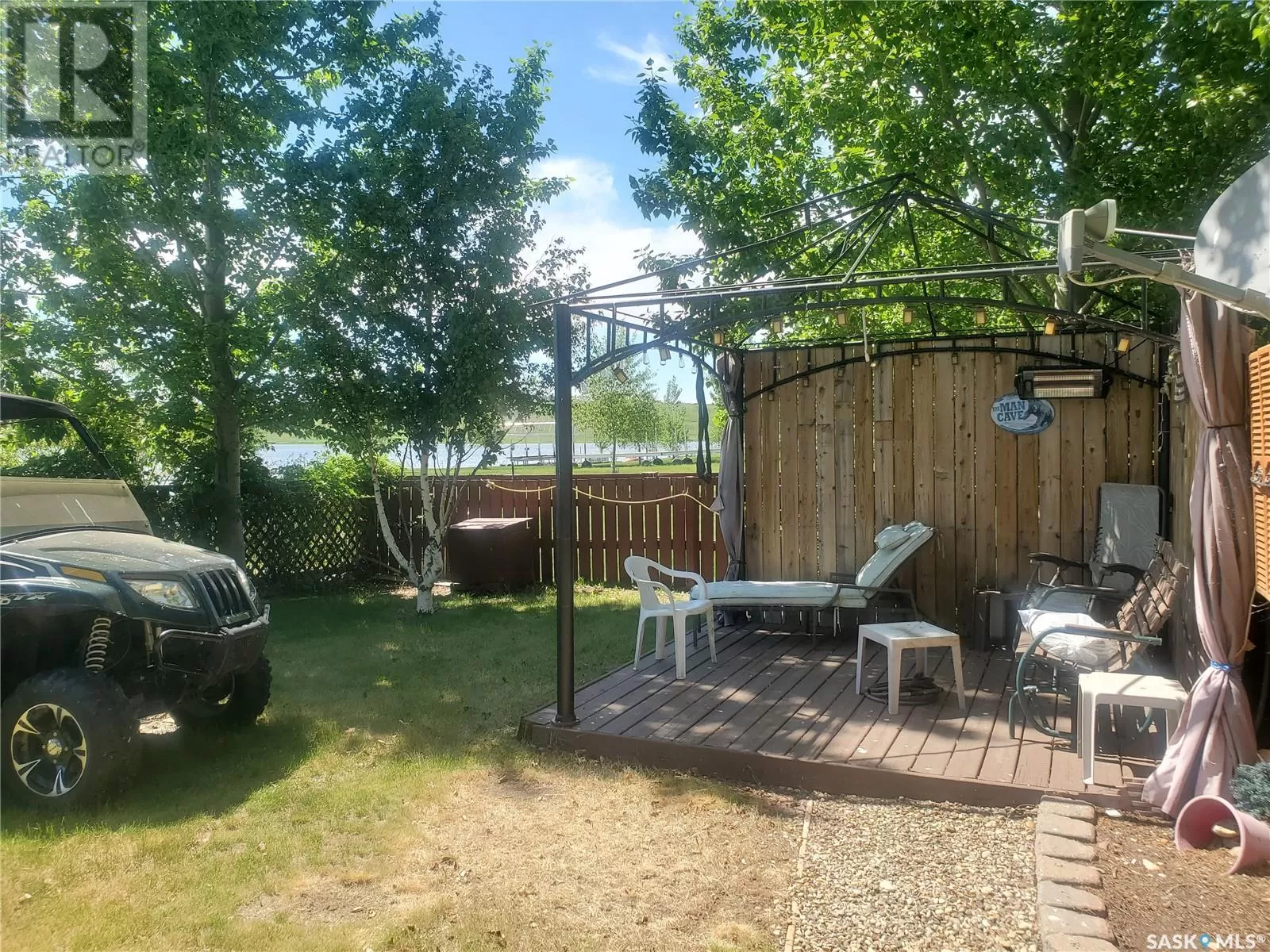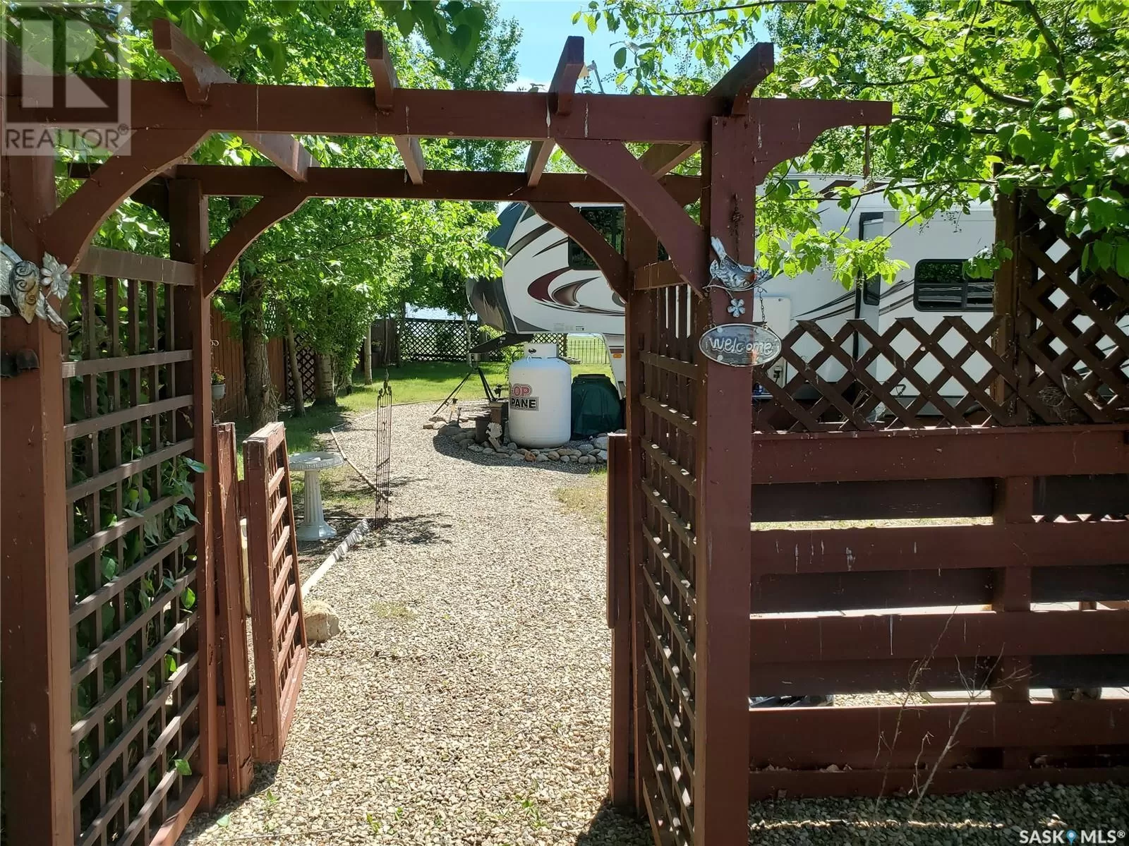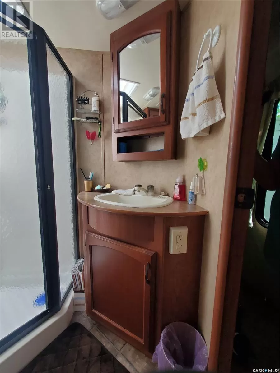 From Swift Current head West on Hwy #1 until you reach Range Road #3170 then turn South. Keep heading South and follow the signs for Rock Ridge Resort (about 15 mins). Recreational Paradise on the Shores of Reid Lake! This 32-foot 5th Wheel RV sits on a beautifully treed waterfront lot and comes fully equippedâjust bring your clothes! From the toaster and towels to the ride-on mower, everything is included. The rear kitchen layout provides generous seating inside, while the 12' x 16' deck with a gazebo is perfect for outdoor entertaining. Propane heats the trailer, with solar power as a convenient backup. Inside, you'll find rich dark cabinetry and all the comforts of home. The lakefront is shallow and safe for young swimmers, and Reid Lake is renowned for its excellent fishing. Launch your boat from the 40-foot dock and enjoy easy lake access. There's also a separate motorhome on site that sleeps 6âideal for extended family or guests. With ample parking, a garden area, and what the seller describes as âthe best neighbors around,â this turnkey getaway checks all the boxes for lakeside living! (id:27476)