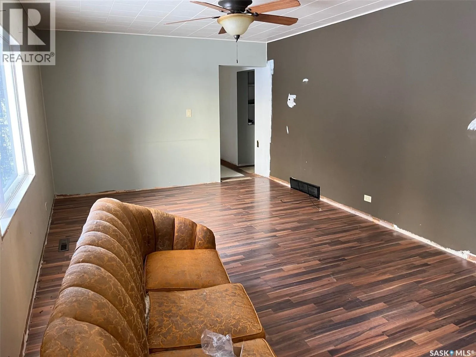 Opportunity in Tyvan! Upon entry is a large living room, kitchen, 3 bedrooms, 4pc Bath and Den. The basement is unfinished. Large back yard space. 2 Car Detached Garage. Plenty of parking. Some updates have been done over the years. House frontage sits further back from the Highway so there is more space for quiet and privacy. (id:27476)