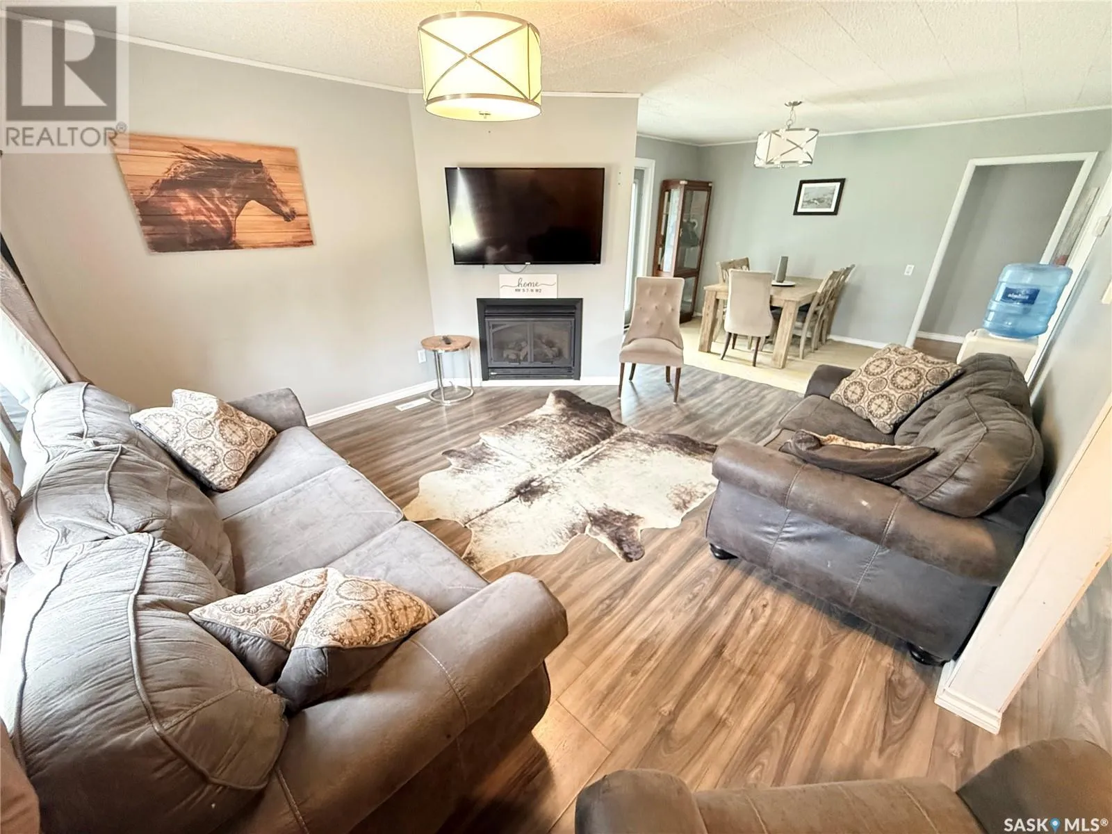 Just 5 miles south of Weyburn, right off the highway, this rare 20-acre property offers the perfect blend of country charm and convenience. The yard site is absolutely stunning, surrounded by mature trees that provide beauty and privacy year-round. Enjoy plenty of space for hobbies and storage with a double detached garage and large shop. The home features city water, vinyl siding, a durable metal roof, and many upgraded PVC windows. Inside, youâll find a generous entrance, convenient main floor laundry, 3 bedrooms, and a spacious 4-piece bathroom. The dining room leads to a beautiful front deck, ideal for relaxing or entertaining. A cozy gas fireplace adds warmth to the living space, while the basement offers tonnes of storage potential. Acreages like this, in such a prime location, donât come along oftenâdonât miss your chance! (id:27476)