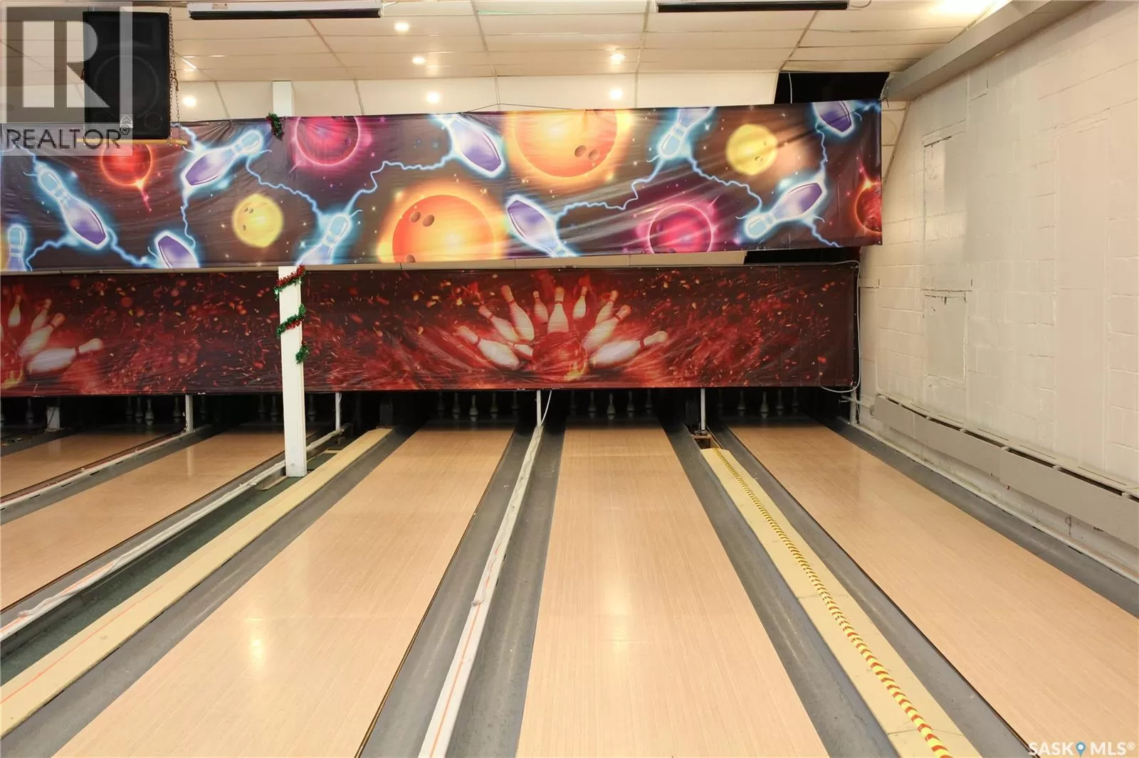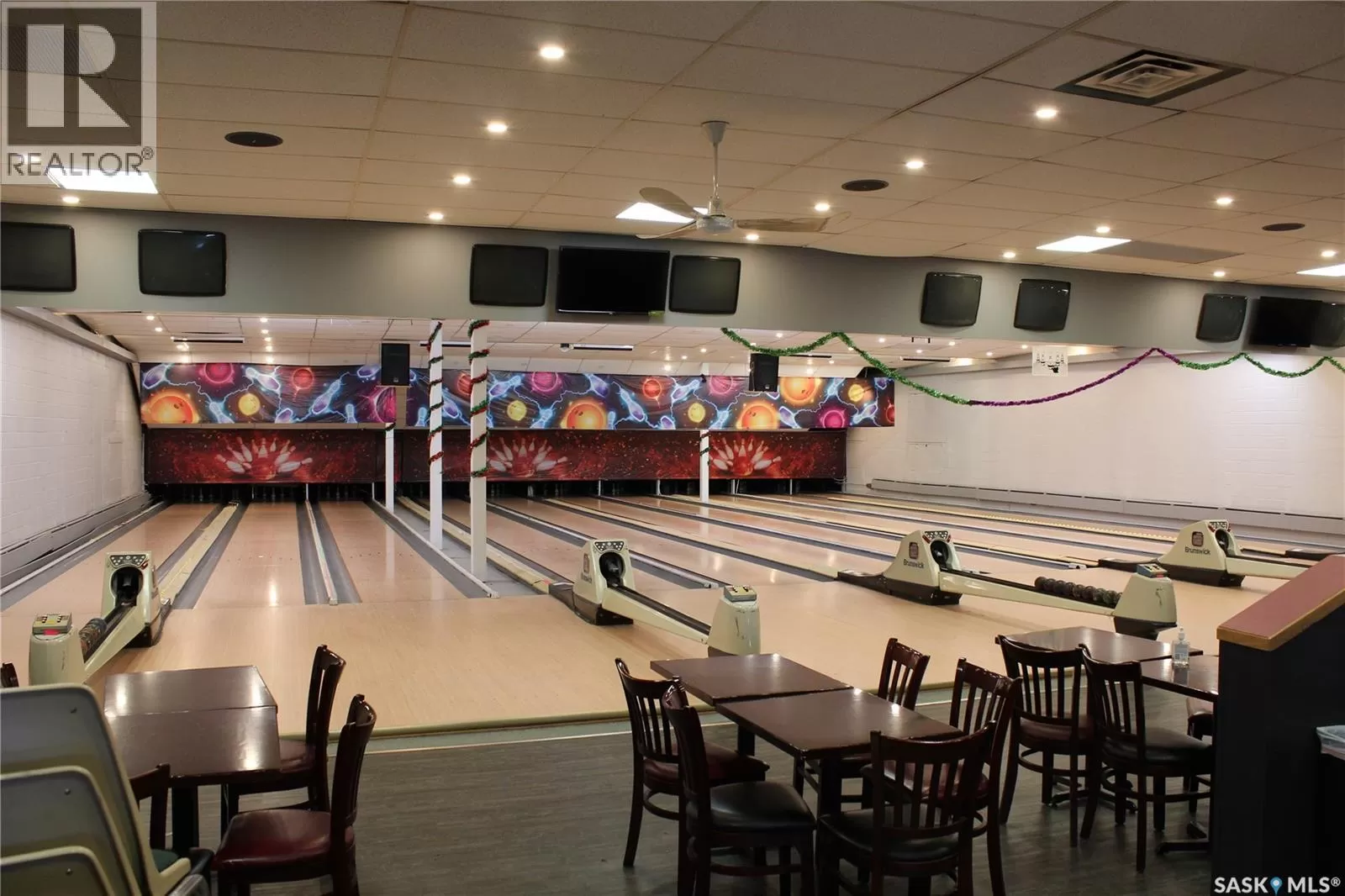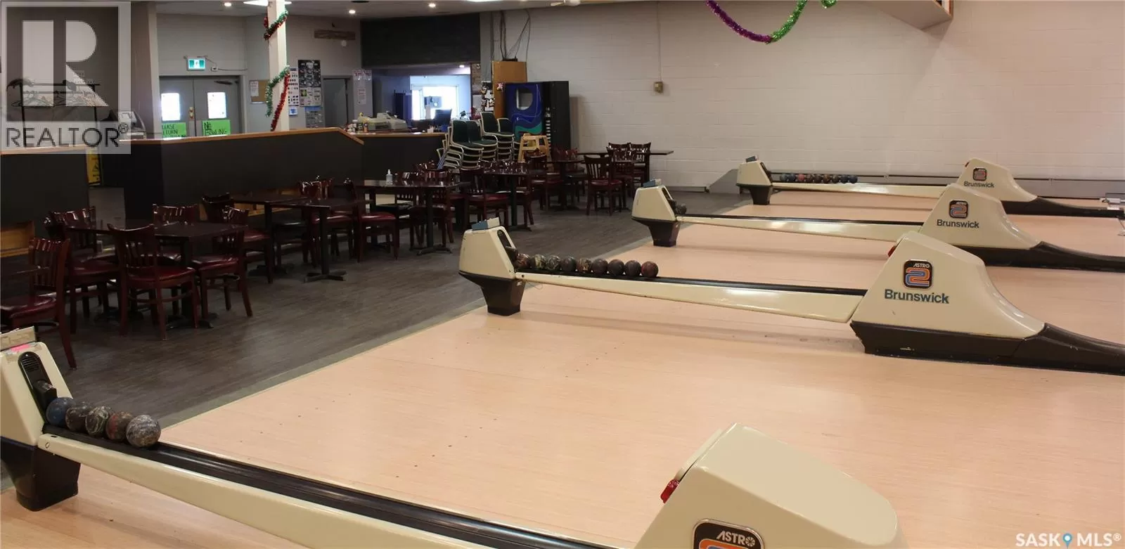 A great opportunity to own the popular Weyburn SuperBowl. Potential income streams available include bowling, cafe, licensed restaurant, and event centre. This commercial property has a prime location along HWY 35 in the heart of Weyburn. Recent renovations include new flooring on all bowling lanes, new vinyl flooring, renovated bathrooms, new lighting, and two new furnaces. There is over 9900 square feet with plenty of room for the large foyer, sitting area for spectators, a large space for hosting special events such as birthday bowling, a sizable front desk area, full L-shaped dining area, two sets of washrooms, and a kitchen. This business has been popular with local bowling leagues, sporting teams as they host their year end wind ups, and enjoyed by many community groups. This building has a solid exterior, lots of upgrades, and includes all equipment needed to operate the business. (id:27476)