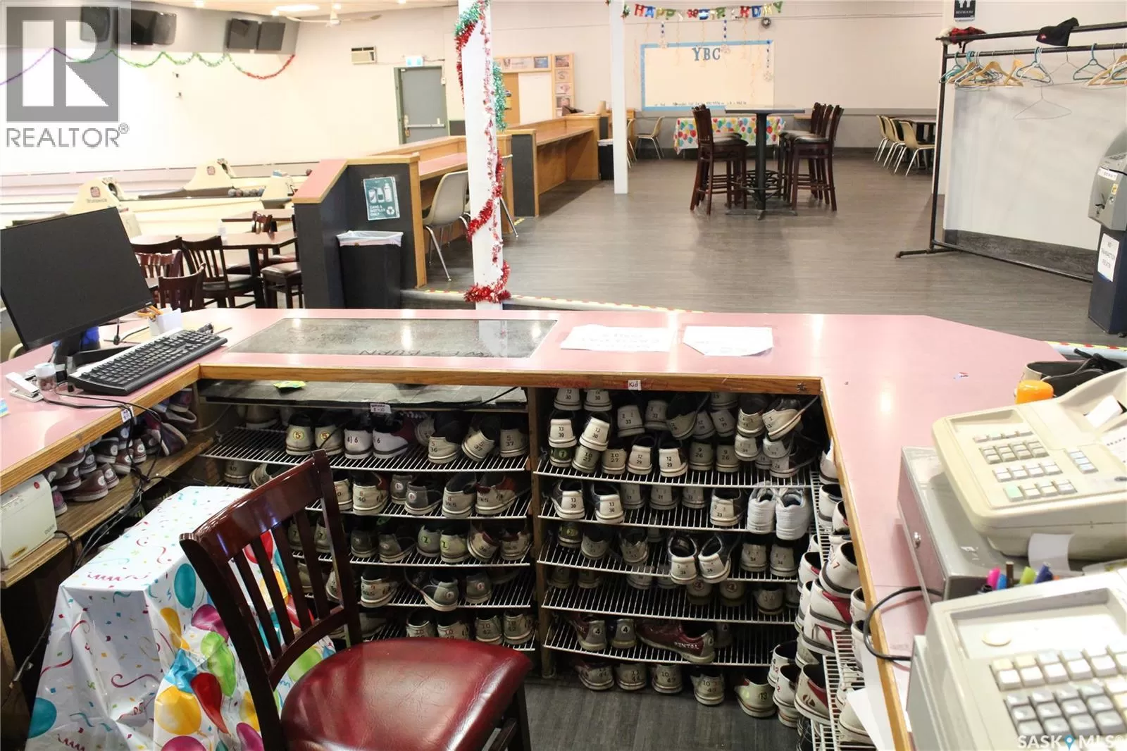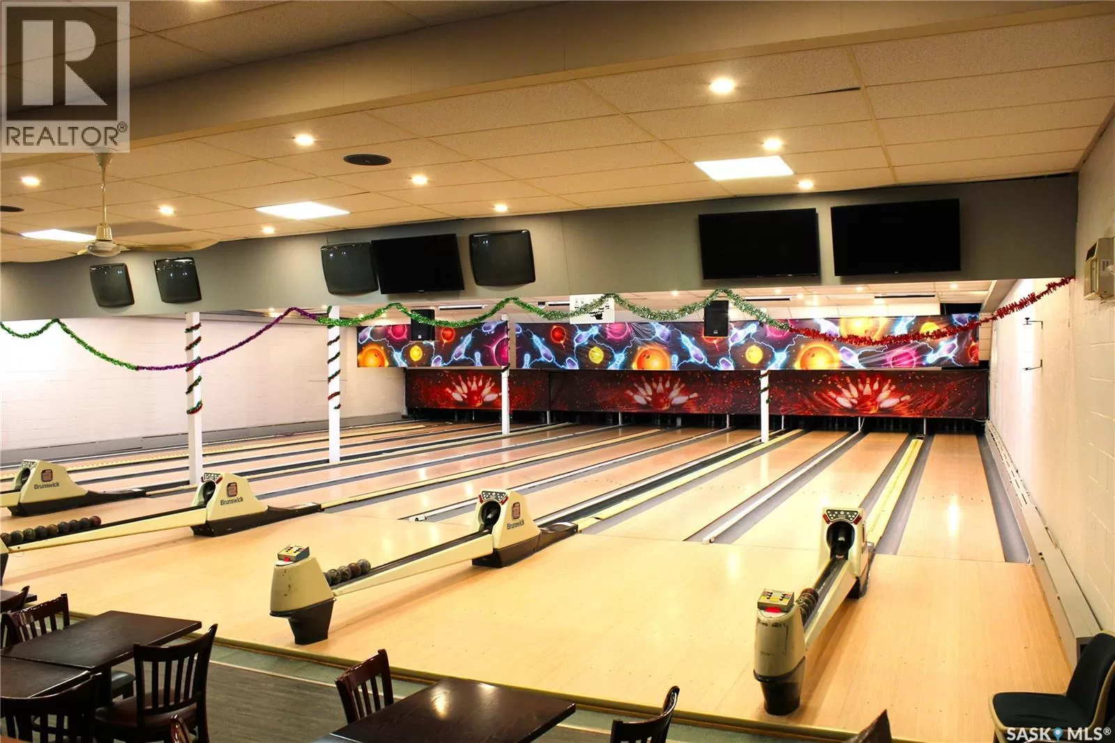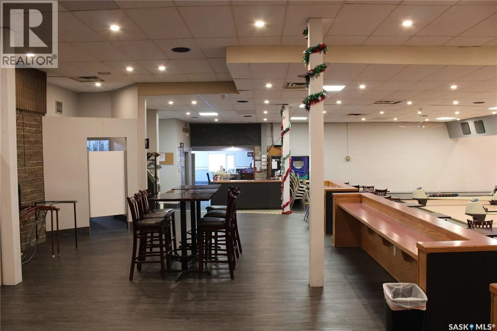A great opportunity to own the popular Weyburn SuperBowl. Potential income streams available include bowling, cafe, licensed restaurant, and event centre. This commercial property has a prime location along HWY 35 in the heart of Weyburn. Recent renovations include new flooring on all bowling lanes, new vinyl flooring, renovated bathrooms, new lighting, and two new furnaces. There is over 9900 square feet with plenty of room for the large foyer, sitting area for spectators, a large space for hosting special events such as birthday bowling, a sizable front desk area, full L-shaped dining area, two sets of washrooms, and a kitchen. This business has been popular with local bowling leagues, sporting teams as they host their year end wind ups, and enjoyed by many community groups. This building has a solid exterior, lots of upgrades, and includes all equipment needed to operate the business. (id:27476)