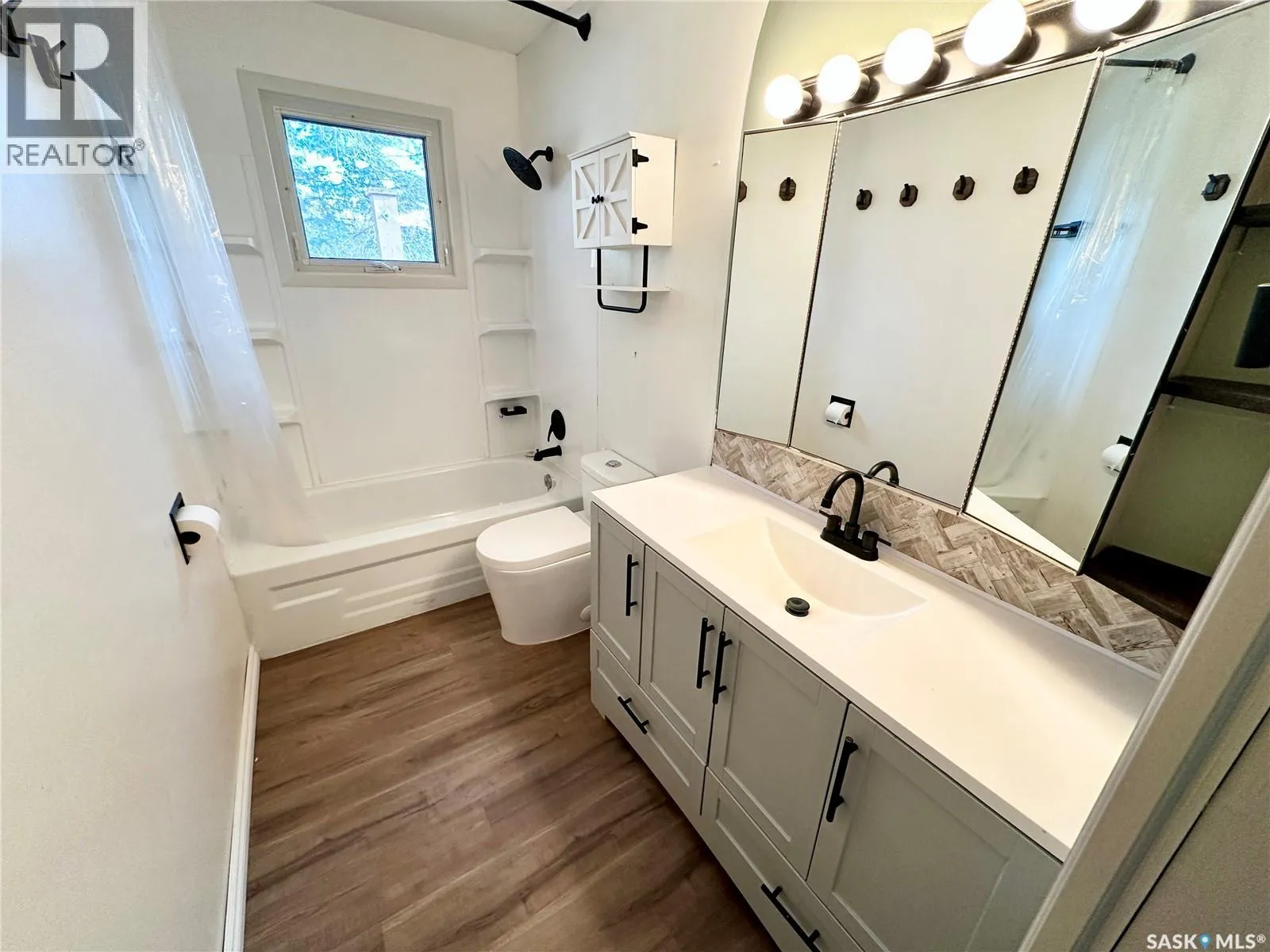 Welcome to 224 17th Street, a beautifully updated 989 sq ft bungalow. This charming home blends modern upgrades with a warm, inviting feel, offering comfortable living on both the main floor and lower level. Step inside to an open-concept kitchen, living room, and dining area, all finished with stylish luxury vinyl plank flooring that continues throughout the entire main floor. The updated light fixtures, PVC windows, stainless steel appliances and renovated bathrooms bring a fresh, contemporary look to the entire home. Originally a three-bedroom main floor, two bedrooms have been combined to create a spacious primary bedroom with excellent storage. This layout now provides two main-floor bedrooms plus one additional bedroom downstairs, perfect for guests, family, or a home office. Outside, enjoy a large backyard with mature trees and a generous treated wood deck, an ideal setup for relaxing or entertaining. The property also includes a 14' x 20' detached single garage, fully finished and heated with a gas radiant heater, offering both convenience and comfort year-round. With architectural shingles, metal siding, and numerous updates throughout, this home is move-in ready and full of value. A fantastic opportunity in a desirable neighbourhood, call to book a showing. (id:27476)