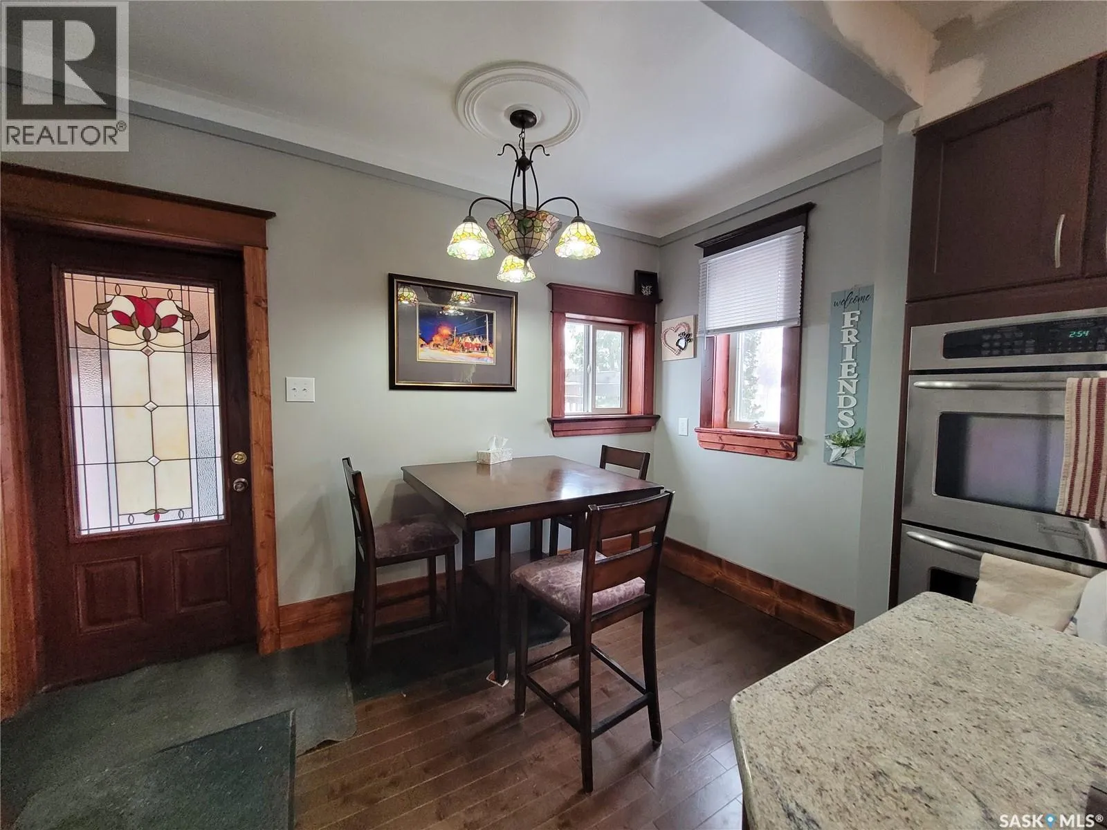 Welcome to 717 Coteau Avenue in Weyburn, SK, a stunning 1912 2.5-storey character home offering 2,163 sq. ft. of living space on a beautifully sized double lot of more than 1/3 acre! This unique property combines timeless charm with modern functionality and includes a 26â x 26â double detached garage, a naturally filtered outdoor swimming pool, and an abundance of outdoor space for recreation or future development. A welcoming covered veranda leads into the home, setting the tone for its classic appeal. The main floor features a versatile formal dining room that can also serve as a secondary living area, media room, or playroom, followed by a spacious living room accessible from the hall or through original wood pocket doors. At the back of the home is a well-appointed kitchen complete with gas cooktop, wall oven, built-in dishwasher, and a breakfast nook ideal for casual dining. Off the kitchen is a large full bathroom with laundry, a convenient pantry, and access to the covered breezeway leading to the garage. The second floor has seen many upgrades and offers a half bathroom, two guest bedrooms, a generously sized primary bedroom, and a flex room perfect for a nursery, office, or fourth bedroom. The third level presents an independent one-bedroom suite with its own exterior entrance, offering excellent potential for rental income or comfortable accommodation for extended family, ready for your finishing touches. The basement is well-maintained with excellent ceiling height and includes an additional bedroom, a shower-ready 2-piece bathroom, a spacious utility room with water softener and a newer boiler, and loads of storage. Outside, enjoy the expansive yard with room for kids, pets, or seasonal activities, along with a storage shed and endless possibilities. Located minutes from downtown, schools, and parks, this character home offers space, versatility, and opportunityâbook your private showing today and embrace its charm firsthand. A truly rare Weyburn find! (id:27476)