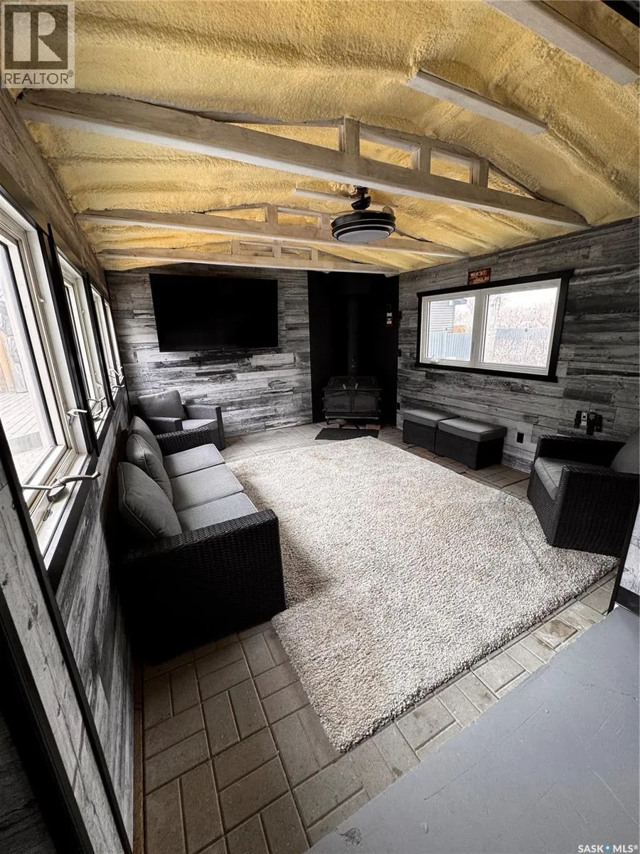 A great home in this coveted neighborhood doesn't come along often! Here is your opportunity to become a part of this neighborhood. This 4-bedroom bungalow is nestled along a quiet, mature street away from the bustle of the city, yet conveniently located within walking proximity of the Weyburn Comprehensive High School. Backing on to open field, with peaceful surroundings; sitting out back on the private deck, you'll find this property is a kin to a little slice of country living within the city. With modern cabinets and rich colors; the kitchen is functional and inviting, offering a seamless flow to the living roomâperfect for hosting or simply cozying up for some quality family time. Continuing through, you will find three bedrooms and a 4pc bath. The middle bedroom features direct access to the backyard. In the basement, you'll be pleased to discover ample storage space, a large family room, adjoining recreation area where a small kitchenette, off to the side, has been dressed with new cabinets in 2025 adding the perfect feature for entertaining. This great versatile space is finished off with a second 4-pc bath and bedroom. The Backyard!! Fully fenced, this tranquil space is adorned with a large private deck, ideal for relaxing, catching some sun, or simply taking in the fresh air, enjoying the surroundings, as it overlooks a spacious yard(set up with underground sprinklers and moisture level monitoring system). And this GARAGE!! With almost 9 ft ceiling height, this clean, bright space is ideal for all things a man would love! Especially, if Harleys are your thing. The feature wall is a work of art amongst the freshly finished high quality wallboard. A new radiant heat system was installed in 2025. Finally, the SUNROOM! Here is where memories are meant to be made. Insulated, with direct access off the garage, when you're either watching the snow fall on a quiet winter's night or watching that sport's game; you are sure to fall in love with this space! (id:27476)