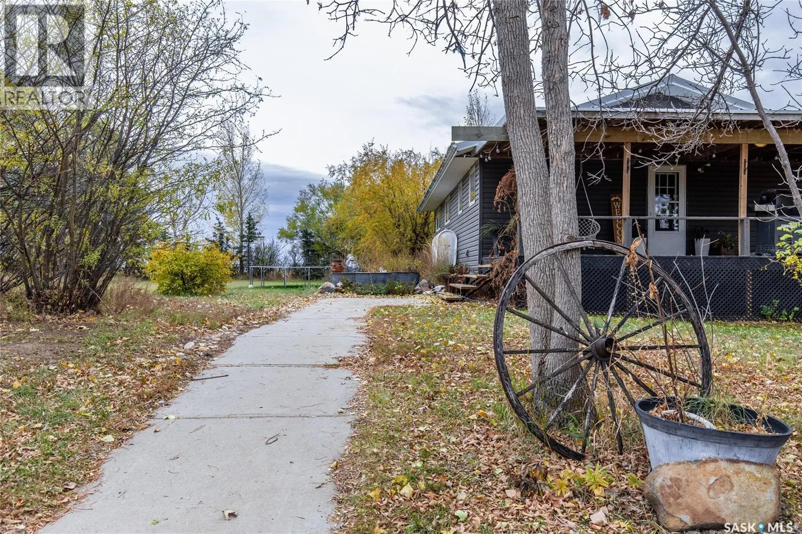 Just five minutes North of Mortlach, this 40-acre property is a fantastic opportunity for hobby farmers, ranchers, or anyone looking to enjoy a rural lifestyle with room to grow. The land is set up for livestock, featuring two bison pens secured with 5-wire fencing and a massive quonset that offers plenty of space for machinery, equipment, or feed storage. You'll also find a variety of established fruit trees and berry bushes, including apple, plum, cherry, and raspberries. The well-kept bungalow offers comfort and functionality, with a wrap-around deck to enjoy prairie views and a thoughtfully updated interior. The main floor includes a mudroom entry, updated kitchen, dining area, living room, two bedrooms, and a 4-piece bathroom (with in-floor heating). Downstairs, the mostly finished basement features a large family and games room, laundry/utility space, and a generous den that serves as a primary bedroom (no window) with walk-in closet and 3-piece en suite. Whether you're looking to raise animals, enjoy wide open space, or settle into country living with modern comforts, this property delivers! (id:27476)