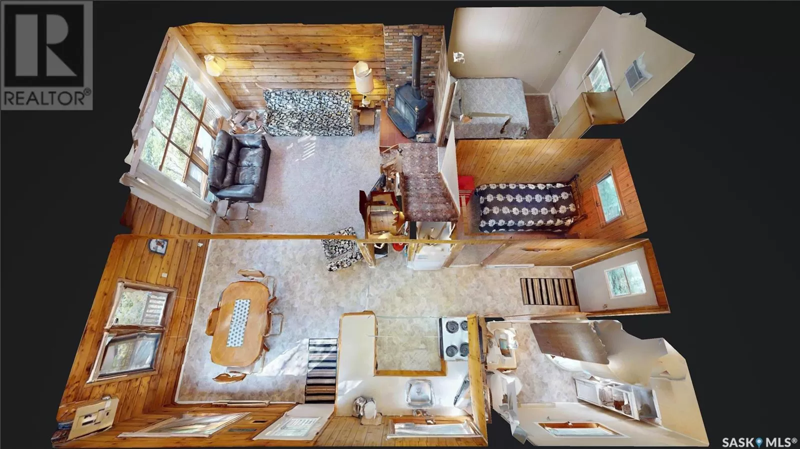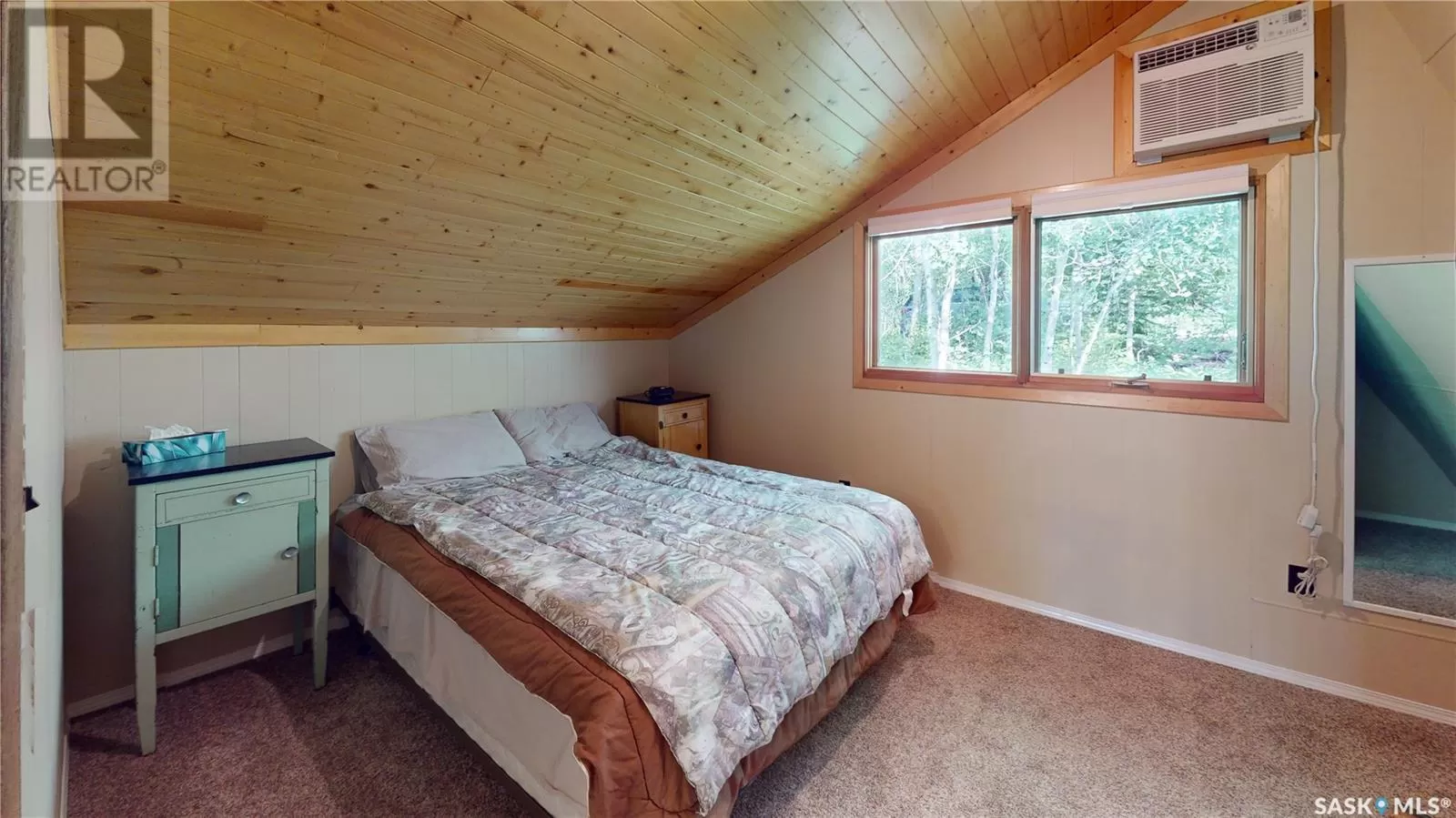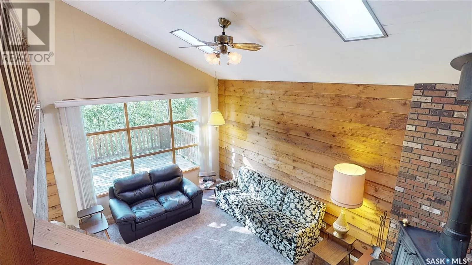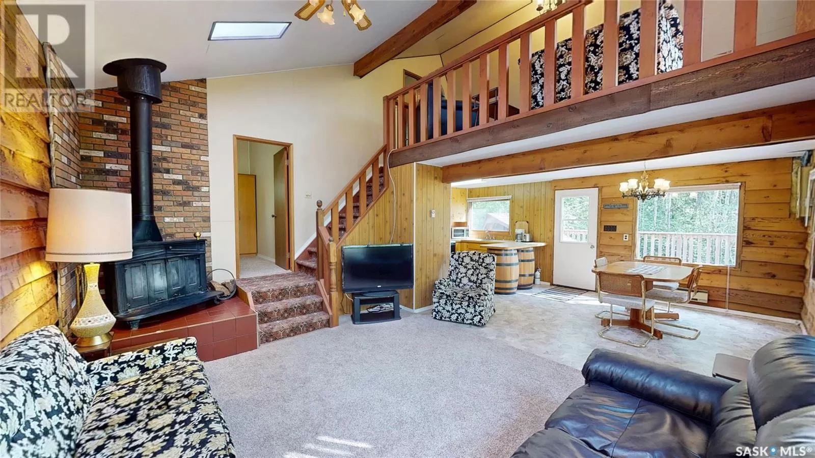 White Bear Lake Resort WHITE BEAR LAKE RESORT - YEAR ROUND PROPERTY - 3 BEDROOMS, 3PC BATH, WRAP AROUND DECK - OPEN CEILING LIVING ROOM WITH LOFT & VERANDA!!!! Privately Nestled Retreat - Tucked away in the trees for ultimate privacy, this charming year-round cabin offers a peaceful escape with all the essentials for comfortable living or weekend getaways. Featuring 3 Bedrooms plus a loft, this well-maintained property welcomes you with a warm resort feel. Step down the private walkway into the cabin to a functional U-Shaped kitchen that opens to the dining room and the spacious living room complete with wood-burning fireplace, large picture window, & vaulted ceiling with two skylights that fill the space with natural light. A 3pc bathroom with corner shower plus a bedroom finish off the Main Living Space. Just a few steps up from the living room, you will find the 2nd bedroom and the remaining steps lead up to the loft with an open living space, the primary bedroom and on the opposite end a balcony to enjoy your morning coffee or evening relaxation. Enjoy outdoor living with a wraparound deck and take advantage of parking two vehicles off the back alley with more options to add additional parking and a walking path up from the street. The property features electric baseboard heat, wood stove and the walk-out Crawlspace is prepped for a future furnace (natural gas line is plumbed to the dwelling). The crawlspace includes 2 separate rooms, one insulated & heated for the holding tank, water heater and pressure system; the other for storage. There is an insulated gravity fed sewer line to the septic tank at street & a water filling access by the back alley. Includes: Fridge, Stove, Pressure/water System, two wall mounted air conditioner units in the bedrooms plus all the furniture (excl. leather furniture & Tools). This is a rare opportunity! For a Full Viewing Experience, check out the 3D Matterport Tour and Floor Plans included in this Listing or Book A Viewing Appointment! (id:27476)