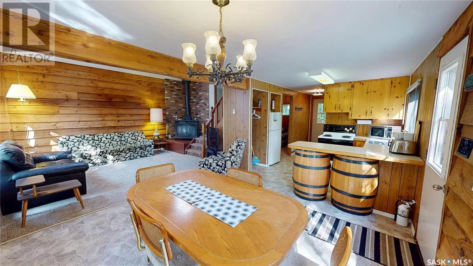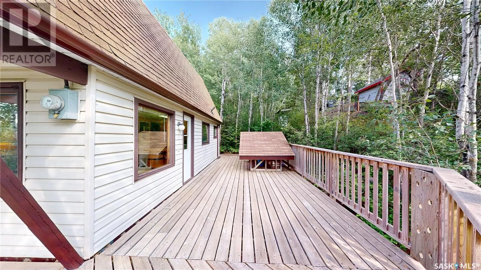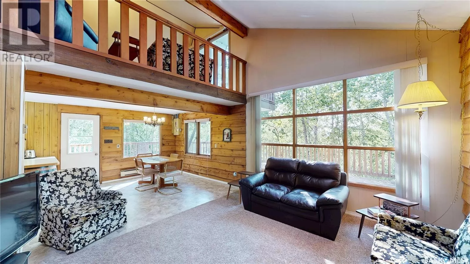 White Bear Lake Resort WHITE BEAR LAKE RESORT - YEAR ROUND PROPERTY - 3 BEDROOMS, 3PC BATH, WRAP AROUND DECK - OPEN CEILING LIVING ROOM WITH LOFT & VERANDA!!!! Privately Nestled Retreat - Tucked away in the trees for ultimate privacy, this charming year-round cabin offers a peaceful escape with all the essentials for comfortable living or weekend getaways. Featuring 3 Bedrooms plus a loft, this well-maintained property welcomes you with a warm resort feel. Step down the private walkway into the cabin to a functional U-Shaped kitchen that opens to the dining room and the spacious living room complete with wood-burning fireplace, large picture window, & vaulted ceiling with two skylights that fill the space with natural light. A 3pc bathroom with corner shower plus a bedroom finish off the Main Living Space. Just a few steps up from the living room, you will find the 2nd bedroom and the remaining steps lead up to the loft with an open living space, the primary bedroom and on the opposite end a balcony to enjoy your morning coffee or evening relaxation. Enjoy outdoor living with a wraparound deck and take advantage of parking two vehicles off the back alley with more options to add additional parking and a walking path up from the street. The property features electric baseboard heat, wood stove and the walk-out Crawlspace is prepped for a future furnace (natural gas line is plumbed to the dwelling). The crawlspace includes 2 separate rooms, one insulated & heated for the holding tank, water heater and pressure system; the other for storage. There is an insulated gravity fed sewer line to the septic tank at street & a water filling access by the back alley. Includes: Fridge, Stove, Pressure/water System, two wall mounted air conditioner units in the bedrooms plus all the furniture (excl. leather furniture & Tools). This is a rare opportunity! For a Full Viewing Experience, check out the 3D Matterport Tour and Floor Plans included in this Listing or Book A Viewing Appointment! (id:27476)