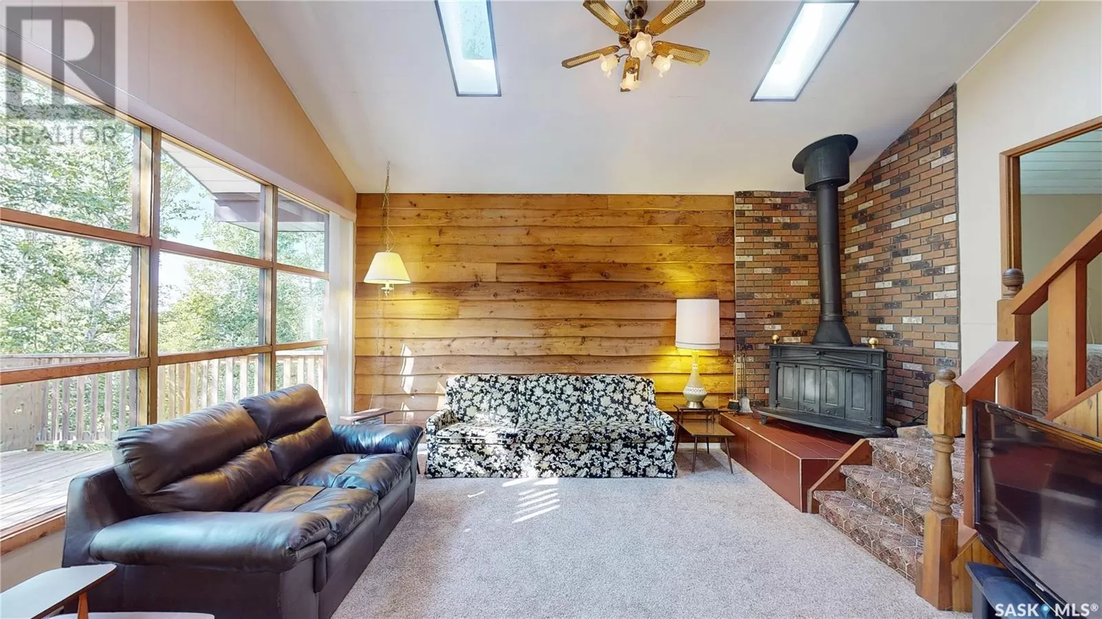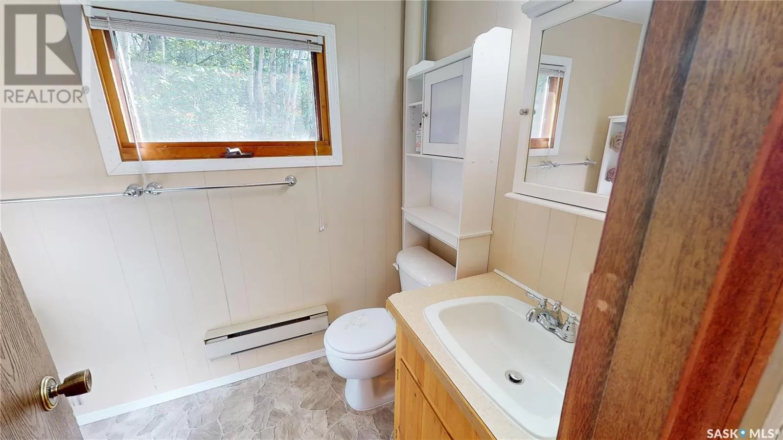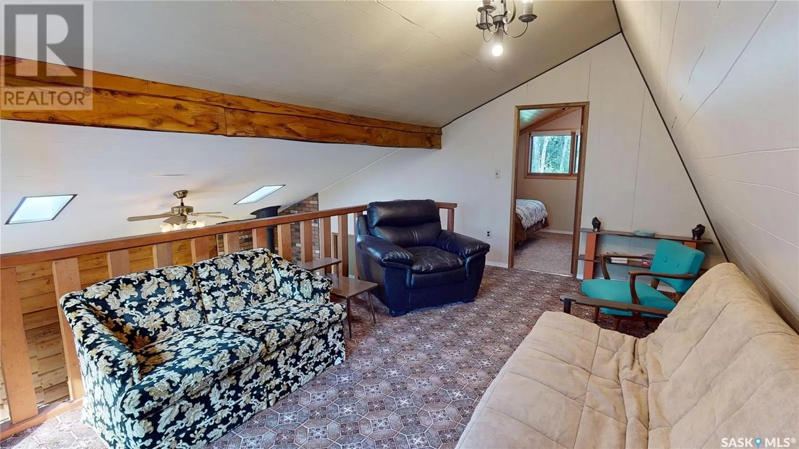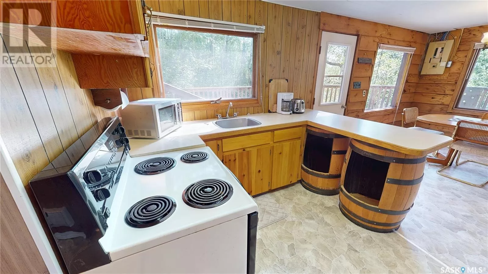 White Bear Lake Resort WHITE BEAR LAKE RESORT - YEAR ROUND PROPERTY - 3 BEDROOMS, 3PC BATH, WRAP AROUND DECK - OPEN CEILING LIVING ROOM WITH LOFT & VERANDA!!!! Privately Nestled Retreat - Tucked away in the trees for ultimate privacy, this charming year-round cabin offers a peaceful escape with all the essentials for comfortable living or weekend getaways. Featuring 3 Bedrooms plus a loft, this well-maintained property welcomes you with a warm resort feel. Step down the private walkway into the cabin to a functional U-Shaped kitchen that opens to the dining room and the spacious living room complete with wood-burning fireplace, large picture window, & vaulted ceiling with two skylights that fill the space with natural light. A 3pc bathroom with corner shower plus a bedroom finish off the Main Living Space. Just a few steps up from the living room, you will find the 2nd bedroom and the remaining steps lead up to the loft with an open living space, the primary bedroom and on the opposite end a balcony to enjoy your morning coffee or evening relaxation. Enjoy outdoor living with a wraparound deck and take advantage of parking two vehicles off the back alley with more options to add additional parking and a walking path up from the street. The property features electric baseboard heat, wood stove and the walk-out Crawlspace is prepped for a future furnace (natural gas line is plumbed to the dwelling). The crawlspace includes 2 separate rooms, one insulated & heated for the holding tank, water heater and pressure system; the other for storage. There is an insulated gravity fed sewer line to the septic tank at street & a water filling access by the back alley. Includes: Fridge, Stove, Pressure/water System, two wall mounted air conditioner units in the bedrooms plus all the furniture (excl. leather furniture & Tools). This is a rare opportunity! For a Full Viewing Experience, check out the 3D Matterport Tour and Floor Plans included in this Listing or Book A Viewing Appointment! (id:27476)