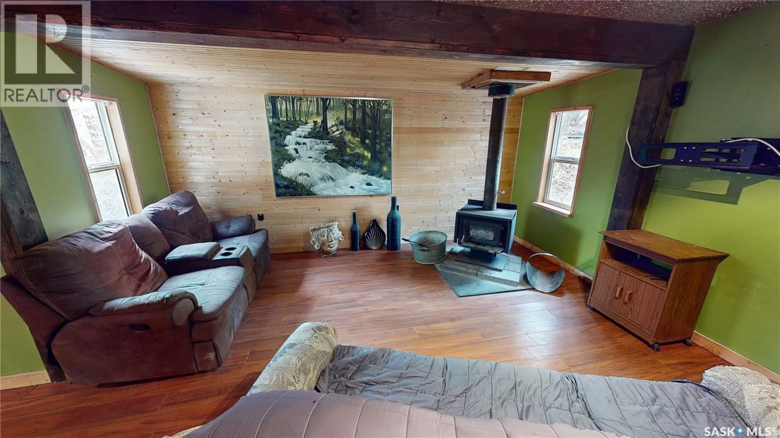 Lot 685, CLSR 58454, White Bear Lake Resort Charming year-round property at White Bear Lake Resort! This spacious bungalow boasts a two-story addition with a back deck perfect for enjoying the serene surroundings. The detached bunkhouse adds extra accommodation options. Ample front parking and a partially fenced yard for added privacy. Inside, you'll find a bathroom, laundry room, sunroom, and plenty of bonus space that can be converted into additional bedrooms. The cabin features a cozy wood stove and a spacious living room. Includes fridge, stove, washer, dryer. The exterior is low-maintenance with vinyl siding, updated windows, 2000 Gallon Septic Tank (septic line replaced 2021) 100 Amp Electric Panel and a treated wood deck. Inground cistern (1200 Gallon) accessed from the heated mechanical room located off the front porch for your convenience. This cabin offers the perfect blend of comfort and nature! Full Details and Floor Plans on the enclosed Matterport Tour. (id:27476)