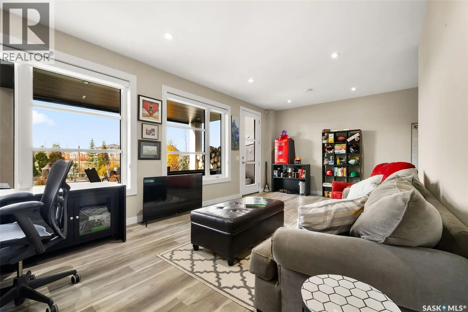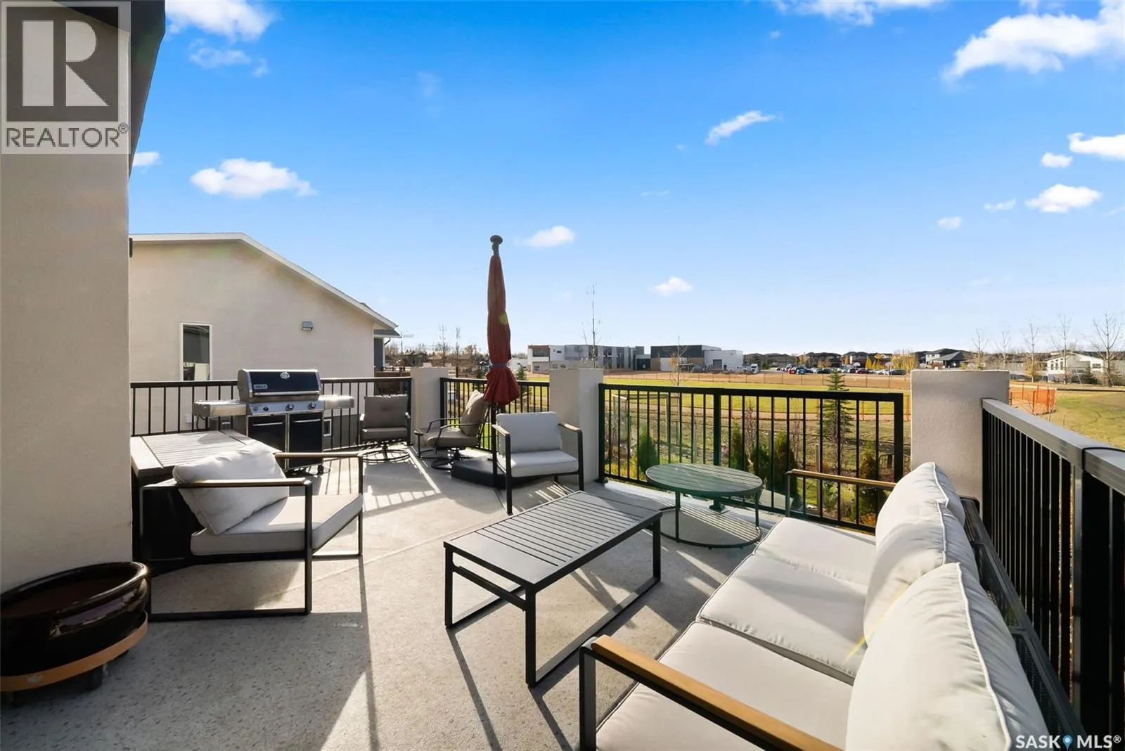 Welcome to 18 Princeton Drive, a stunning 1,840 sq. ft. Ironstone Homes built two storey walkout, proudly owned by the original owners. Ideally located in a prime area of White City, this home sits on an impressive 9,000+ sq. ft. lot backing green space and the desirable Emerald Ridge Elementary School. The southwest facing yard offers beautiful views and all day sunshine, with an upper deck and lower covered patio perfect for year round enjoyment. The main floor features 9 ft. ceilings, a bright open concept layout with a spacious living room, stylish kitchen with oversized island and pantry, and a dining area showcasing large windows overlooking the backyard. A versatile bedroom (or office), 2 pc bath, and mudroom with direct access to the 24x26 steel-beam double attached garage complete this level. Upstairs youâll find a luxurious primary suite with a walk in closet and 4 pc ensuite, two additional good sized bedrooms, a main 4 pc bath, and a convenient upper level laundry room. The walkout lower level is fully developed with a large family room featuring incredible views of the yard and green space, an additional bedroom, bathroom, and ample storage. The professionally landscaped backyard is a true retreat with trees, shrubs, and three separate patio areas for relaxing, entertaining, or stargazing around a fire. With quality finishes, modern design, and a sought after location, this beautiful family home truly has it all. (id:27476)
