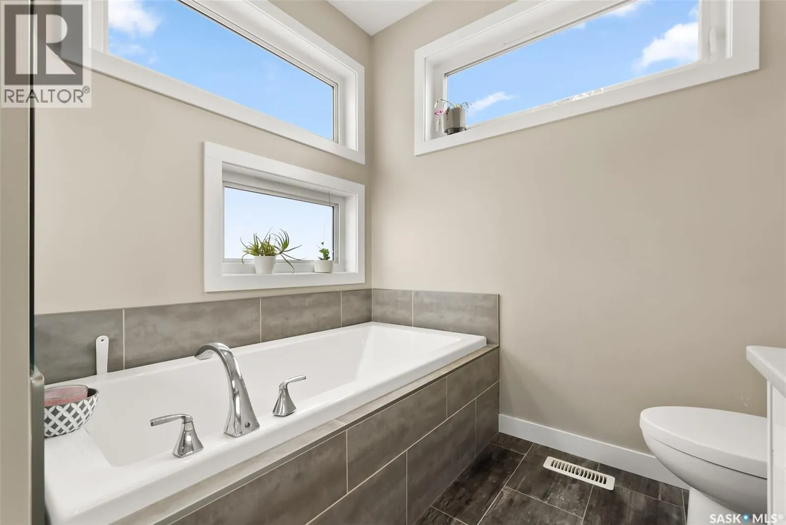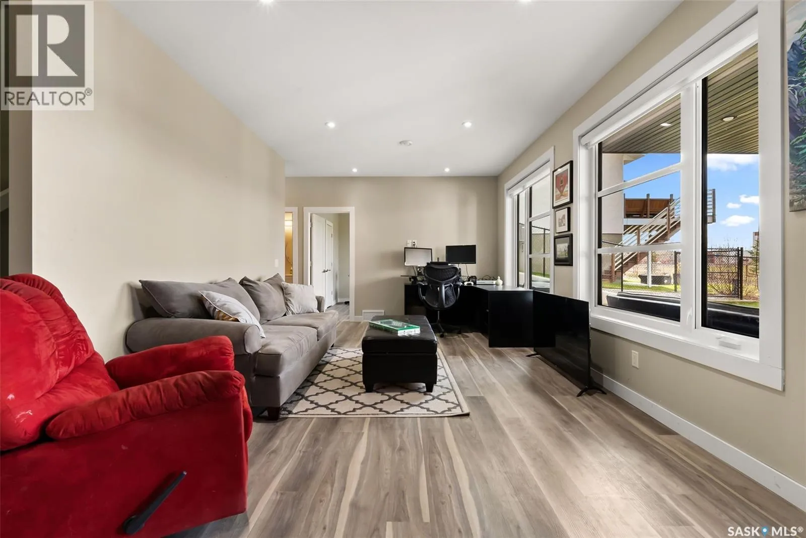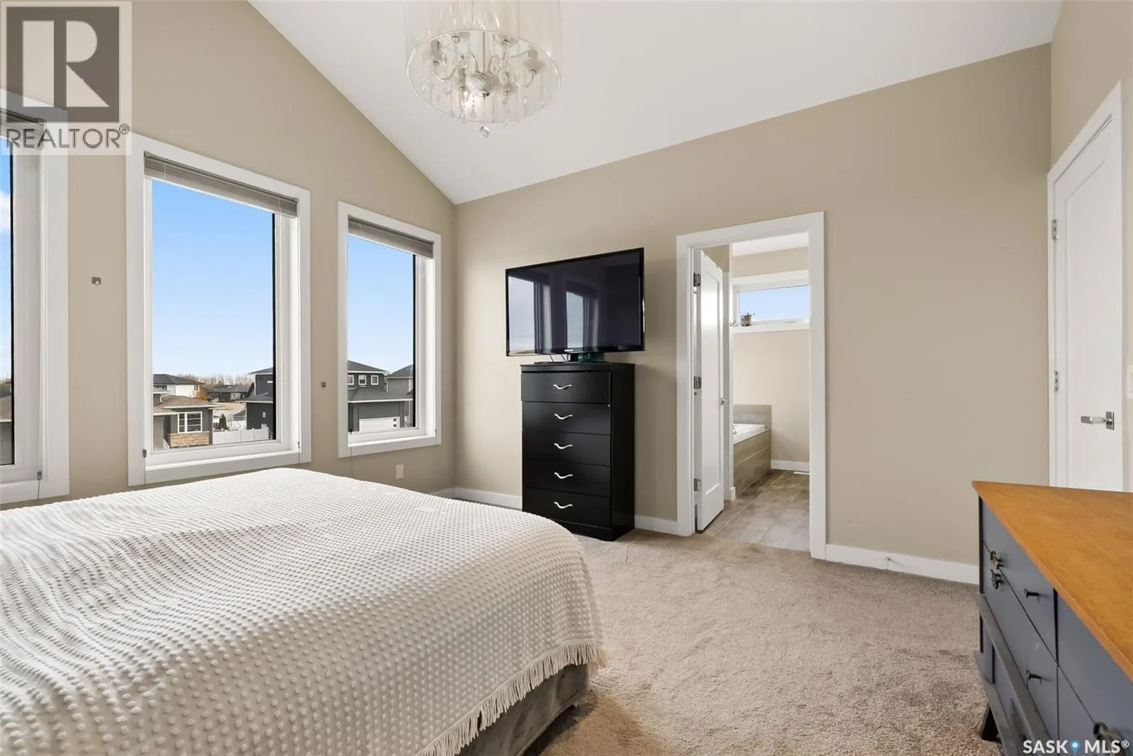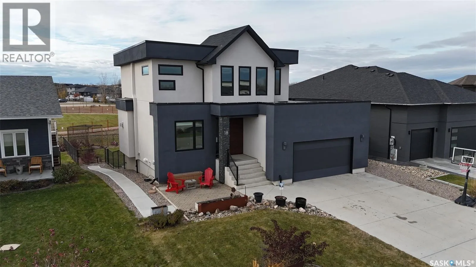 Welcome to 18 Princeton Drive, a stunning 1,840 sq. ft. Ironstone Homes built two storey walkout, proudly owned by the original owners. Ideally located in a prime area of White City, this home sits on an impressive 9,000+ sq. ft. lot backing green space and the desirable Emerald Ridge Elementary School. The southwest facing yard offers beautiful views and all day sunshine, with an upper deck and lower covered patio perfect for year round enjoyment. The main floor features 9 ft. ceilings, a bright open concept layout with a spacious living room, stylish kitchen with oversized island and pantry, and a dining area showcasing large windows overlooking the backyard. A versatile bedroom (or office), 2 pc bath, and mudroom with direct access to the 24x26 steel-beam double attached garage complete this level. Upstairs youâll find a luxurious primary suite with a walk in closet and 4 pc ensuite, two additional good sized bedrooms, a main 4 pc bath, and a convenient upper level laundry room. The walkout lower level is fully developed with a large family room featuring incredible views of the yard and green space, an additional bedroom, bathroom, and ample storage. The professionally landscaped backyard is a true retreat with trees, shrubs, and three separate patio areas for relaxing, entertaining, or stargazing around a fire. With quality finishes, modern design, and a sought after location, this beautiful family home truly has it all. (id:27476)