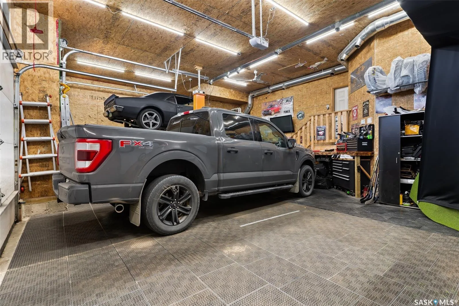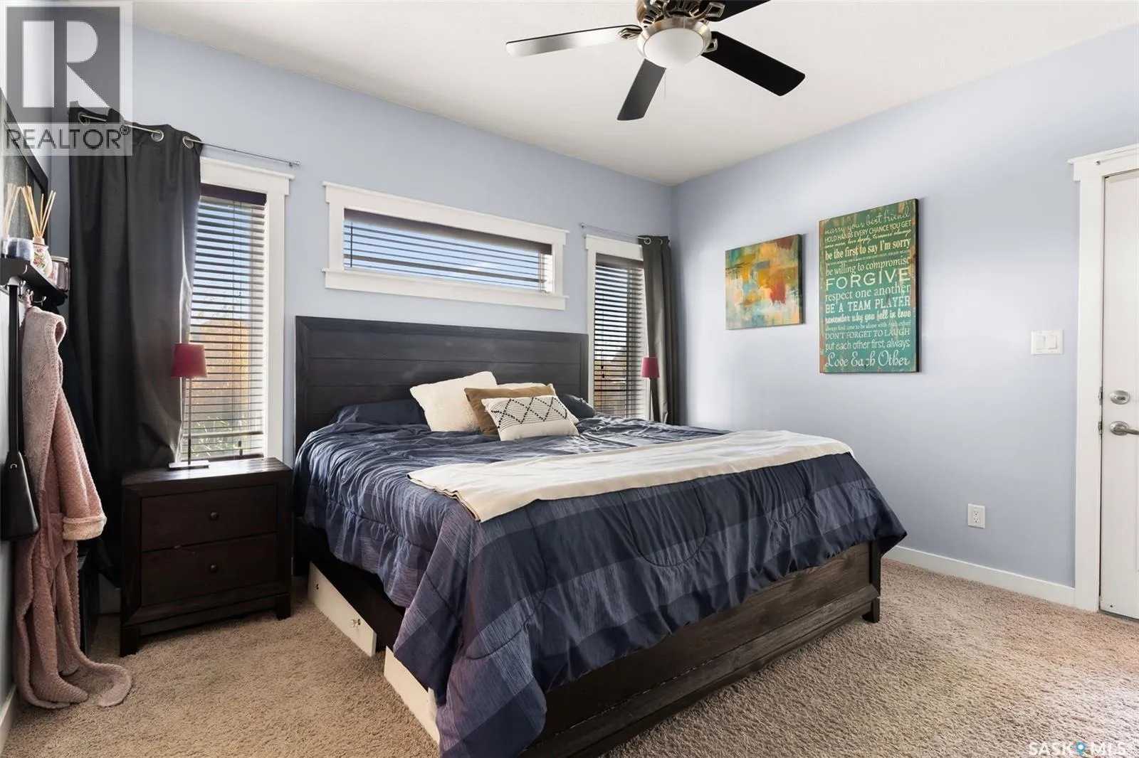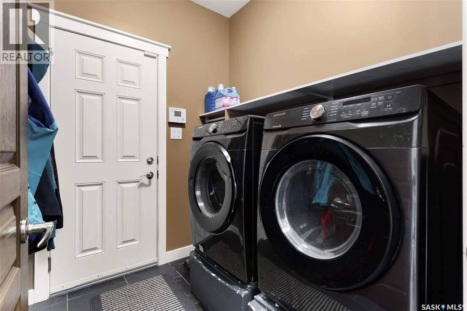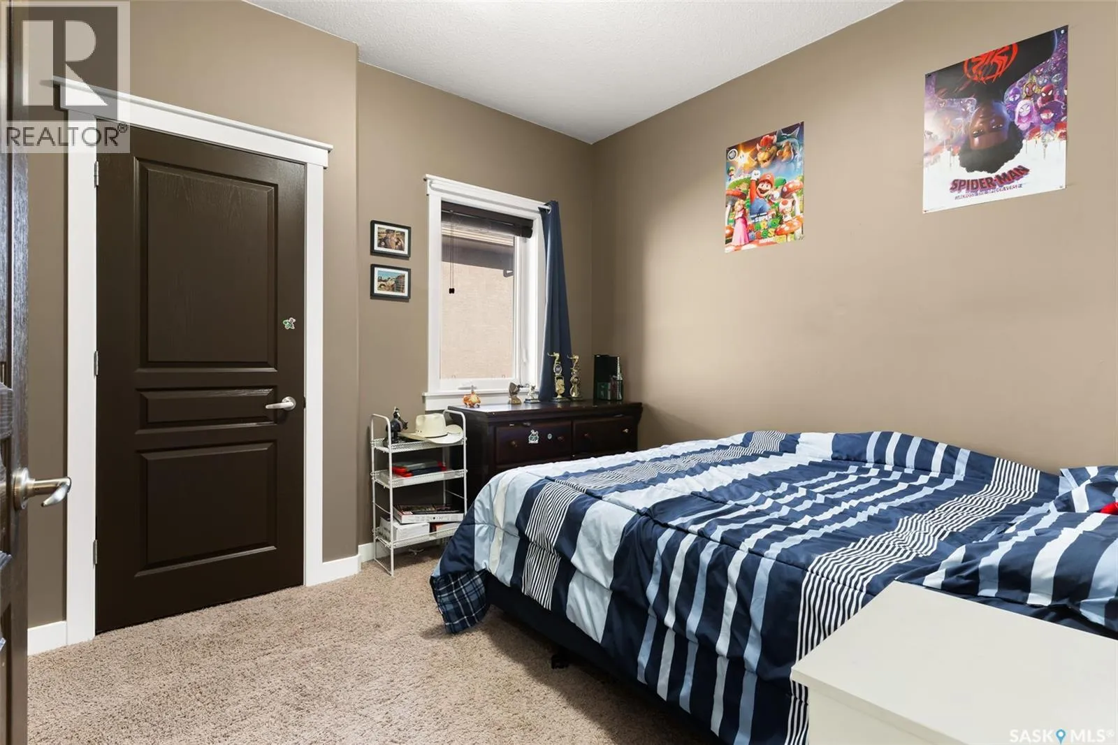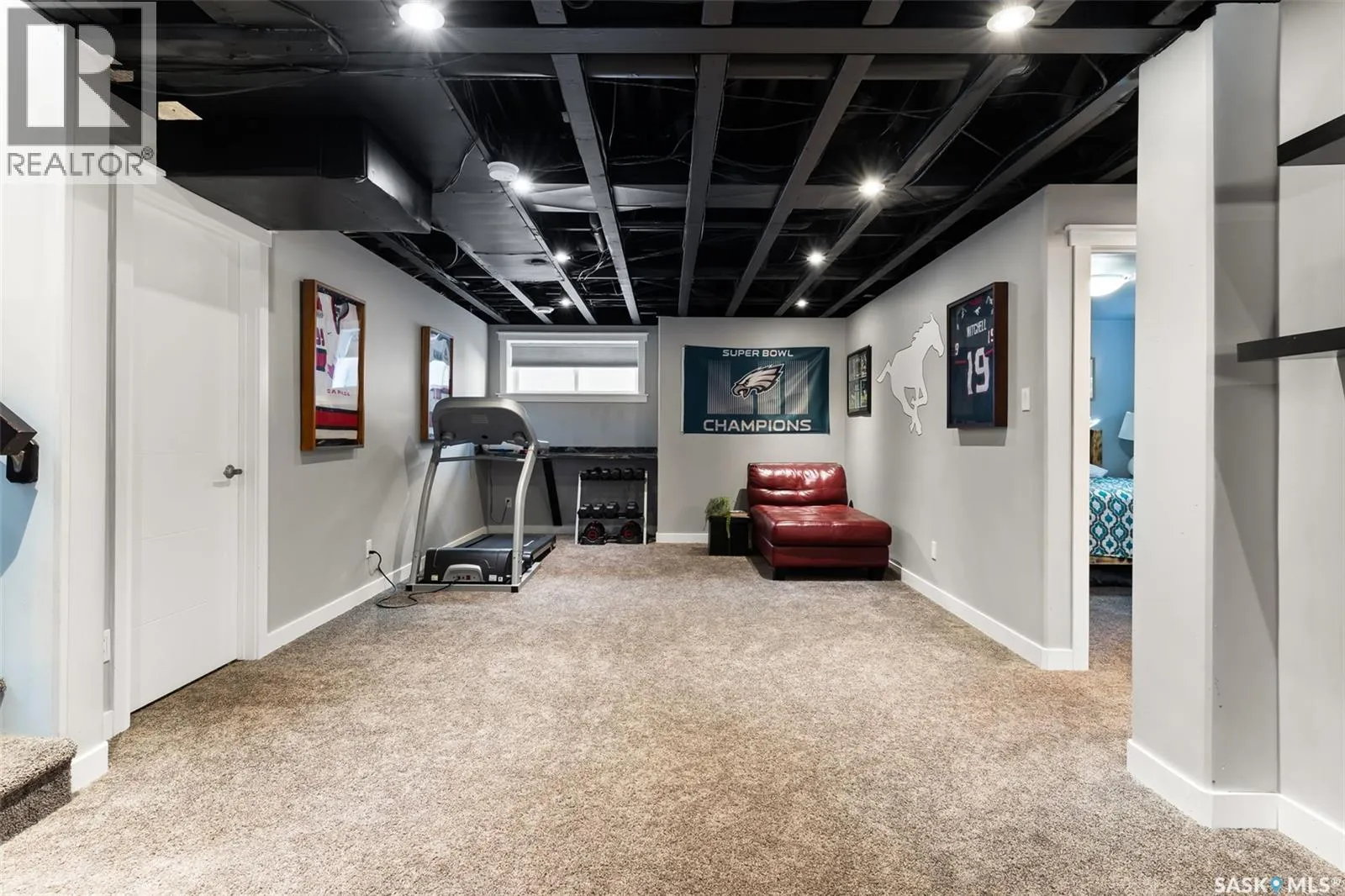 Welcome to 37 Churchill Crescent, White City â A move-in-ready family home just minutes from Regina and an easy walk to the brand-new school. From the moment you arrive, the xeriscaped front yard delivers jaw-dropping curb appeal with almost zero upkeep. Step inside to soaring vaulted ceilings, designer pot lights, and sunlight pouring across the open main floor. A stacked-stone gas fireplace anchors the living room, flowing seamlessly into the dining area and a chef-worthy kitchen featuring rich espresso maple cabinetry, granite counters, a huge eat-up island, walk-in pantry, and direct access to the covered veranda for effortless indoor-outdoor living. The private primary suite is a true retreat with its own deck door, spa-like 4-piece ensuite, and spacious walk-in closet. Two more bright bedrooms with clever recessed closets, a stylish 4-piece main bath, and convenient main-floor laundry round out the main level. Downstairs, the fully finished basement is built for fun and comfort: massive family room, dedicated games area, sleek wet bar, an oversized fourth bedroom, full 4-piece bath, and tons of storage. Builder spray-foam insulation keeps everything cozy and energy bills low. The heated 32'Ã26' triple garage with 14' ceilings and room for a car lift (negotiable) is a rare gem. The backyard is pure joy: hot tub, fenced dog run, raised garden beds, storage shed, underground sprinklers, and a huge covered veranda that extends the season. Meticulously maintained, loaded with upgrades, and ready for you to move in â this is the turn-key White City dream home youâve been waiting for. Come fall in love today. (id:27476)