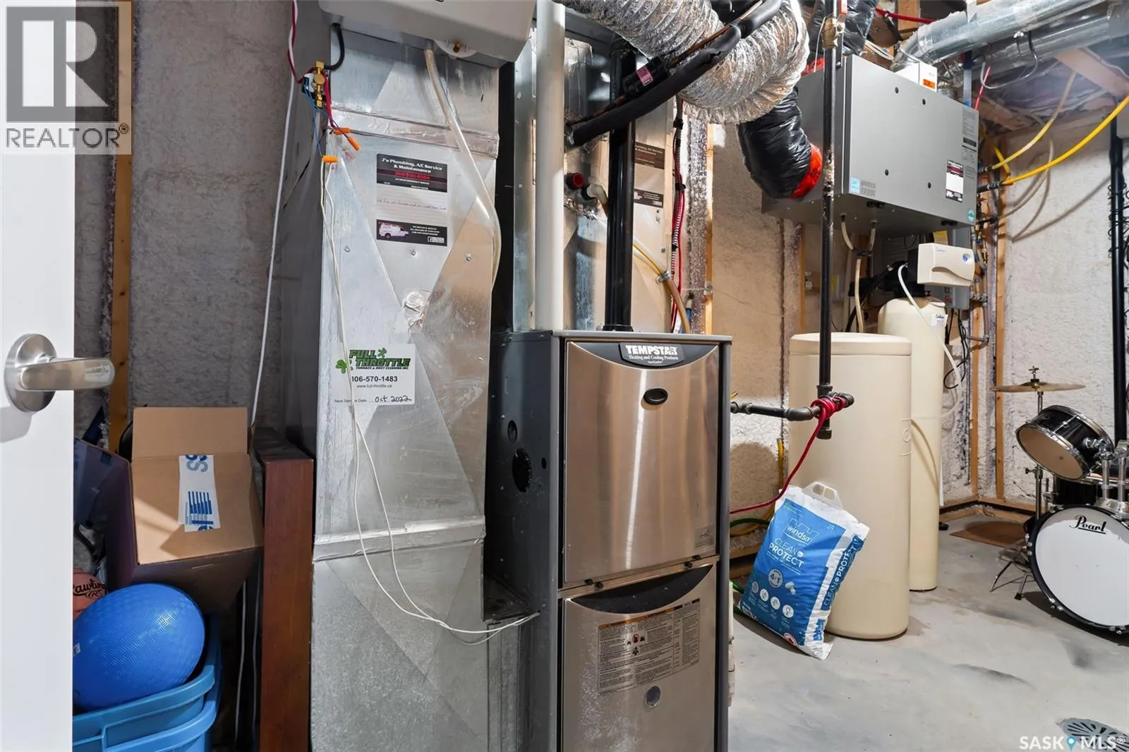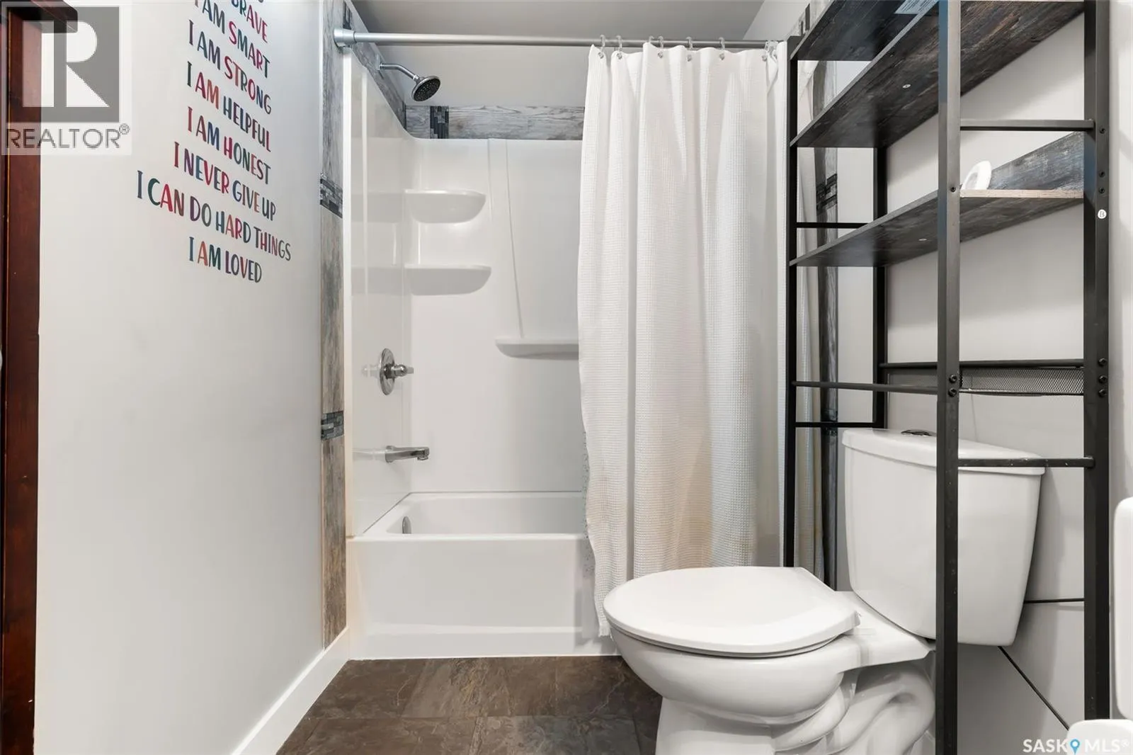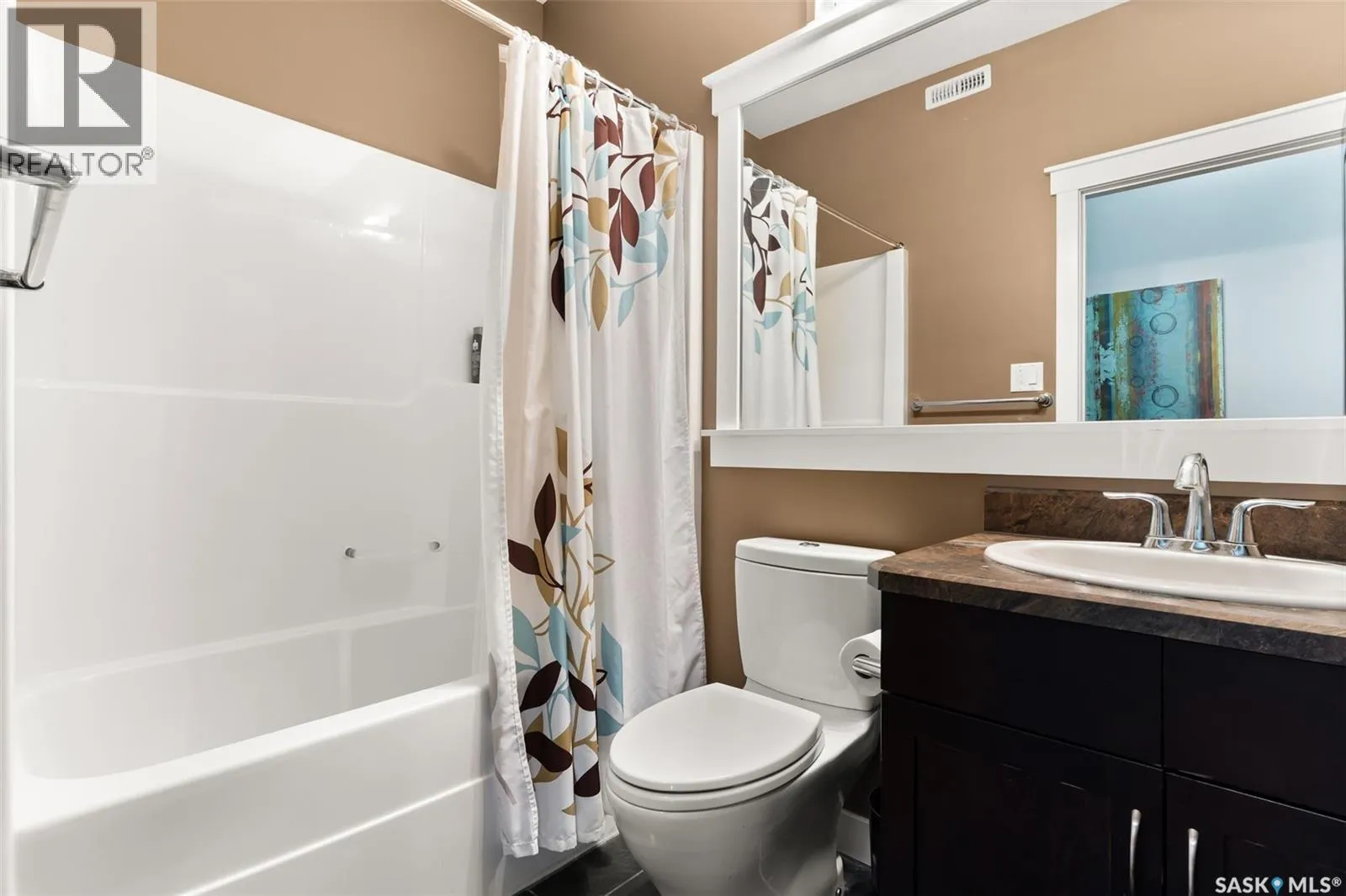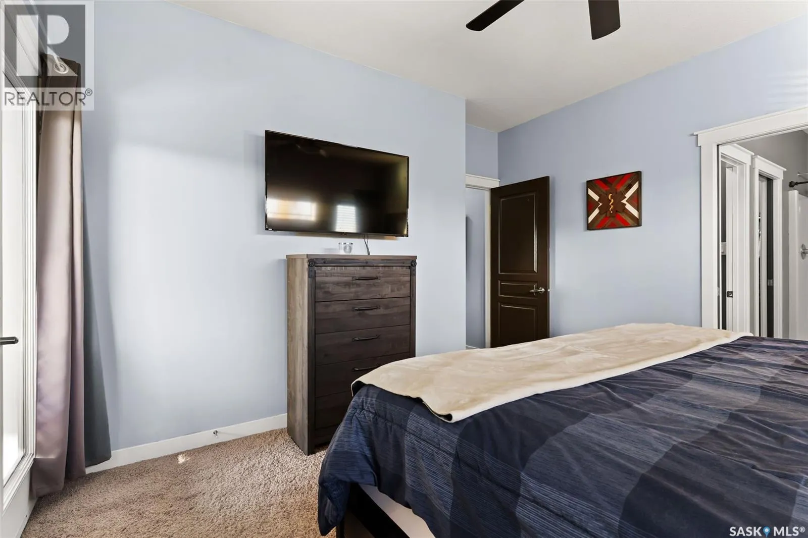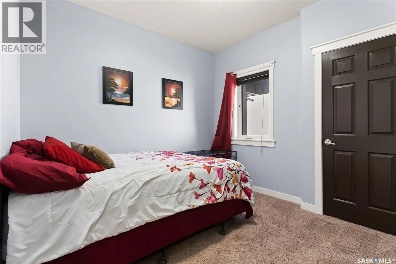 Welcome to 37 Churchill Crescent, White City â A move-in-ready family home just minutes from Regina and an easy walk to the brand-new school. From the moment you arrive, the xeriscaped front yard delivers jaw-dropping curb appeal with almost zero upkeep. Step inside to soaring vaulted ceilings, designer pot lights, and sunlight pouring across the open main floor. A stacked-stone gas fireplace anchors the living room, flowing seamlessly into the dining area and a chef-worthy kitchen featuring rich espresso maple cabinetry, granite counters, a huge eat-up island, walk-in pantry, and direct access to the covered veranda for effortless indoor-outdoor living. The private primary suite is a true retreat with its own deck door, spa-like 4-piece ensuite, and spacious walk-in closet. Two more bright bedrooms with clever recessed closets, a stylish 4-piece main bath, and convenient main-floor laundry round out the main level. Downstairs, the fully finished basement is built for fun and comfort: massive family room, dedicated games area, sleek wet bar, an oversized fourth bedroom, full 4-piece bath, and tons of storage. Builder spray-foam insulation keeps everything cozy and energy bills low. The heated 32'Ã26' triple garage with 14' ceilings and room for a car lift (negotiable) is a rare gem. The backyard is pure joy: hot tub, fenced dog run, raised garden beds, storage shed, underground sprinklers, and a huge covered veranda that extends the season. Meticulously maintained, loaded with upgrades, and ready for you to move in â this is the turn-key White City dream home youâve been waiting for. Come fall in love today. (id:27476)