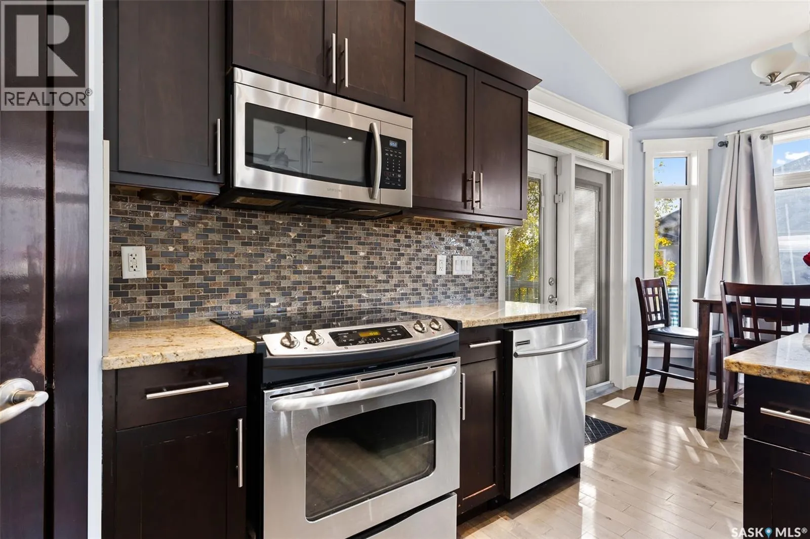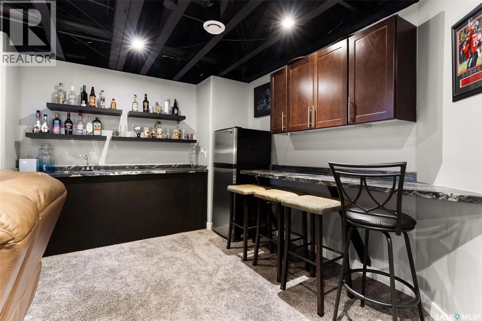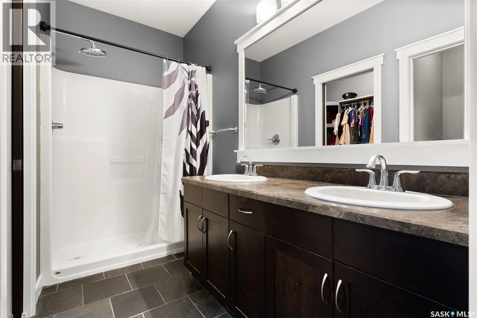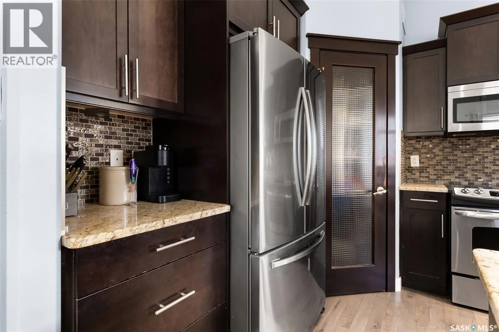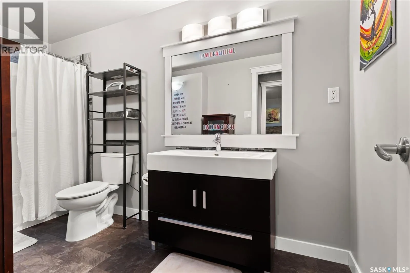 Welcome to 37 Churchill Crescent, White City â A move-in-ready family home just minutes from Regina and an easy walk to the brand-new school. From the moment you arrive, the xeriscaped front yard delivers jaw-dropping curb appeal with almost zero upkeep. Step inside to soaring vaulted ceilings, designer pot lights, and sunlight pouring across the open main floor. A stacked-stone gas fireplace anchors the living room, flowing seamlessly into the dining area and a chef-worthy kitchen featuring rich espresso maple cabinetry, granite counters, a huge eat-up island, walk-in pantry, and direct access to the covered veranda for effortless indoor-outdoor living. The private primary suite is a true retreat with its own deck door, spa-like 4-piece ensuite, and spacious walk-in closet. Two more bright bedrooms with clever recessed closets, a stylish 4-piece main bath, and convenient main-floor laundry round out the main level. Downstairs, the fully finished basement is built for fun and comfort: massive family room, dedicated games area, sleek wet bar, an oversized fourth bedroom, full 4-piece bath, and tons of storage. Builder spray-foam insulation keeps everything cozy and energy bills low. The heated 32'Ã26' triple garage with 14' ceilings and room for a car lift (negotiable) is a rare gem. The backyard is pure joy: hot tub, fenced dog run, raised garden beds, storage shed, underground sprinklers, and a huge covered veranda that extends the season. Meticulously maintained, loaded with upgrades, and ready for you to move in â this is the turn-key White City dream home youâve been waiting for. Come fall in love today. (id:27476)