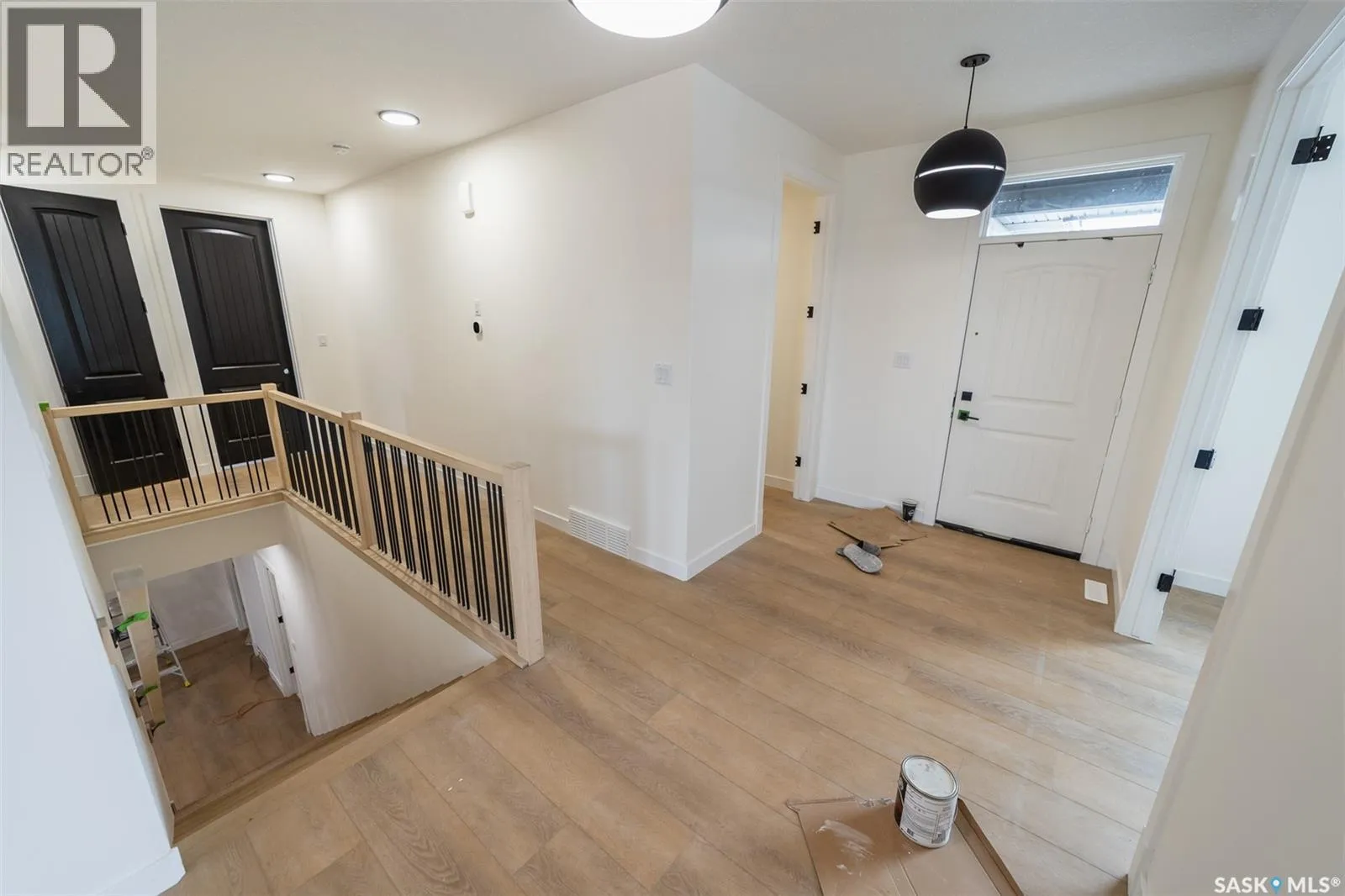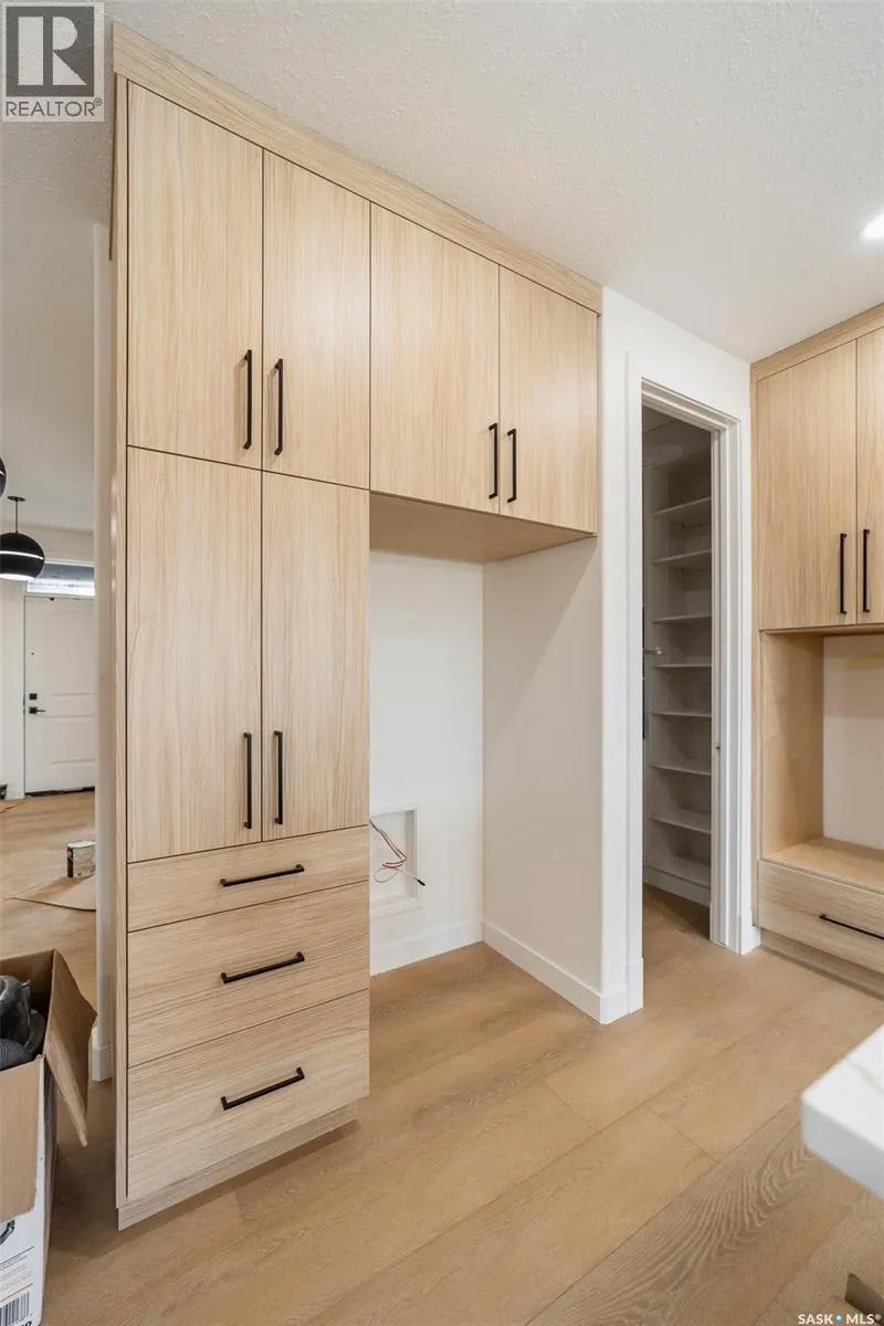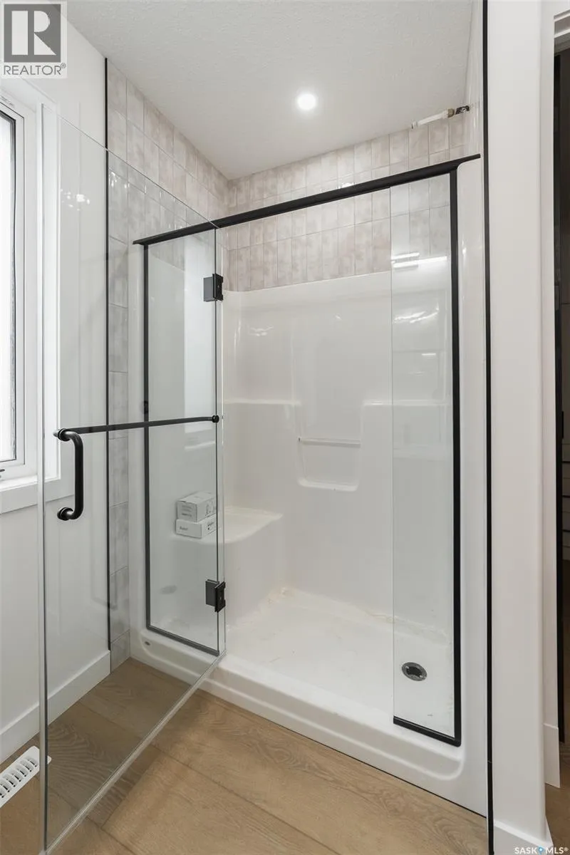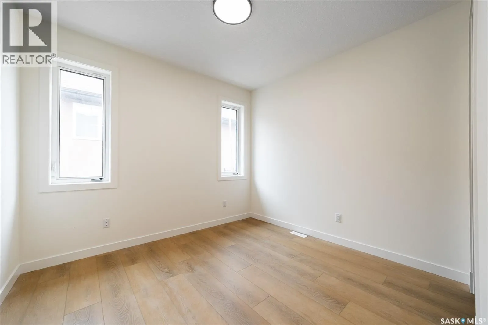 Welcome to this beautiful 1704 sqft custom built home backing green space. Walking and biking paths are at the back of the house and situated only a block away from the new White City School. Home features lots of oversized windows for natural light and has 8-foot-tall interior doors. Features include modern, custom installed hand railing staircase opened to the lower level, a luxurious kitchen with two tone cabinetry and a convenient 9 feet 2 level eat-in island, quartz countertops complemented with ceramic tiled backsplash and an oversized walk-in pantry with lots of storage. The main floor boasts 2 large bedrooms, a main bathroom, large office (that can be used as a bedroom), ensuite bathroom with a makeup station, walk-in closets, large cozy living room with LVP flooring, modern linear gas fireplace, stainless steel appliances in the kitchen. It also has an amazing covered 15'-0" x 12-0" balcony with a French door, waterproof membrane, and a gas BBQ connection. Lower level is fully developed with LVP flooring throughout, spacious recreational room, 2 large bedrooms with a walk-in closet in each bedroom, wet bar, 4pc bath, large laundry room with cabinets and appliances, high efficiency furnace, owned on demand water heater, air conditioning, and air to air. The oversized 3 car garage with 12' ceiling is insulated, boarded, and primed adding both functionality and curb appeal, garage heater, grit interceptor connected to the house drain and black garage doors with glass inserts. The outside of the house is finished with wood grain metal and acrylic stucco. There are also permanent Christmas Gemstone lights built in and included. Some details still need to be finished in the house, seasonal work including any concrete work, driveways etc will be done pending weather conditions. (id:27476)