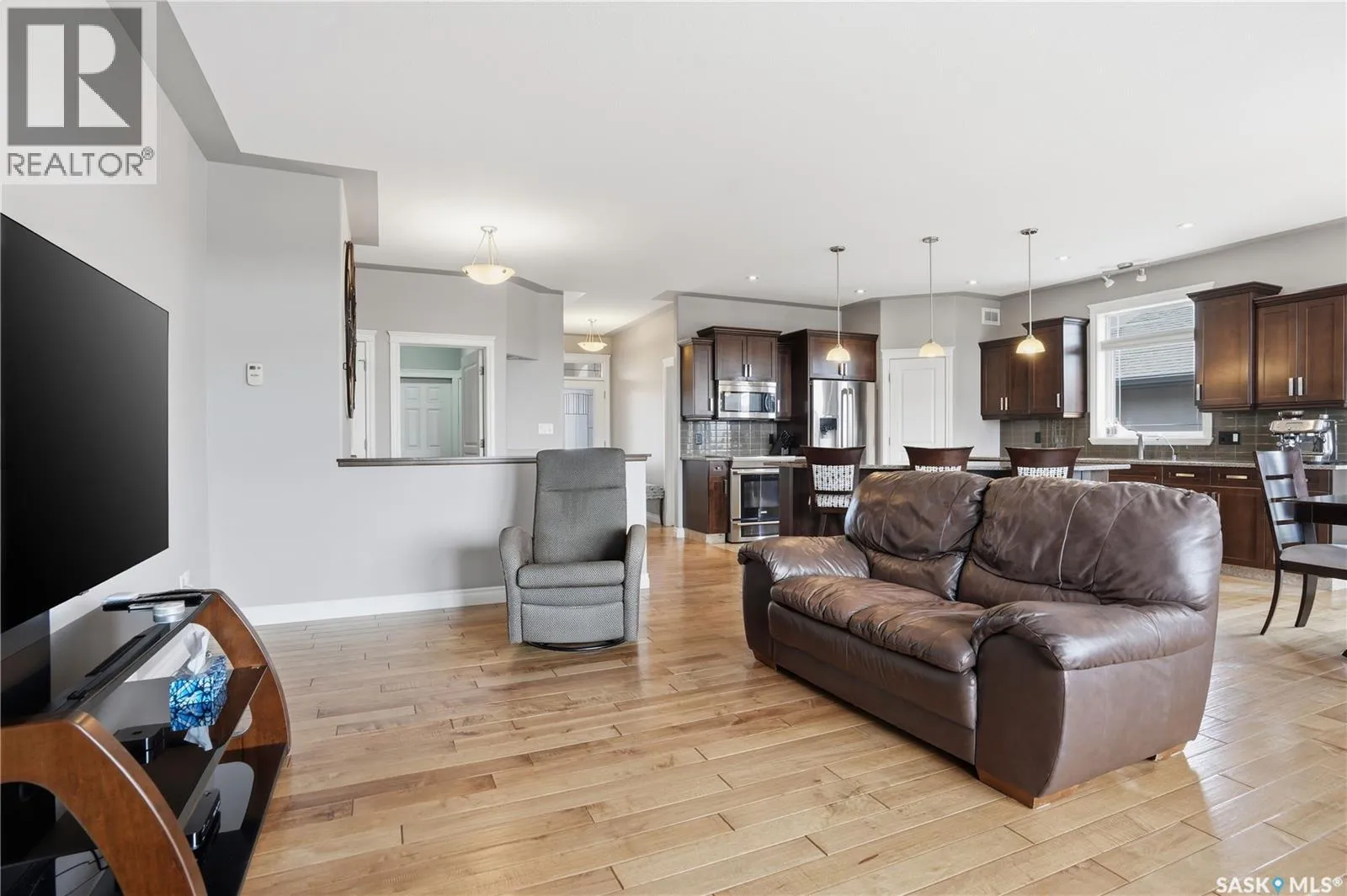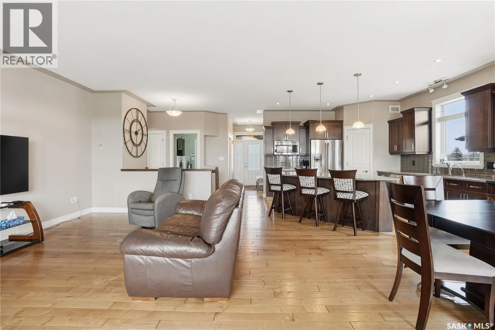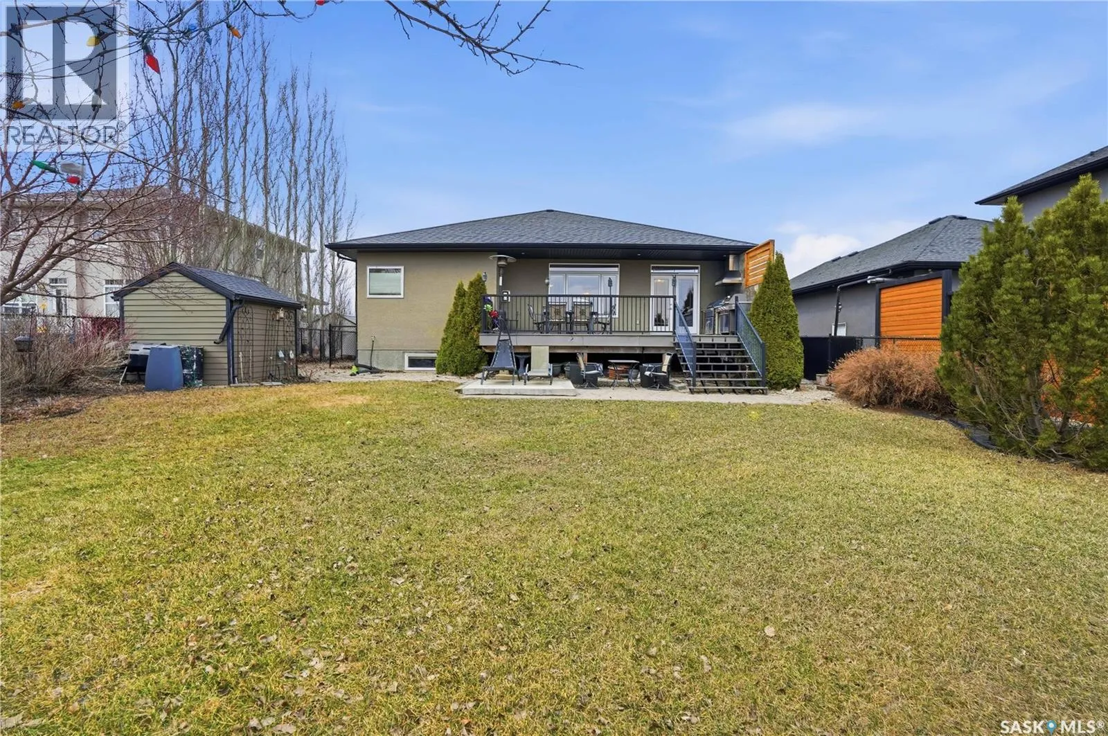 Backing the Aspen Links Golf Course in the heart of White City, 396 Fairway Road is a home that earns its reputation through craftsmanship, a thoughtful layout, and an outdoor space youâll love. Just minutes from Regina, White City offers tree-lined streets, good schools, and a pace of life the city can't quite replicate. Inside this 1572 sq/ft bungalow, the main floor opens to a large kitchen anchored by a large center island, maple cabinetry, stainless steel appliances, granite countertops, a pantry, and tile flooring. French doors in the dining nook lead to the backyard. The living room offers hardwood floors, a gas fireplace with stone surround, and views that remind you exactly where you live. The primary bedroom is a retreat featuring a walk-in closet and a 4-pc ensuite with a granite counter, soaker tub, and a stand-alone shower. A second bedroom, functional office, 4-piece bath, and a laundry nook with a sink off the garage round out a floor plan built for real life. Downstairs, youâll enjoy the massive recreation room, two additional bedrooms, a 4-piece bath, and serious storage in the utility room. This home has great curb appeal with stucco exterior and a 24'x26' double attached garage that is heated, insulated, and ready for a Saskatchewan winter. The backyard is fully landscaped and complete with a railed deck, outdoor kitchen, stone patio, fire circle, and beyond the fence - the fairways of Aspen Links as your permanent view. Value added features include central A/C, central vac, natural gas BBQ hookup, alarm system, and an underground sprinkler system. This home is completely ready for you to enjoy - call your agent to schedule your showing today. As per the Sellerâs direction, all offers will be presented on 04/19/2026 4:00PM. (id:27476)