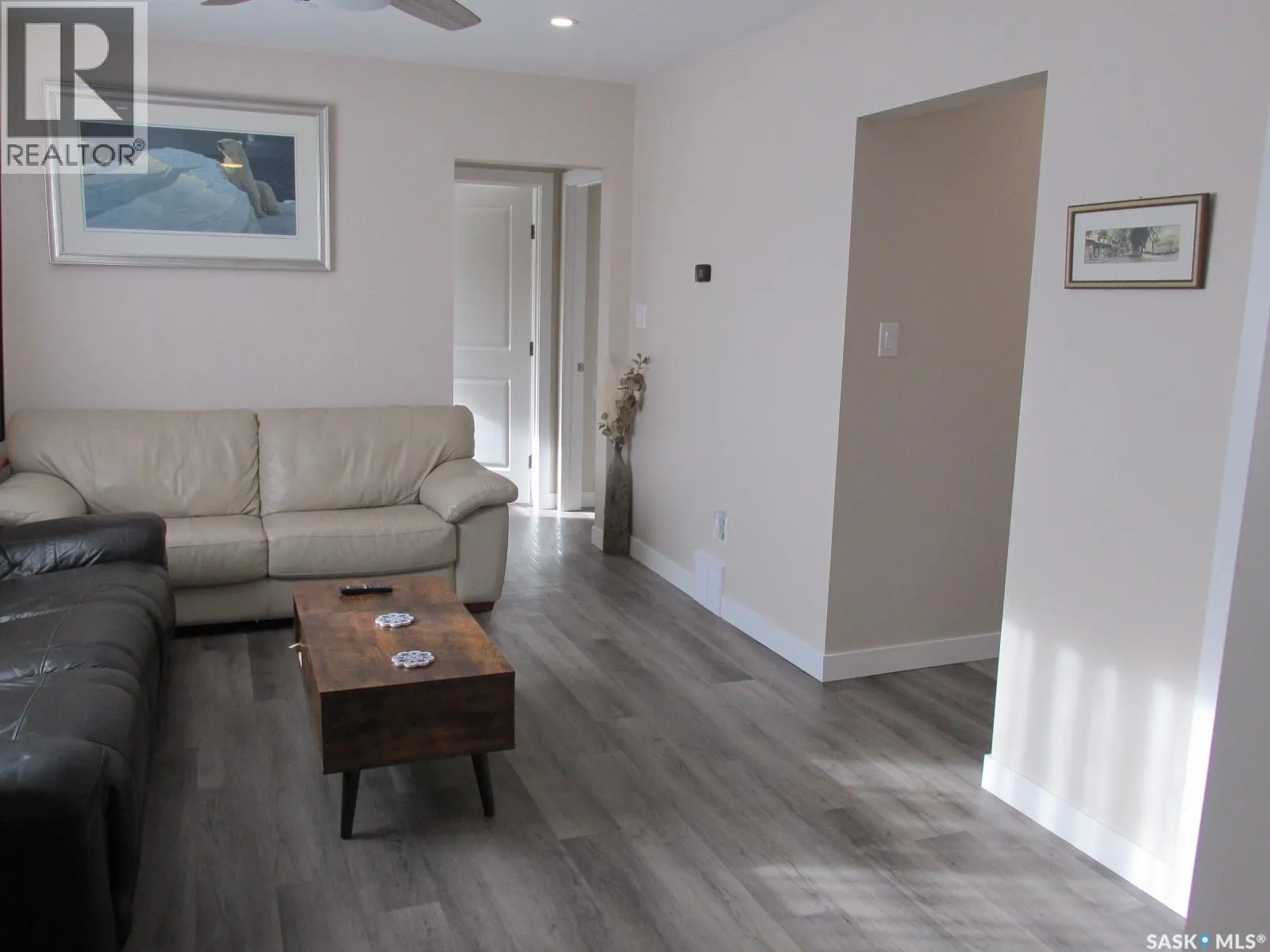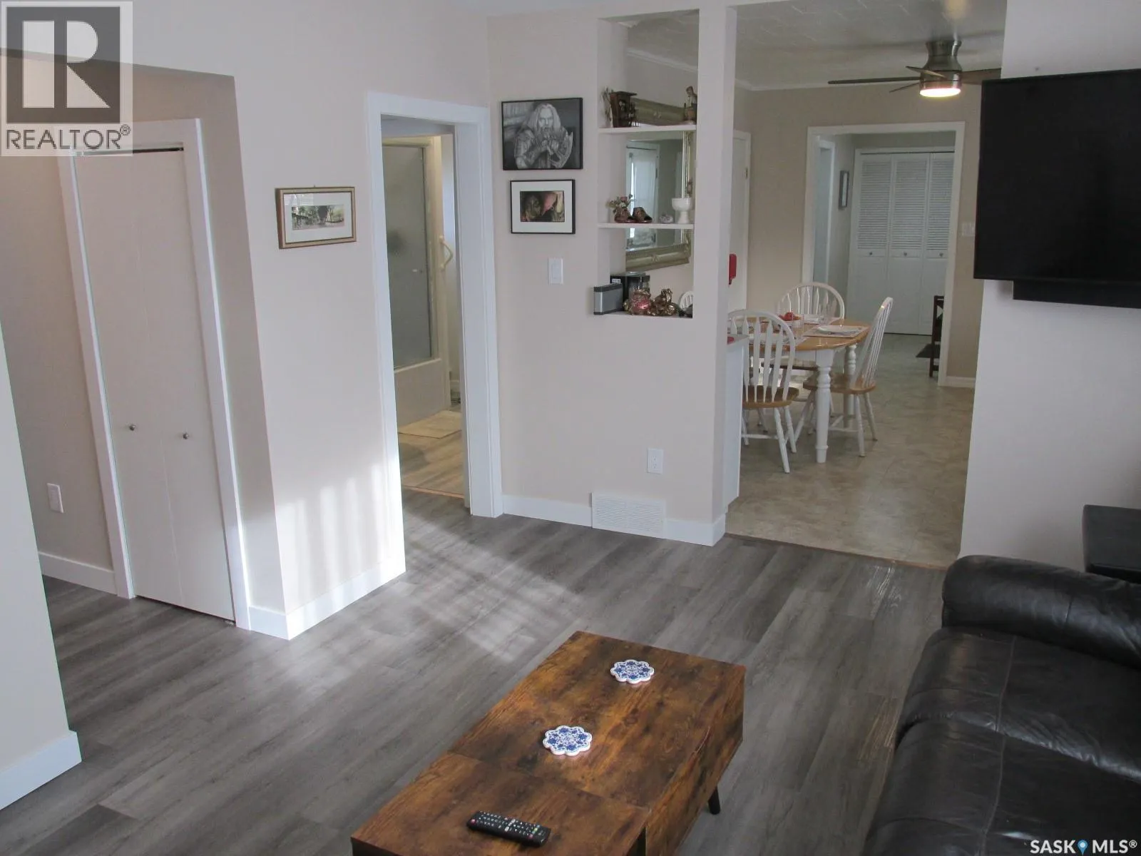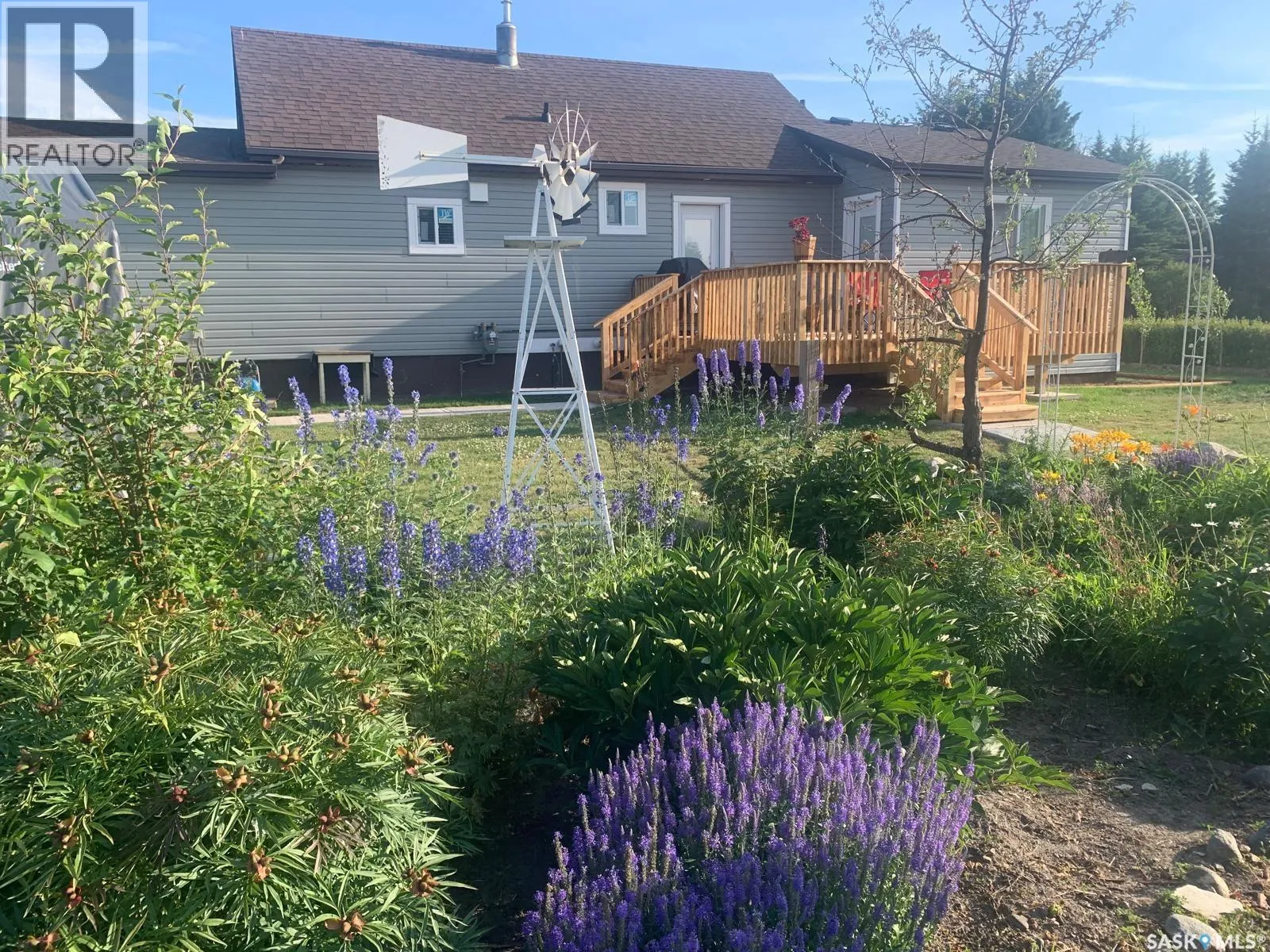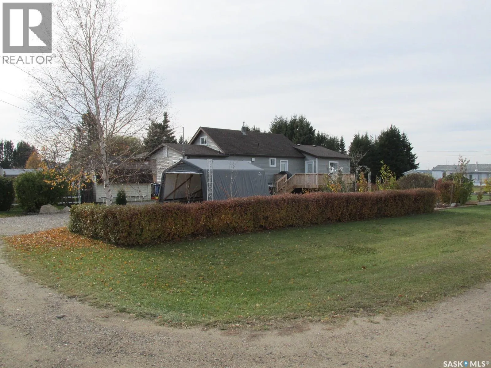 Turn key house with beautiful gardens is awaiting you! This 1206 sq ft home has undergone major renovations, with an addition of the 2 bedrooms and an additional bath, deck, covered deck with the hot tub, pot lights in the addition and around the soffits, water heater replaced, electrical upgrades and much more. SAMA states addition was put in 2024 (seller states that it was finished in 2025). There has been an extensive amount of work put into the landscaping, including tons of rock, numerous trees planted and more. As you come into the home, it welcomes you with a nice size entry, with the laundry on the main floor, eat-in kitchen with the coffee nook and a cozy living room. This 3 bedroom home features 2 bedrooms / 2 baths on the main floor, plus 1 bonus bedroom and a den upstairs. Basement offers extra space for storage, along with storage cabinets and a storage room. Outside you will find the beautiful gardens. There is a seacan container for storage, 2 sheds, greenhouse, 2 tarp-covered parking spots plus a long rock driveway, garden plot and numerous perennials. There is power to the shed, greenhouse and the power available for the engine block heaters in the car tarps. There are strawberries, raspberries, cherries, Saskatoons, cranberry, apples, asparagus - this is âorchard in the villageâ! Located on 0.39 acres if feels like an acreage, with the convenience of being in the quiet village of White Fox, close to the school (plus there is a new daycare is being built), only 13km to Nipawin. This property comes fully furnished, with all appliances and kitchenware, plus with the yard maintenance tools and equipment. This is a turn-key sale! If you are looking to escape the hustle and bustle of the city and enjoy the gardening, this is a great option for you! Phone today! (id:27476)