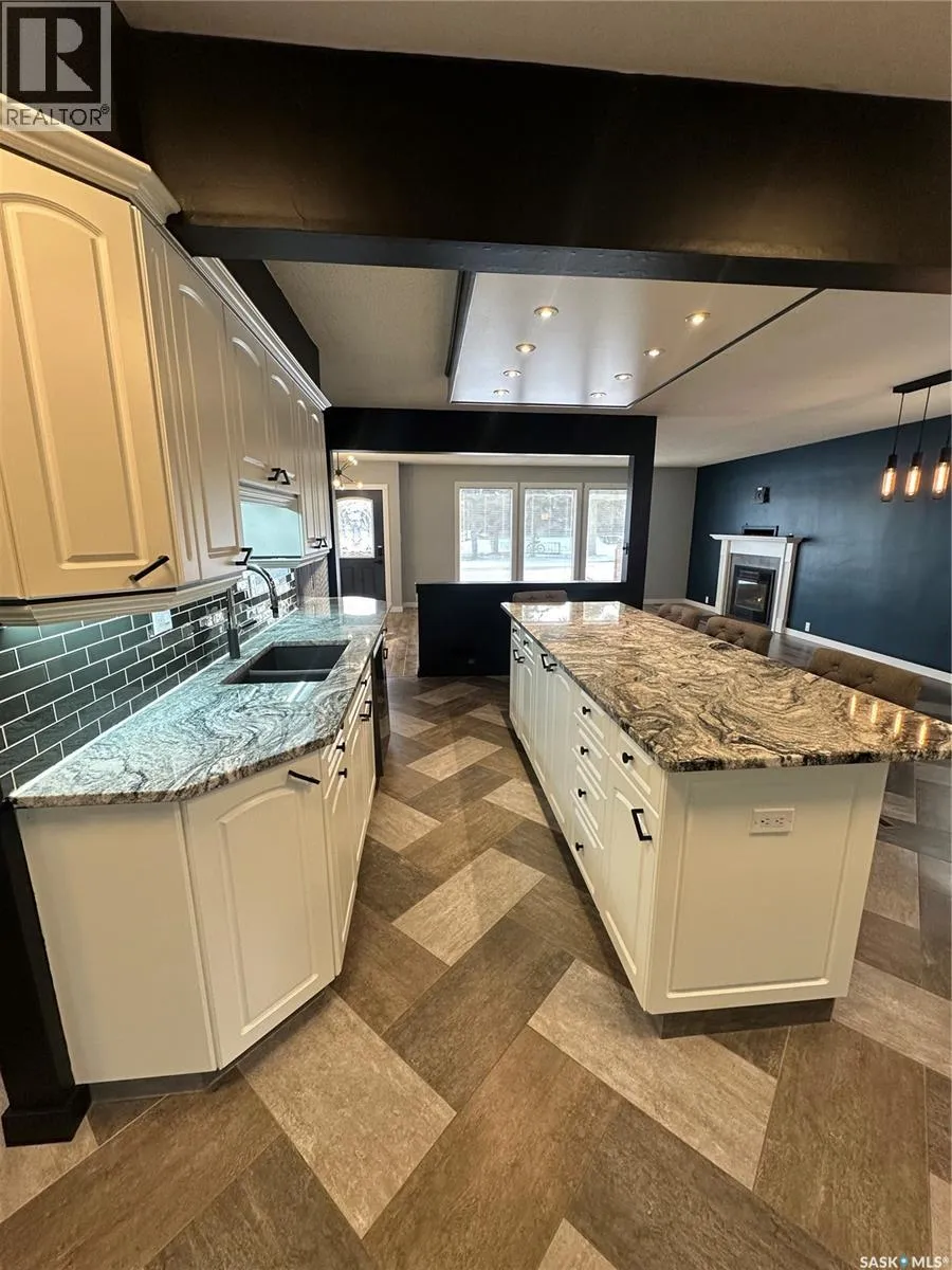 Are you searching for a new home for Christmas? Look no further! This stunning, renovated home is ready for you! Many upgrades have been made to this property, and the kitchen is definitely the centerpiece, featuring an 8-foot granite slab for the island. The open-concept design connects the kitchen, dining room, and living room, which includes a gas fireplaceâperfect for entertaining family and guests. The main bathroom is equipped with a tiled walk-in shower, a soaker tub, and a Wi-Fi-enabled fan. This location is ideal for families, as it is situated directly across from Whitewood School. There are two driveways, one of which has a double concrete driveway. Originally, the home had a double attached garage, which has been converted into a single attached garage, along with an added porch and a storage room. This space could serve as a perfect home office. Whitewood is conveniently located just off Highway #1, close to Round and Crooked Lake in the Qu'Appelle Valley. Originally, the home had a double attached garage, which has been converted into a single attached garage, along with an added porch and a storage room. This space could serve as a perfect home office. Whitewood is conveniently located just off Highway #1, close to Round and Crooked Lake in the Qu'Appelle Valley. (id:27476)