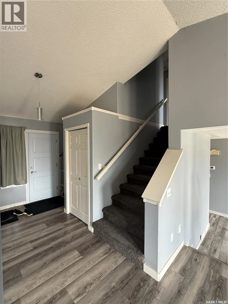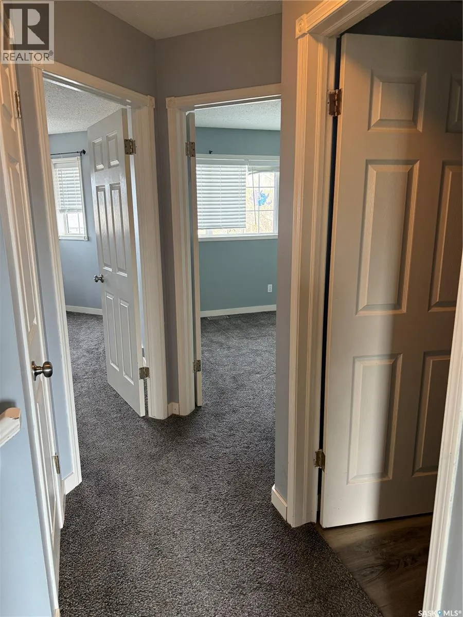 Welcome to this spacious 2 storey split, perfect for growing families, offering 3 bedrooms up, 1 down, and a total of 4 bathrooms, including a 3pc primary ensuite and walk-in closet. The functional main floor features two family room areasâideal for both relaxing and entertainingâalong with upgraded vinyl plank flooring through most spaces and a large kitchen with pantry, corner window, and appliances included. The sunken family room overlooks the backyard and has a convenient 2-piece bath nearby and access to the attached garage. Step outside through garden doors to a large deck and enjoy the impressive double lot with mature trees, no back neighbours, and plenty of space for kids and pets to play. The fenced yard also includes a shed, cozy fireplace area, and even a riding mower that will stay. The basement adds even more living space with a 4th bedroom, 3-piece bath, family room, and plenty of storage in the utility/laundry area. Updates include shingles (2022), furnace (2021), and central air. Complete with a double attached garage and low-maintenance stucco, brick, and vinyl exterior. Located in a welcoming community approximately 30 minutes SE of Regina, ideal for anyone with children attending the Athol Murray College of Notre Dame (Gr. 9â12). Spacious, quiet and ready for its next family, call your favorite agent today to take a look! (id:27476)