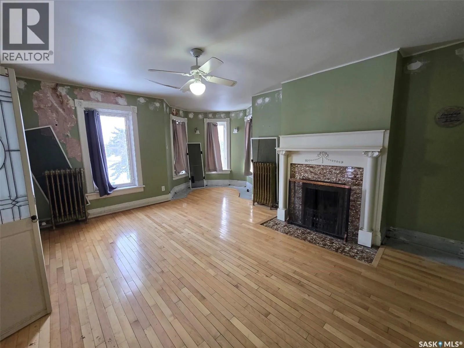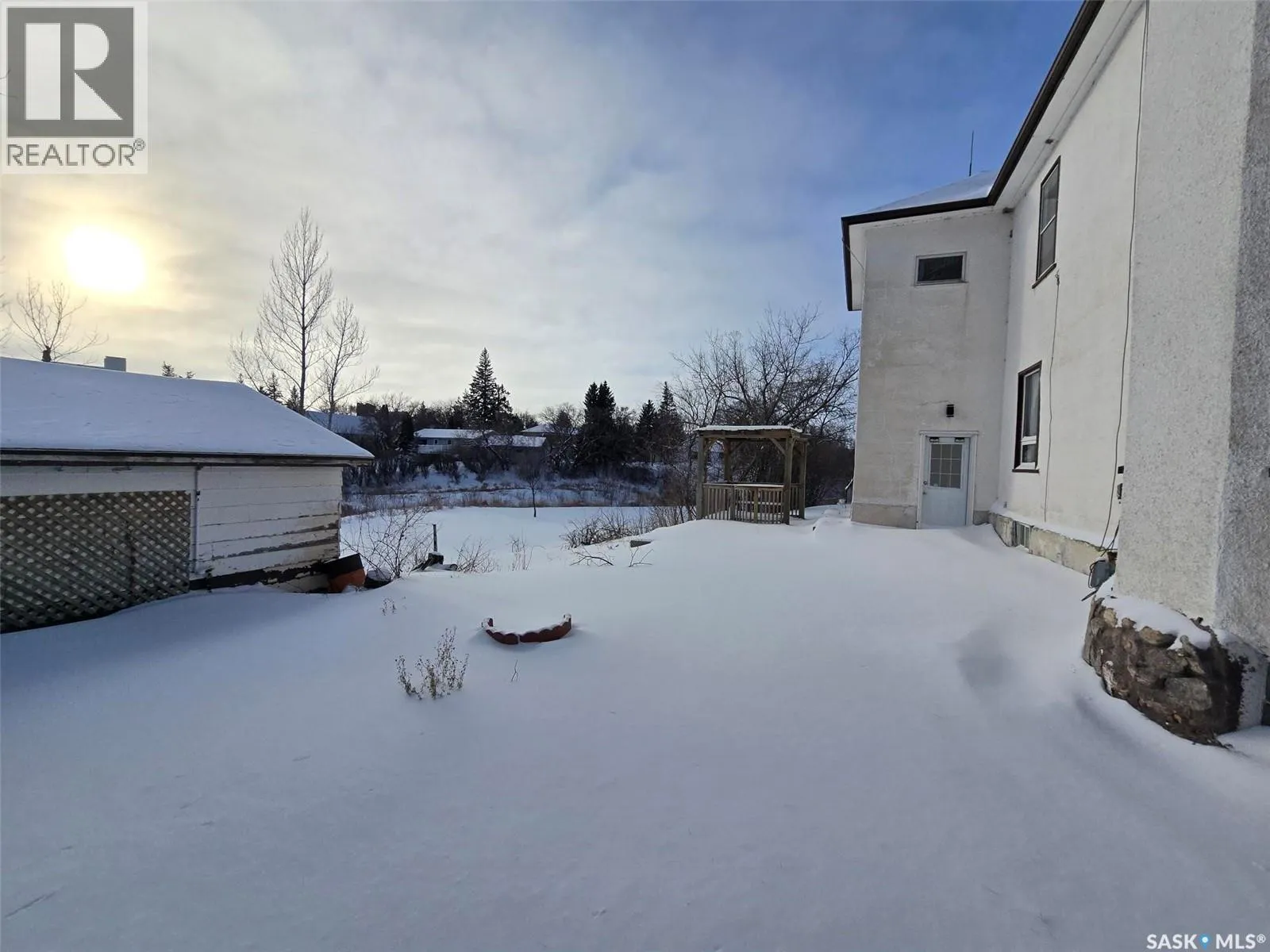 Hillcrest home is truly a Wolseley Landmark built in 1903, one of a few estate homes that are found in this little Historic town. Location is key , situated across the street from "Fairy Lake" and the spillway. Just under an acre (.89) with 280 ft of frontage and 150 deep. One of your favorite places with be in the Gazebo looking onward to the creek that is on the south side of the extensive property. From the front deck, the view provides the spillway fountain, lake and swinging bridge. Double garage was built in 1960. Castle comes to mind when seeing the property. Unique design inside and out. Inside the front door an impressive staircase and original hardwood floors give the home warmth along with the solid wood front door. The large living room hosts a wood burning fireplace and turret that make this area distinctive. Fine dining room just off the kitchen and a den /parlour complete the original setting. Off the back of the home , a large more modern style kitchen with lots of cabinets and counter space. There is another dining room with views to the south. A " servant's " staircase takes you to the 2nd floor from off the dining /kitchen to 2 of the 5 bedrooms . The other staircase leads to the other side of the home with 3 bedrooms , a 4 piece bath and a large closet. You are able to walk through the entire 2nd floor but at one time was separated by a door for privacy. The Executive Master bedroom has class and style with a wood fireplace and turret. There was some water damage to the ceiling and wall to this room and in the linen closet from years ago. Basement is partially finished with a rec area, a 3 piece bath, a den/office room and laundry room in the mechanical area. Also Lots of storage with shelving. 2016 New boiler. Shingle year unknown. This home is a "GEM" with good bones, but will need some restoring and some loving hands to get it back to it's prime. Would make a great B & B. Are you the right person for this home? (id:27476)
