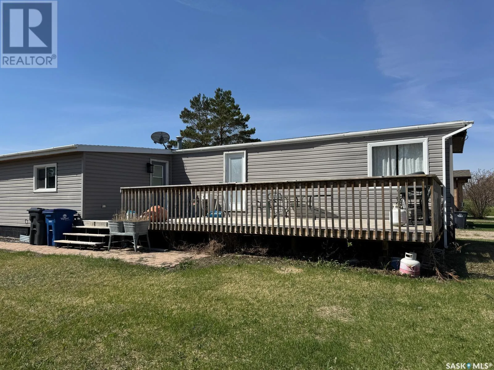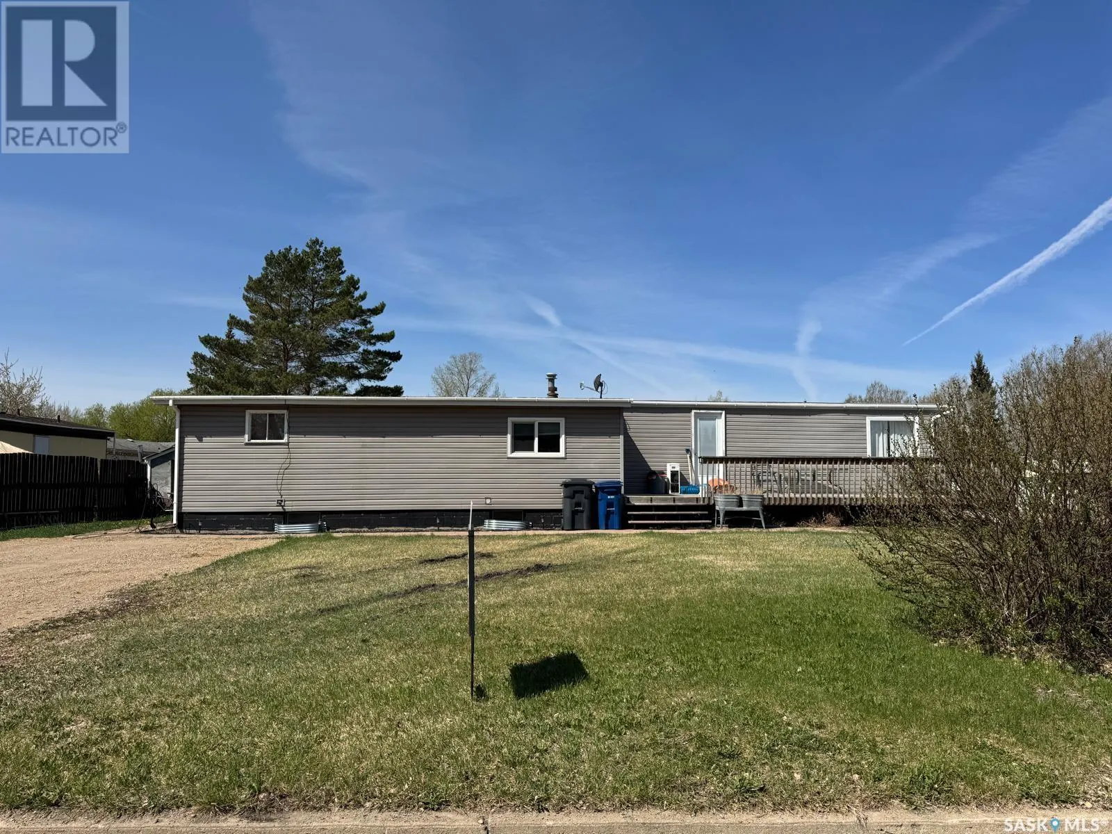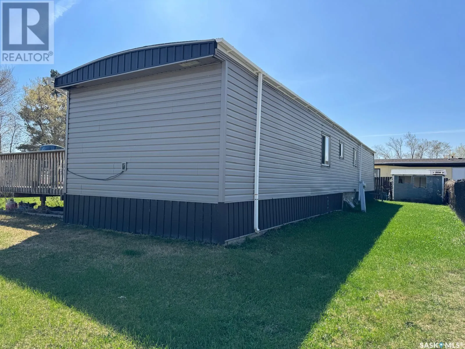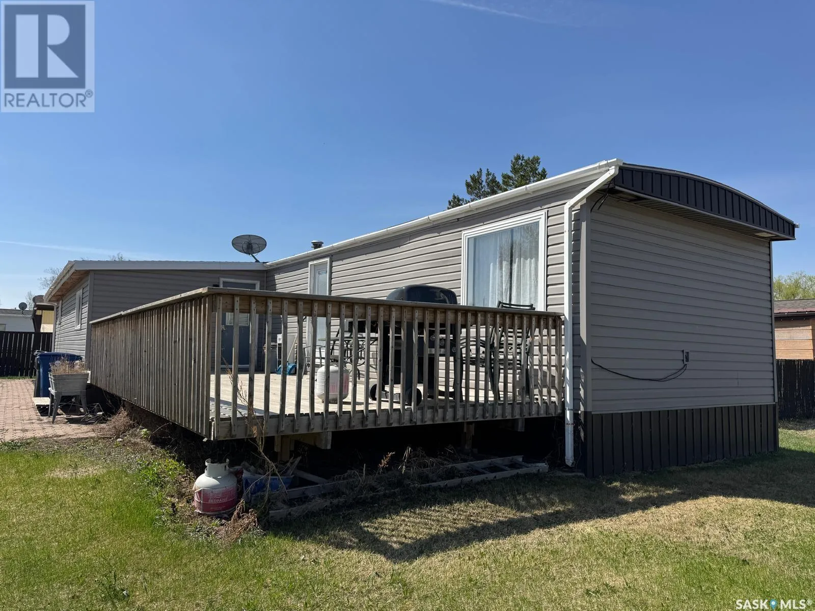 Discover the perfect blend of comfort and convenience in this charming mobile home situated on a spacious corner lot in Wynyard, Saskatchewan. This 2-bedroom 1 bathroom home boasts a large, updated kitchen that flows seamlessly into the sun-filled living room, creating a warm and inviting space to relax and entertain. A generously sized bonus room with its own private outside access adds versatility, whether you need extra living space, a home office, or a hobby room. The home also features a partial unfinished basement, perfect for storage or future development. Step outside onto the sizable front deck, ideal for morning coffee or evening gatherings. The propertyâs prime location near the golf course and high school adds to its appeal, offering a convenient lifestyle with recreational and educational amenities just moments away. Don't miss this opportunity to own a home with room to grow and a location to love. (id:27476)